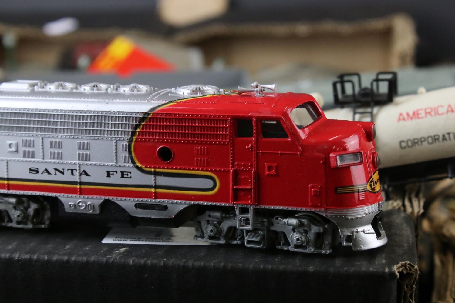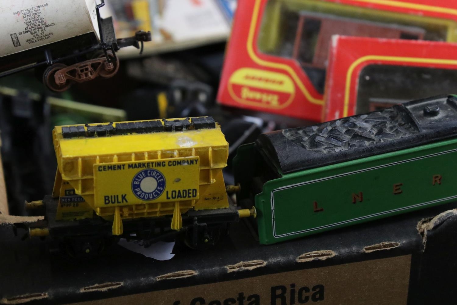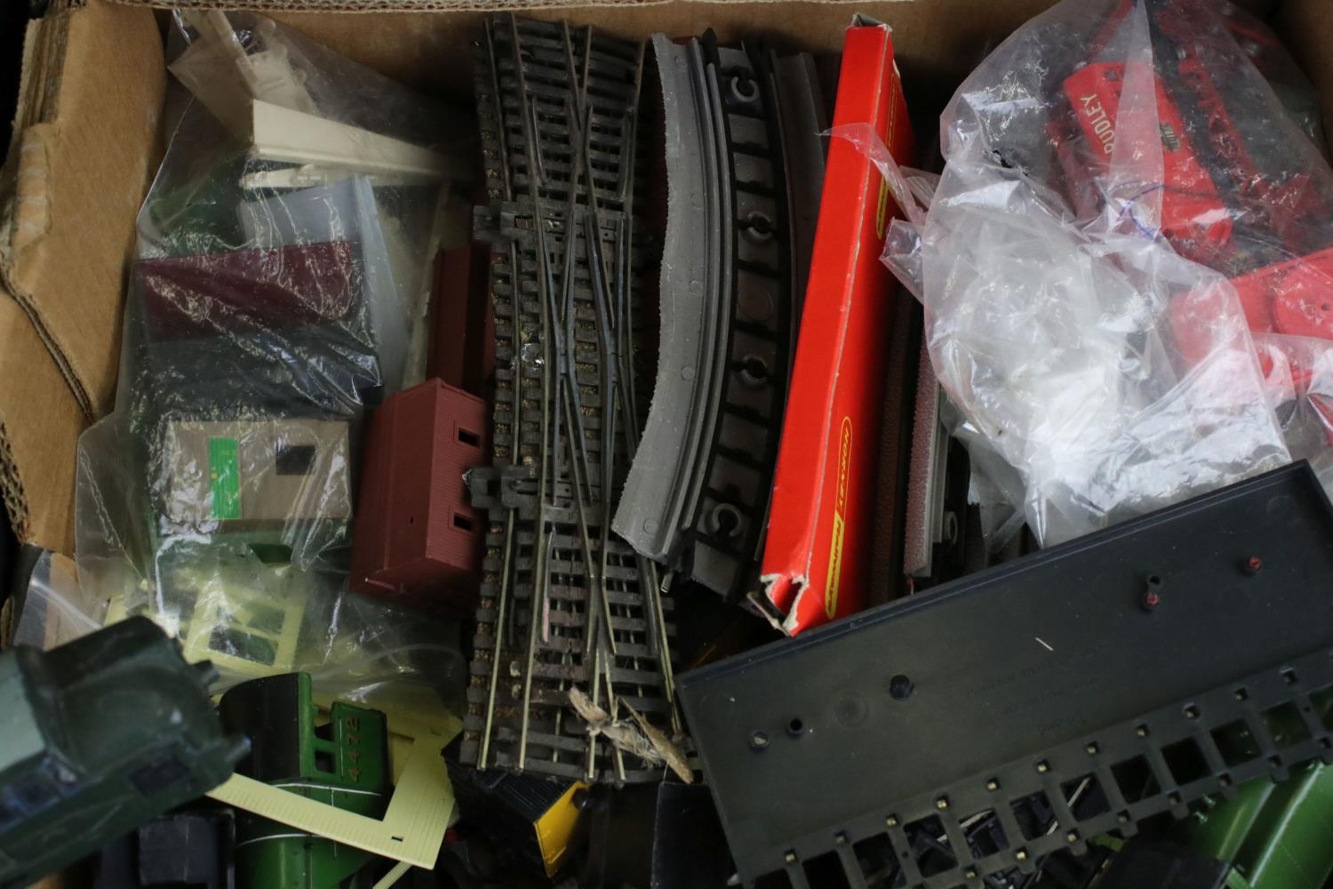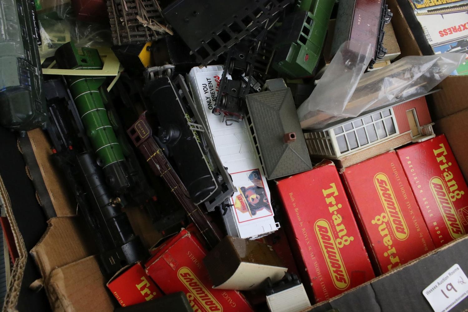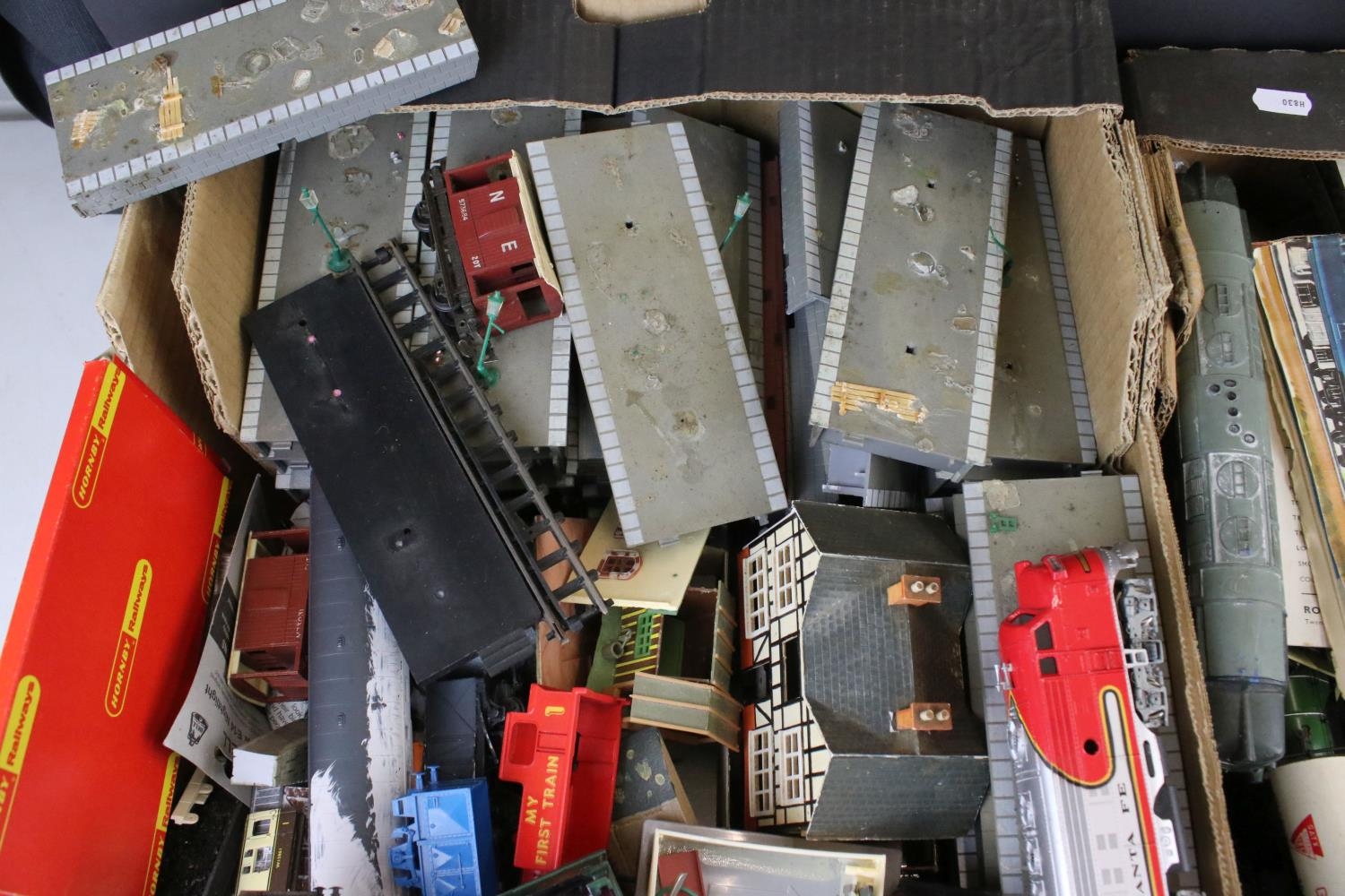Collection of OO gauge model railway to include locomotives, various rolling stock, platform, boxed Triang Hornby rolling stock etc, some model kit made (two boxes)