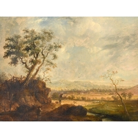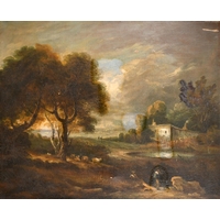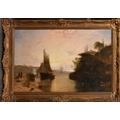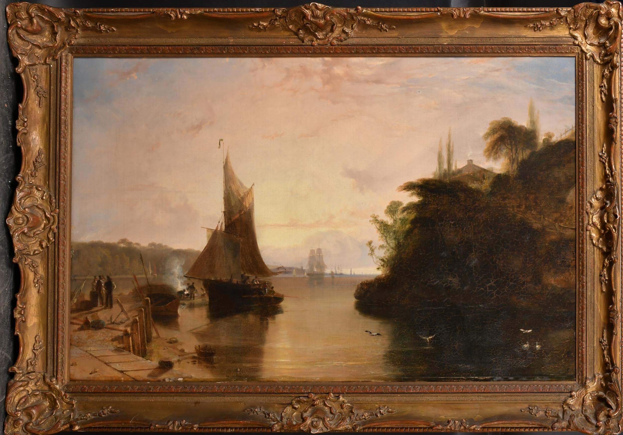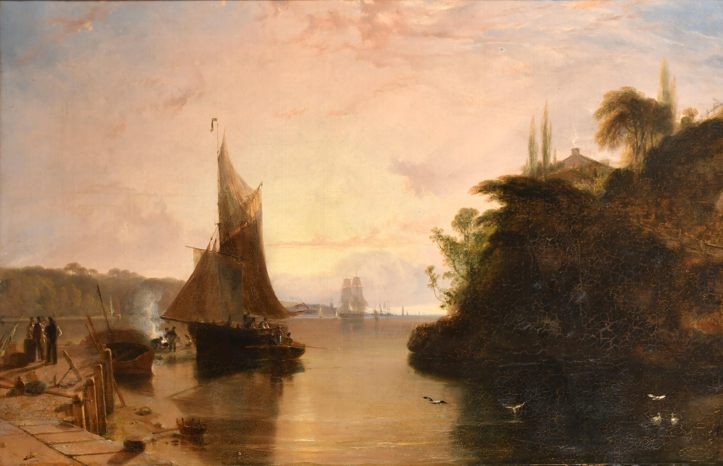 William Daniell (1769-1837) British. An Estuary Scene with Figures by a Fire, Oil on canvas, 22" x 34" (55.8 x 86.4cm)