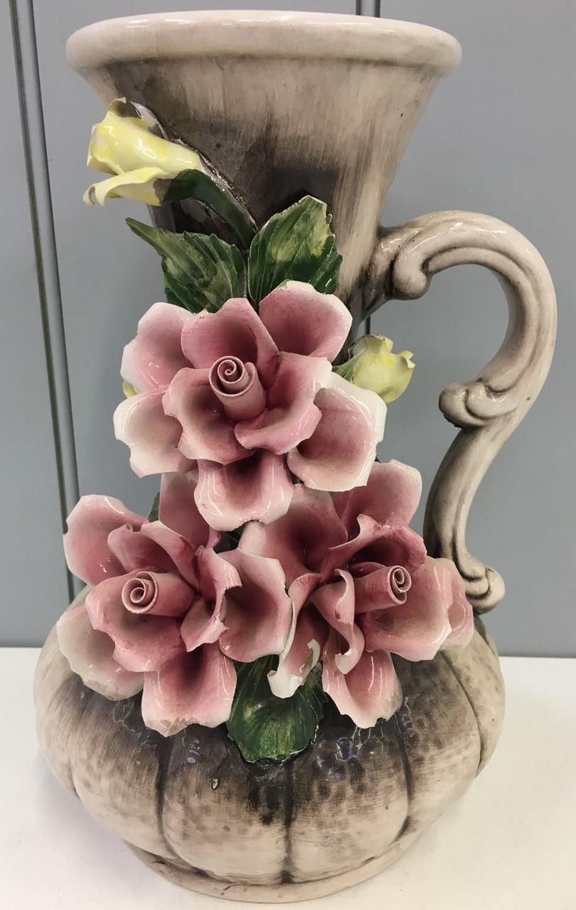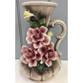 A tall, Capodimonte floral vase.Minor damage to flowers.Height 29cm