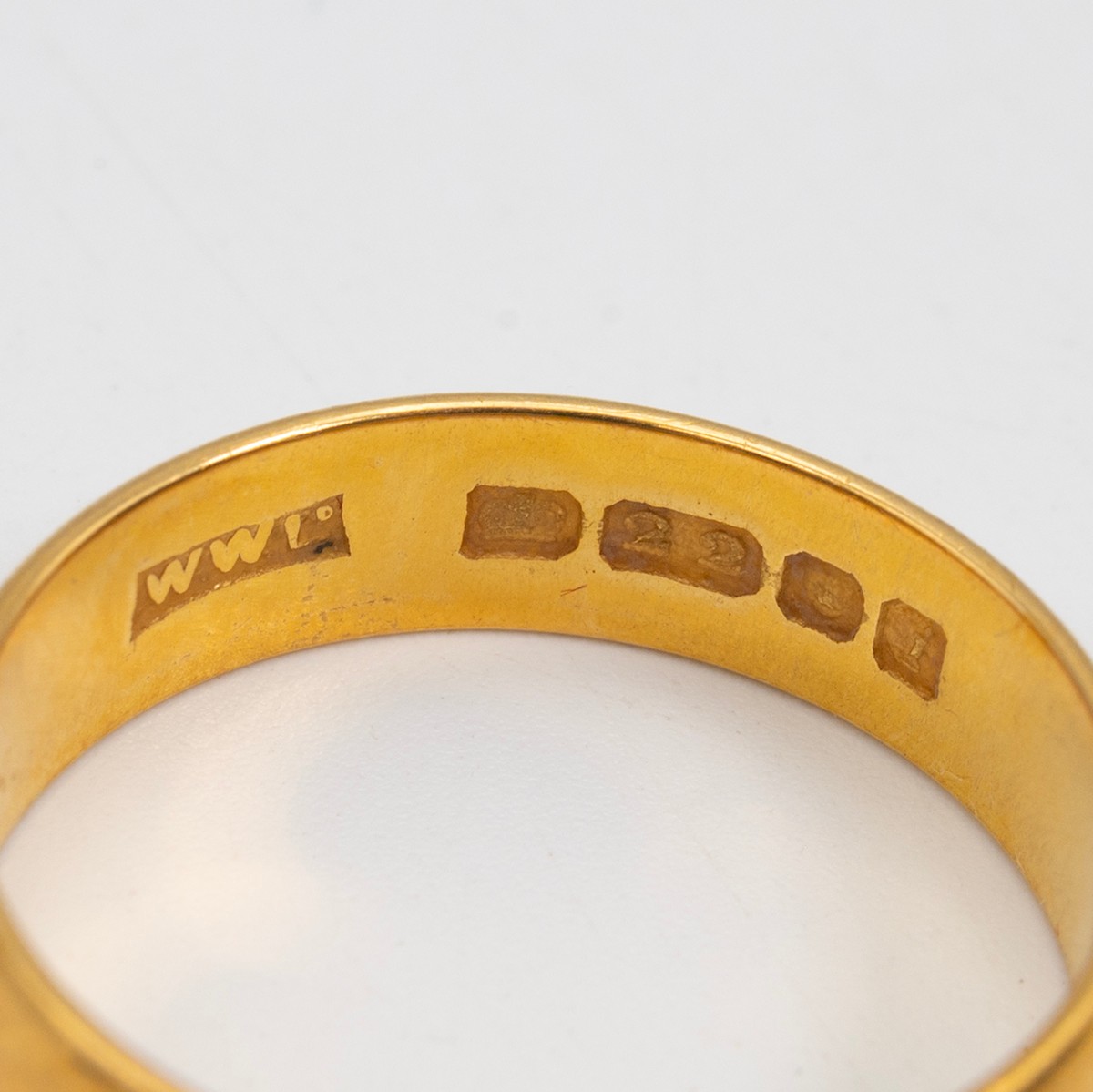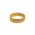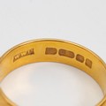 A 22ct gold hallmarked wedding band, size Q, weight 5.5 grams.