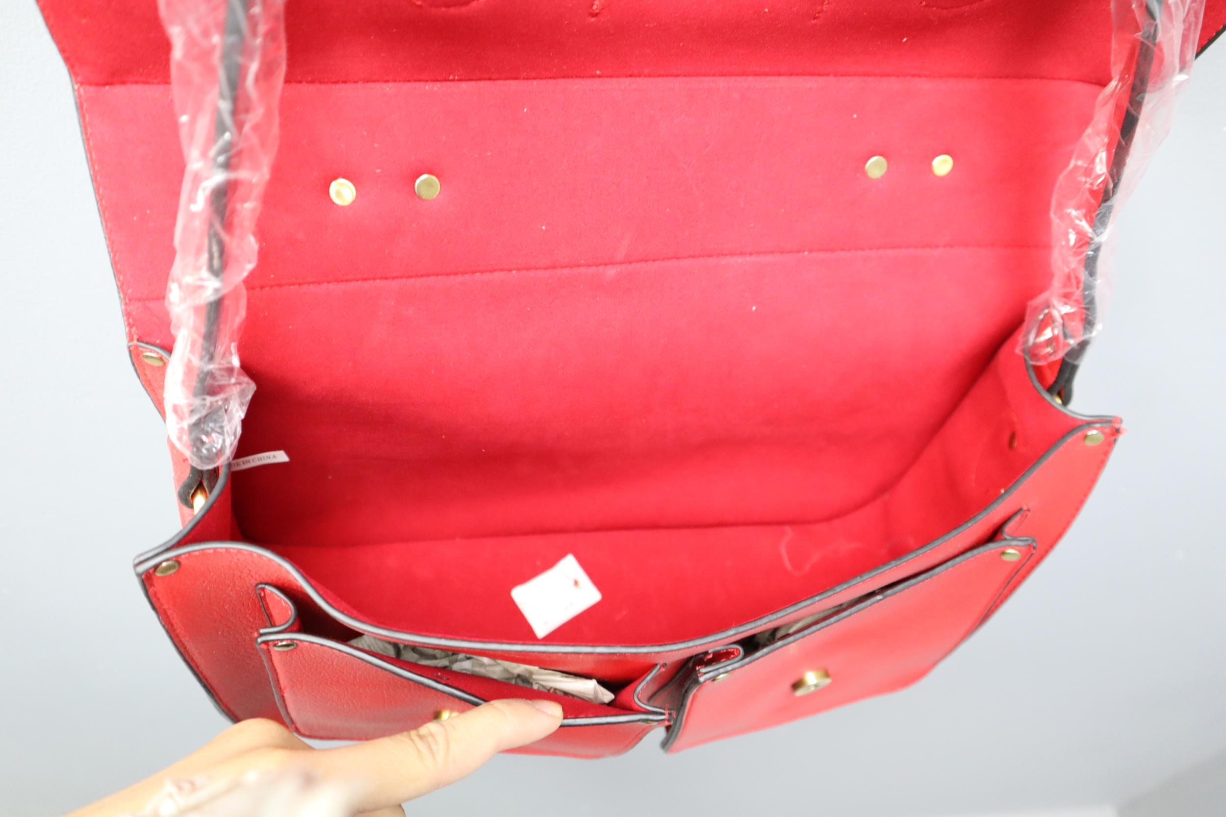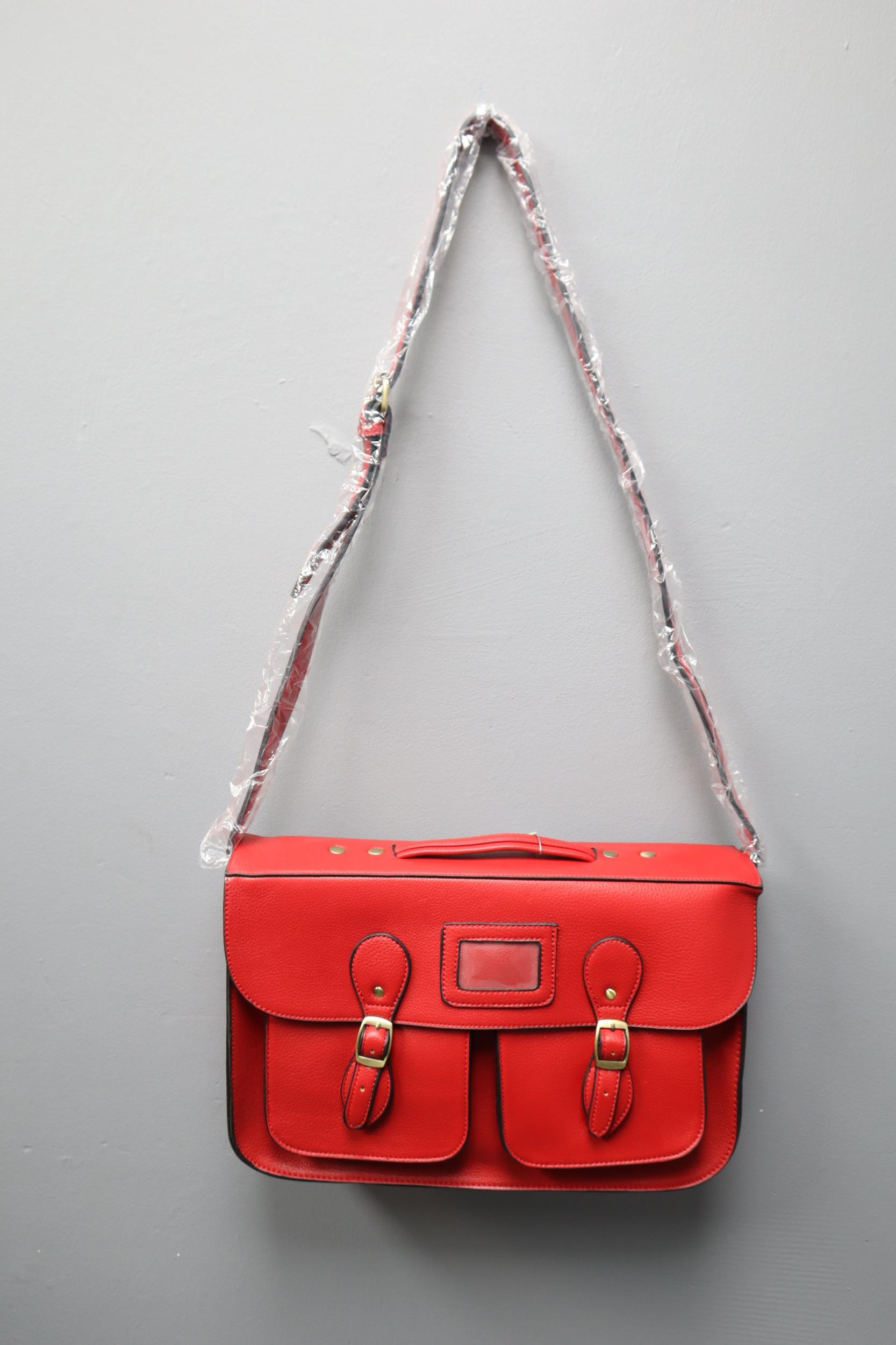 Brand New Designer Leather Satchel in Red Colour with label approx 15"x 10".