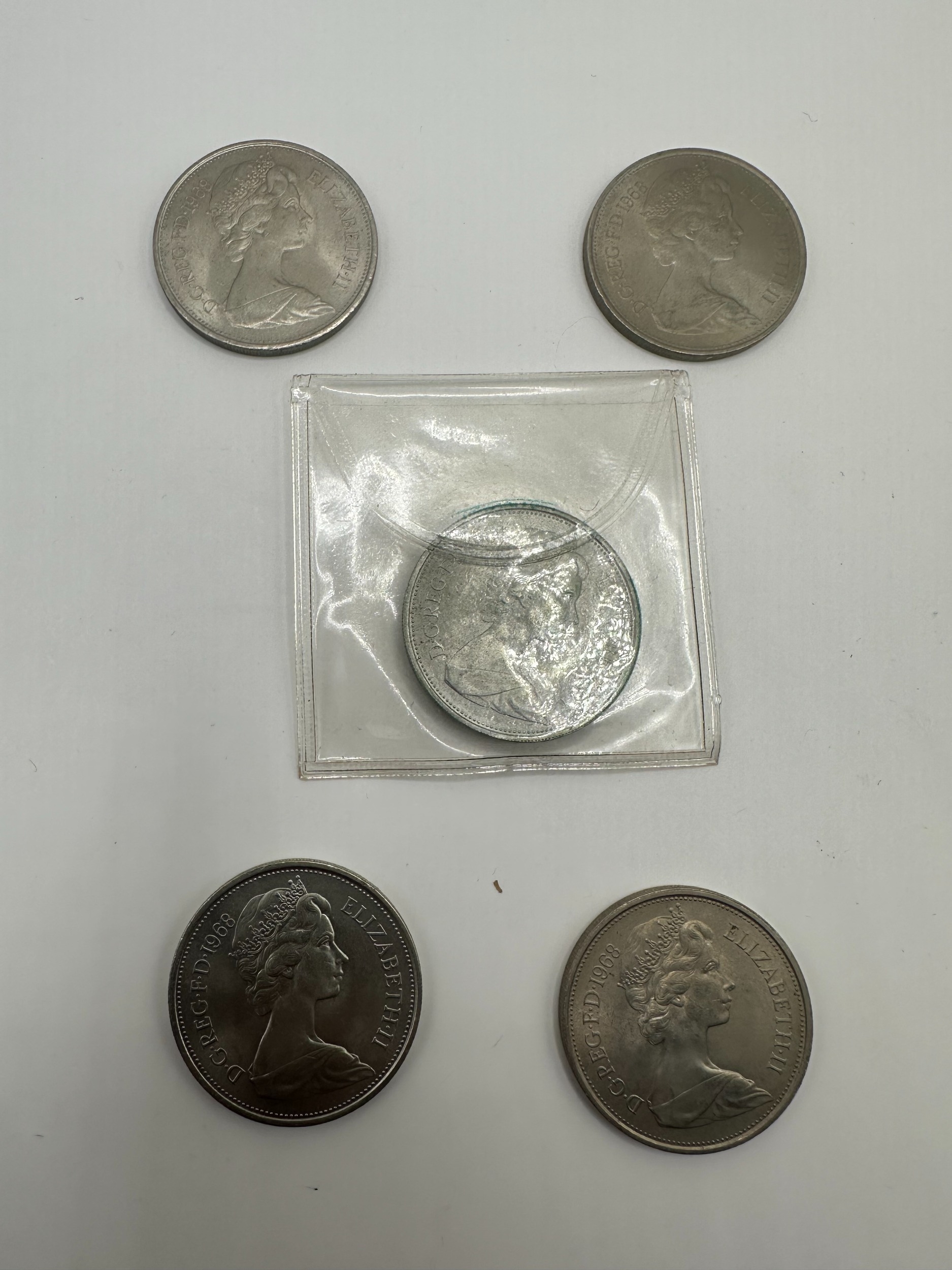 5 x 1968 UNC 2 shilling 10 pence Coins
