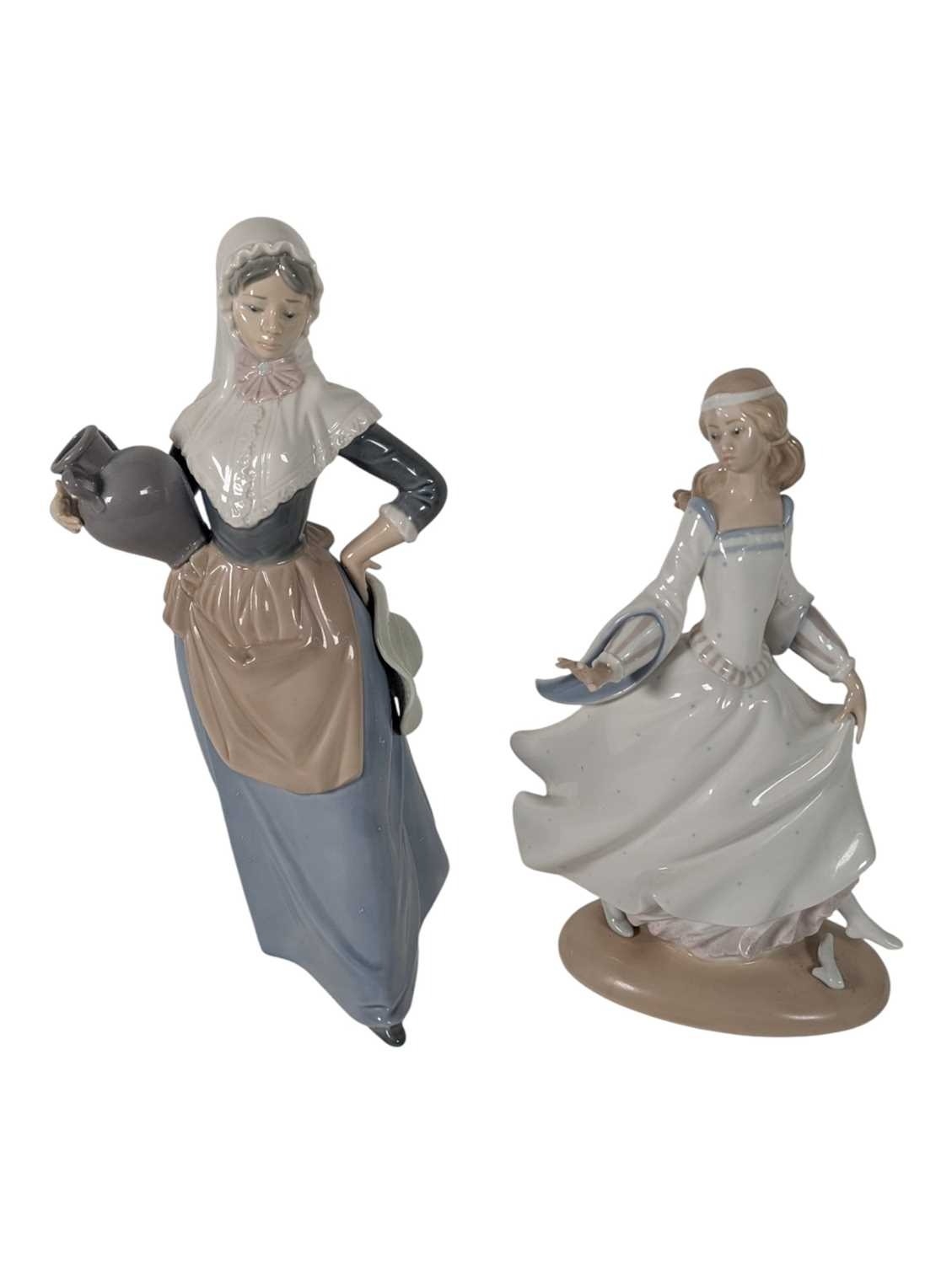 Lladro / Nao - Two vintage 20th century Spanish porcelain figures. The collection to include Nao by Lladro Lady with Water Jug figure, alongside Lladro model 4828 Afredo Ruiz designed Cinderella figure.