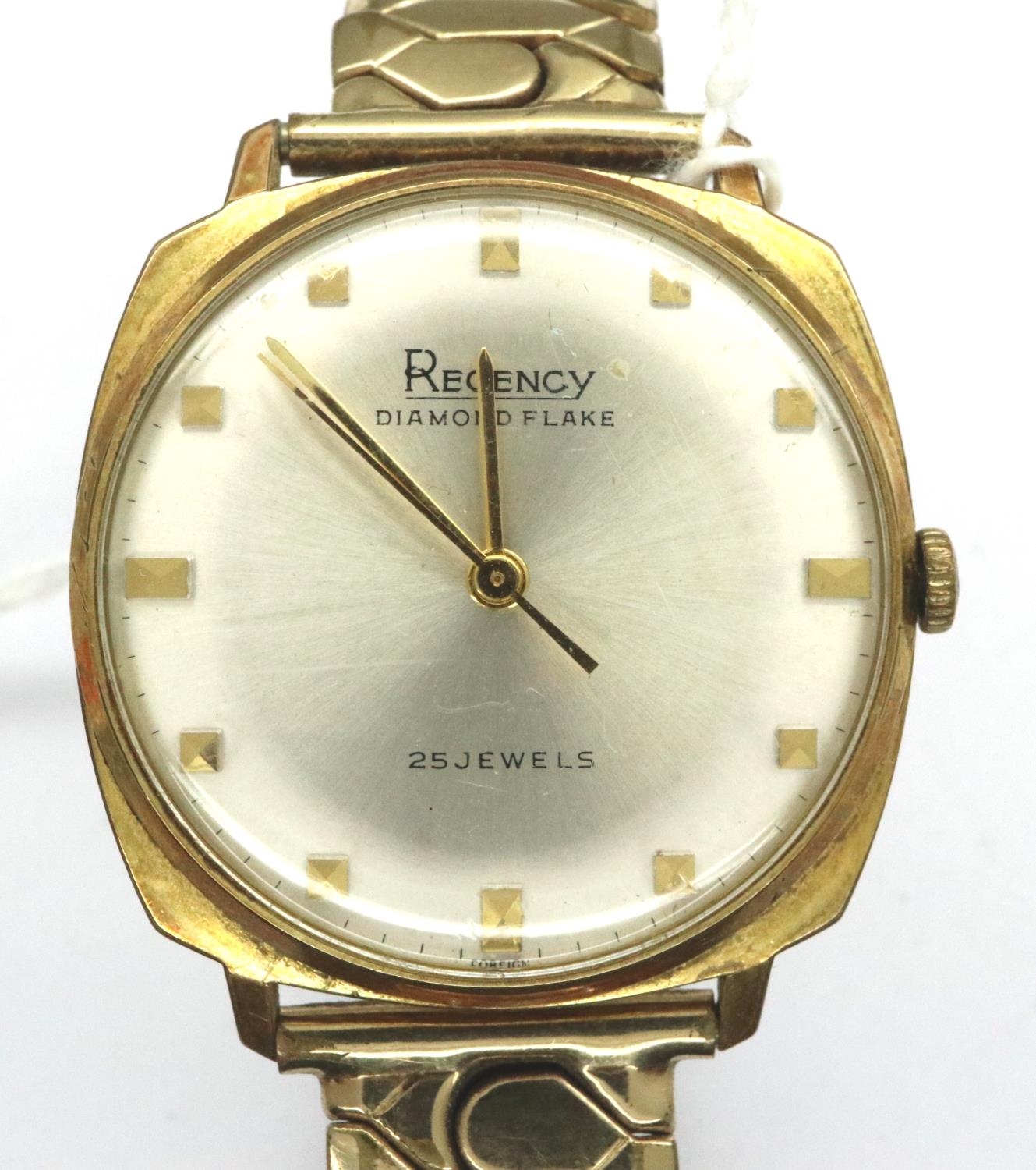 Regency: gold plated diamond flake 25 jewels gents wristwatch on a gold plated bracelet, working at lotting. P&P Group 1 (£14+VAT for the first lot and £1+VAT for subsequent lots)