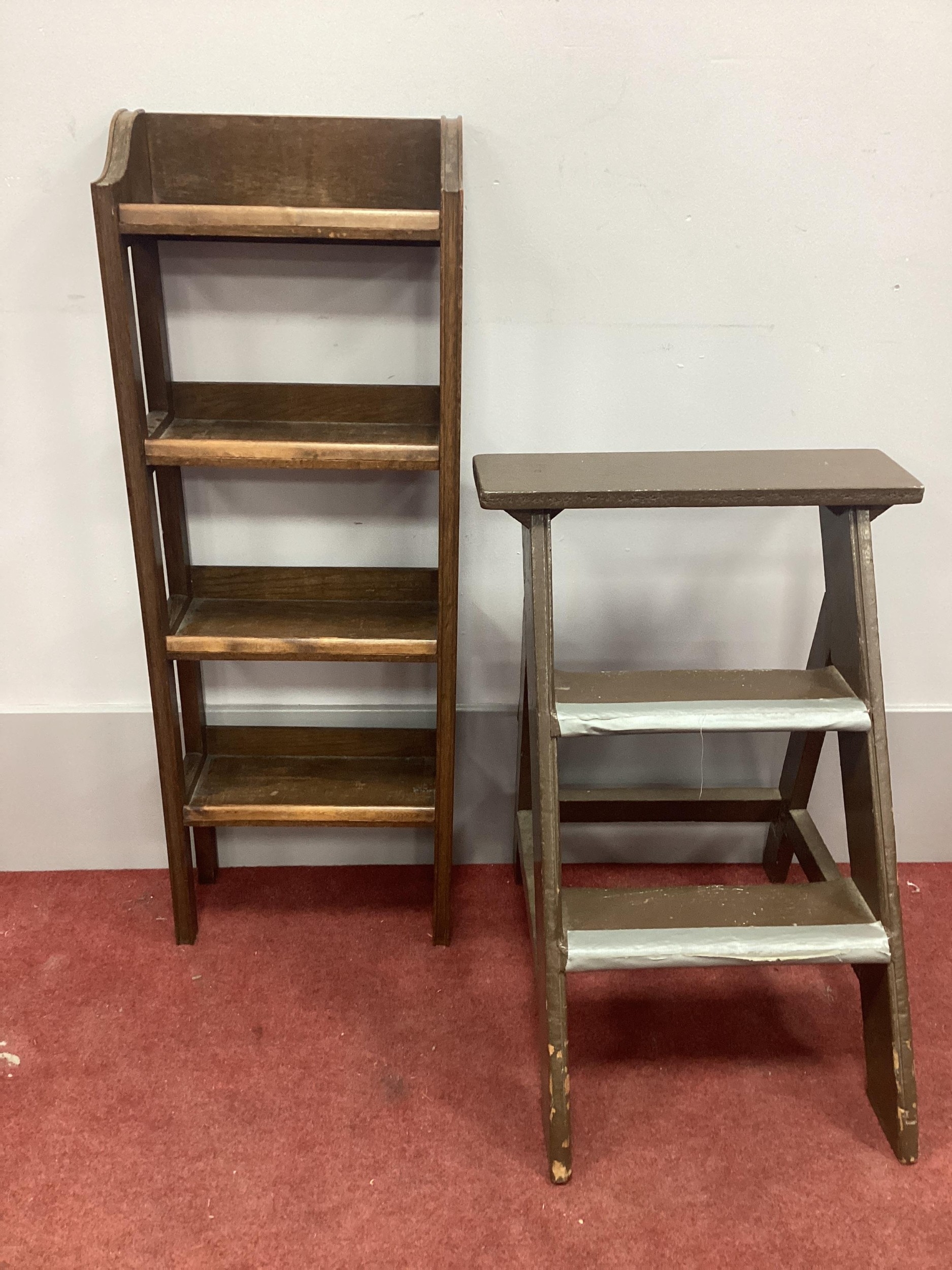 Painted Pine Library Steps; together with a small oak bookcase. (2)