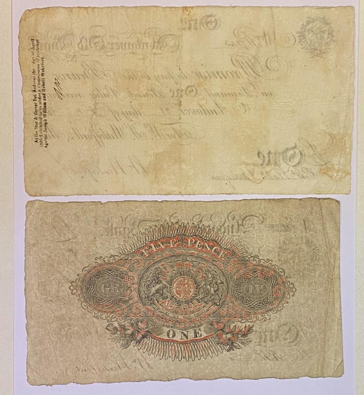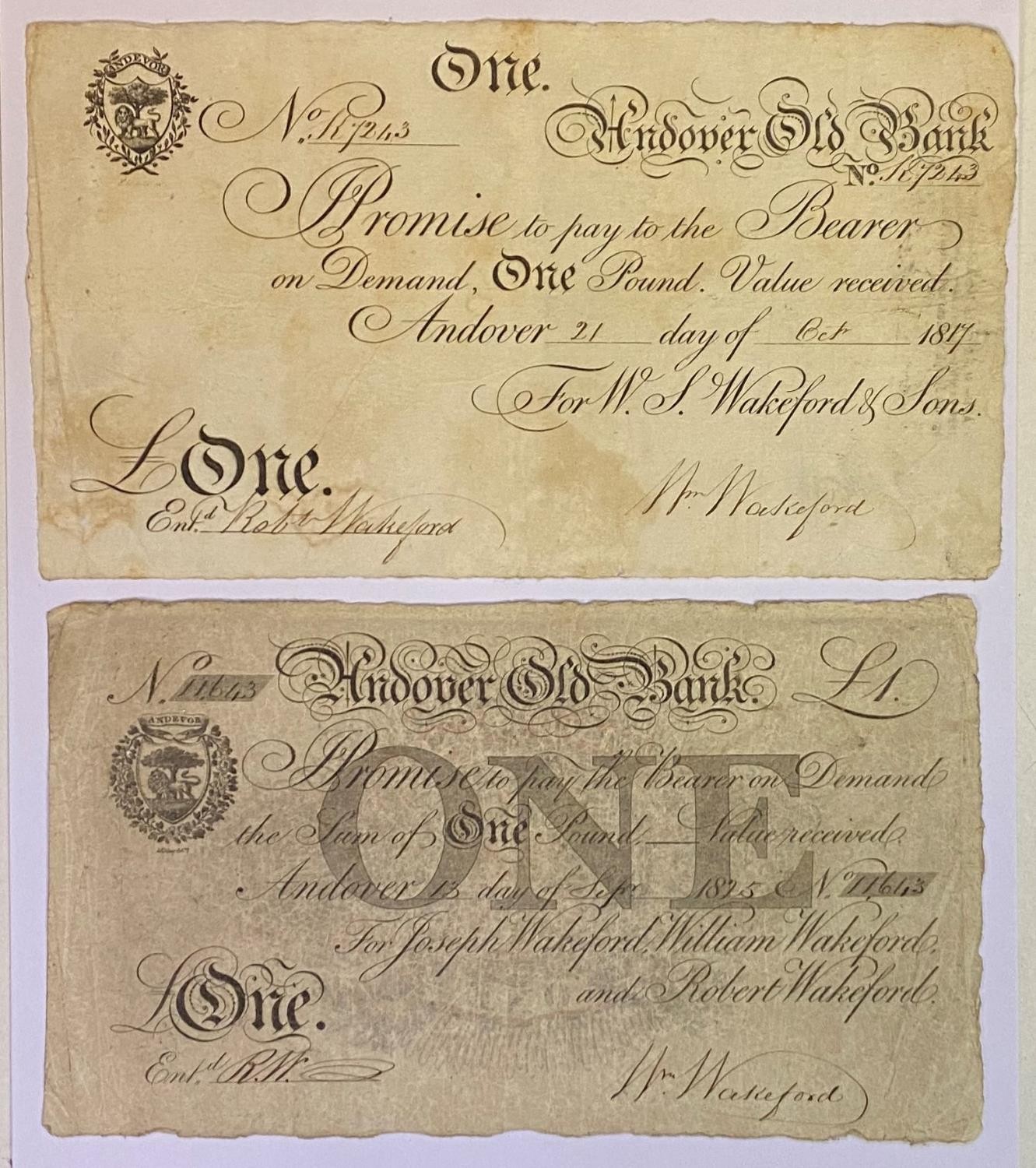 An early 19th century Andover Old banknote £1, 1817, and another, 1825
