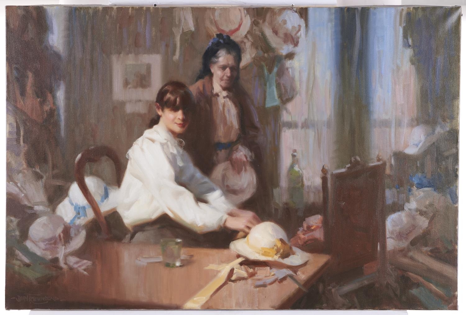 John Richard Townsend (1930-2013) - The Young Milliner, oil on canvas, signed lower left, 61 x 92cm, unframed