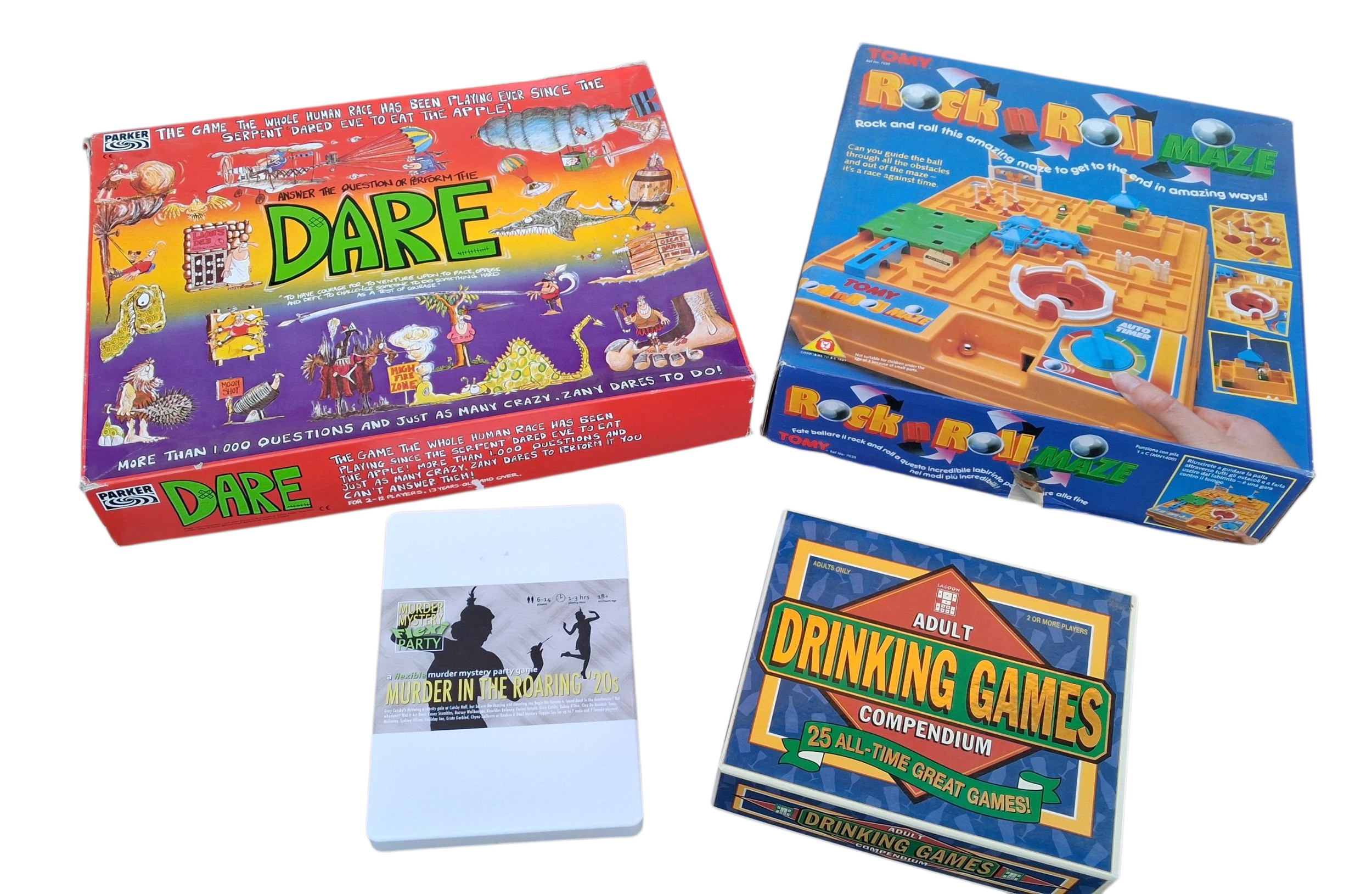4 BOARD GAMES- DARE, ROCK N ROLL MAZE ETC