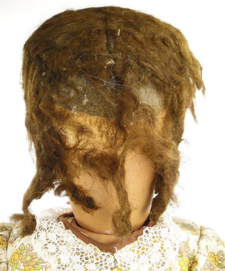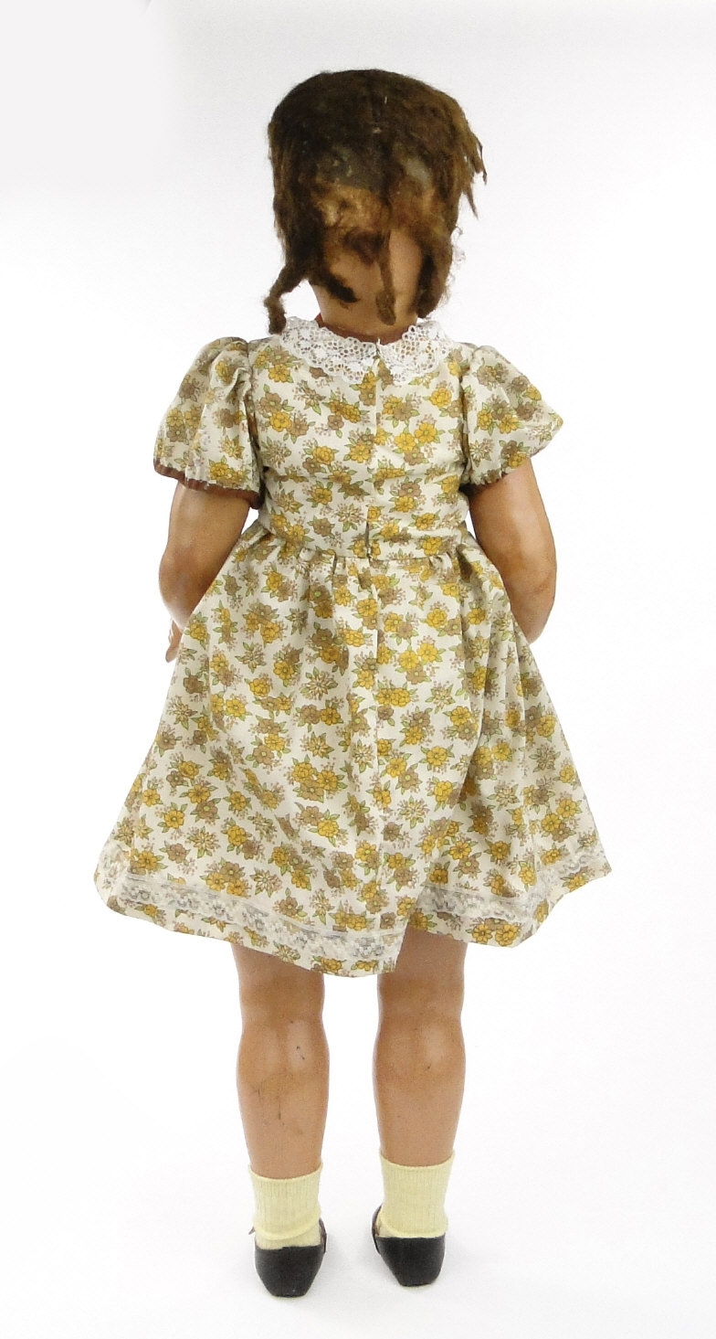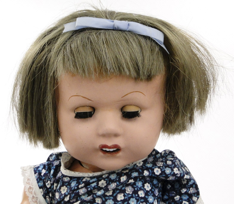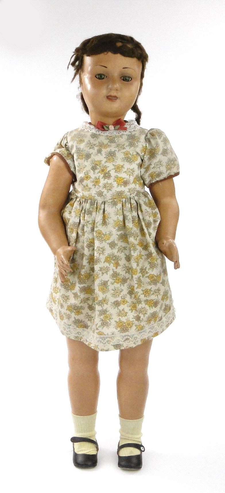 Four 1960s composition dolls with painted facial features, many with real hair wigs, the largest approximately 75cm high
