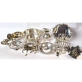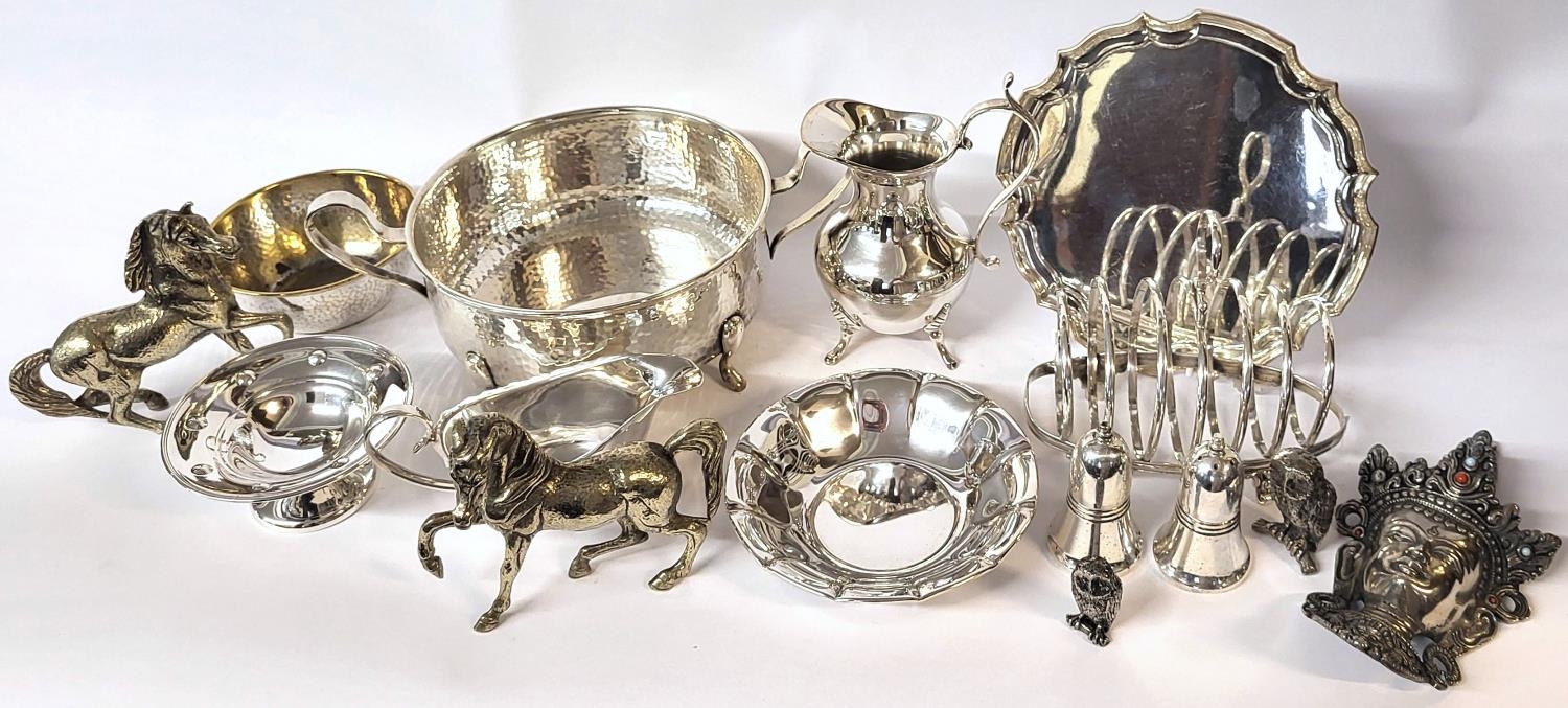 Together with a pair of heavy plated galloping horses, owls, Oriental mask, toastrack and other plated serving dishes.