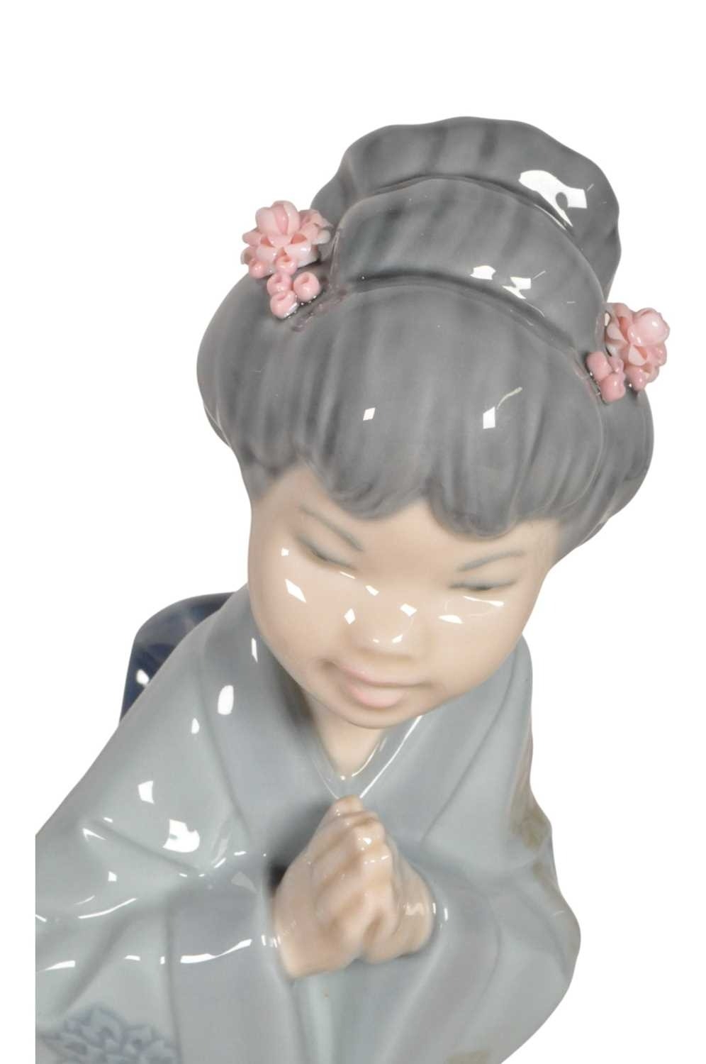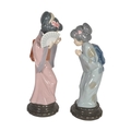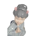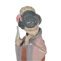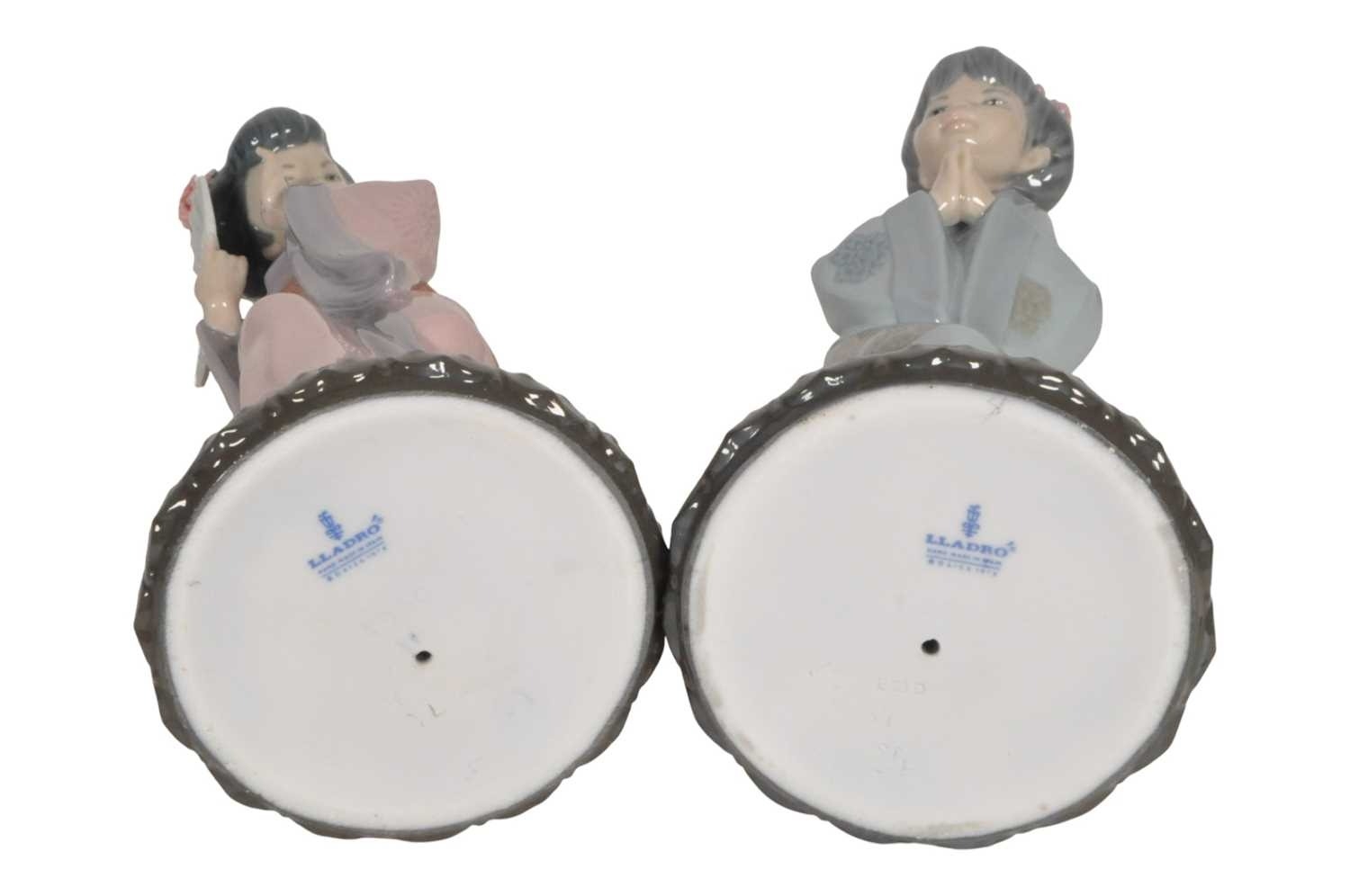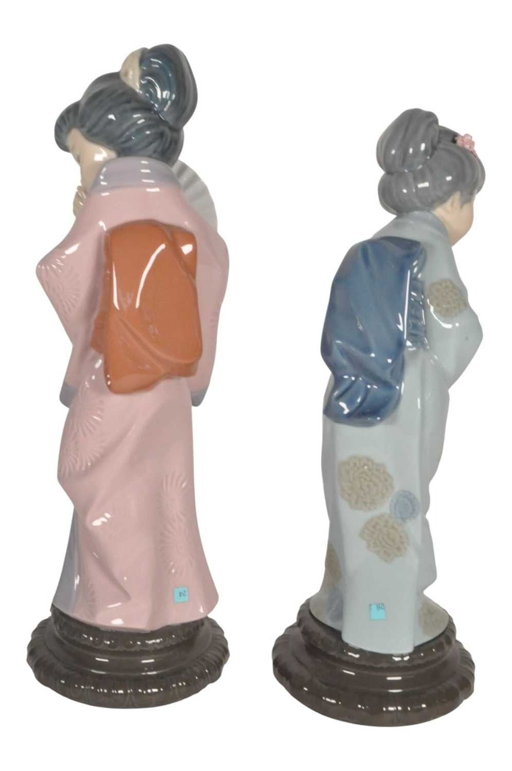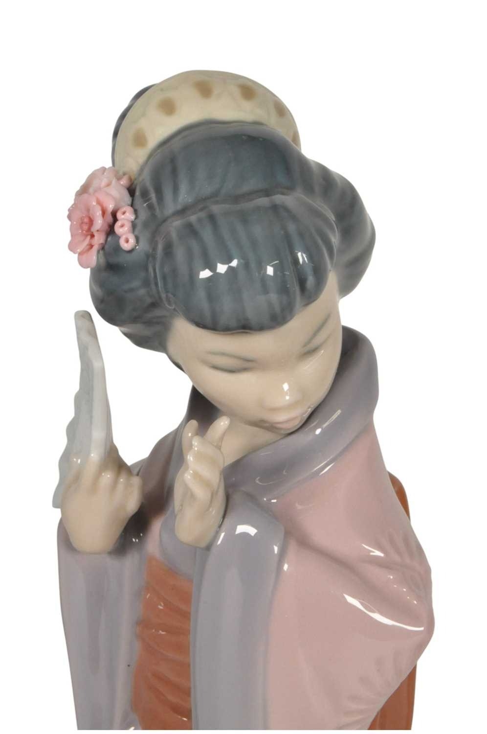 Lladro - Two late 20th century porcelain Japanese Geisha lady figures. Comprised of no. 4990 'Japonesita tímida' housed within the original box and no. 4989 'Japonesita Sayonara'. Maker's mark to the base of each piece. Largest measuring approx. 29.5cm tall.
