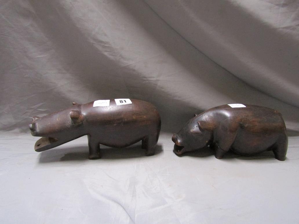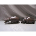 TWO CARVED WOODEN HIPPOS
