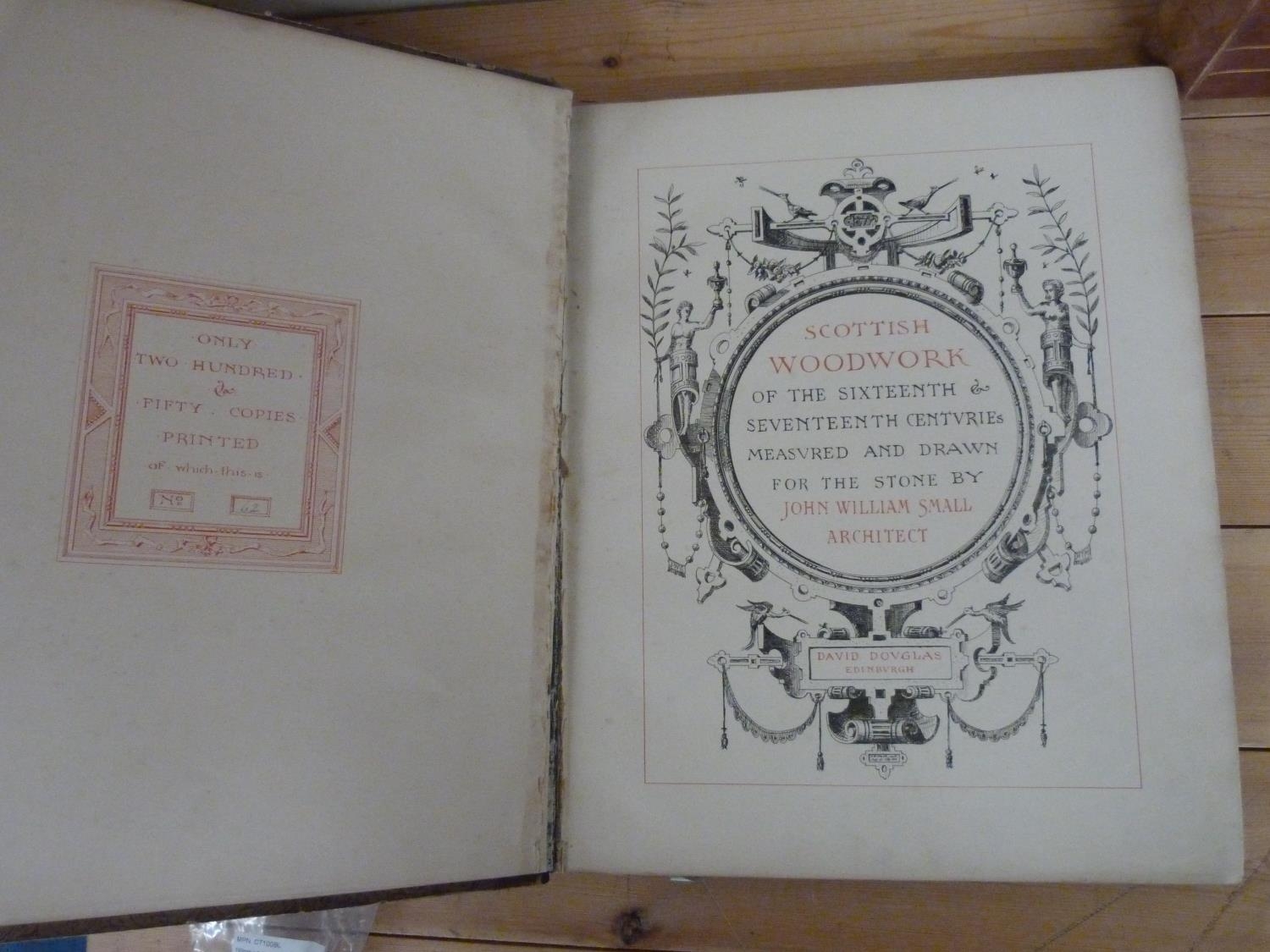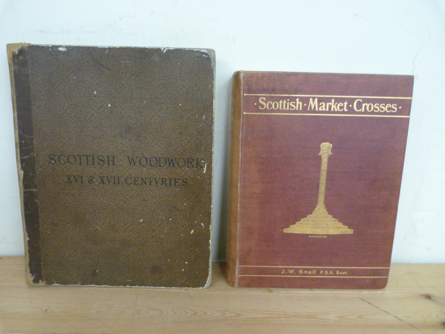 SMALL JOHN W. Scottish Market Crosses. Ltd. ed. 150/500. Etched plates. Large quarto. Orig. maroon cloth gilt. Stirling, 1900; also J. W. Small, Scottish Woodwork of the Sixteenth & Seventeenth Centuries, ltd. ed. 250, plates, large quarto in poor bdgs., Edinburgh, c.1878. (2).