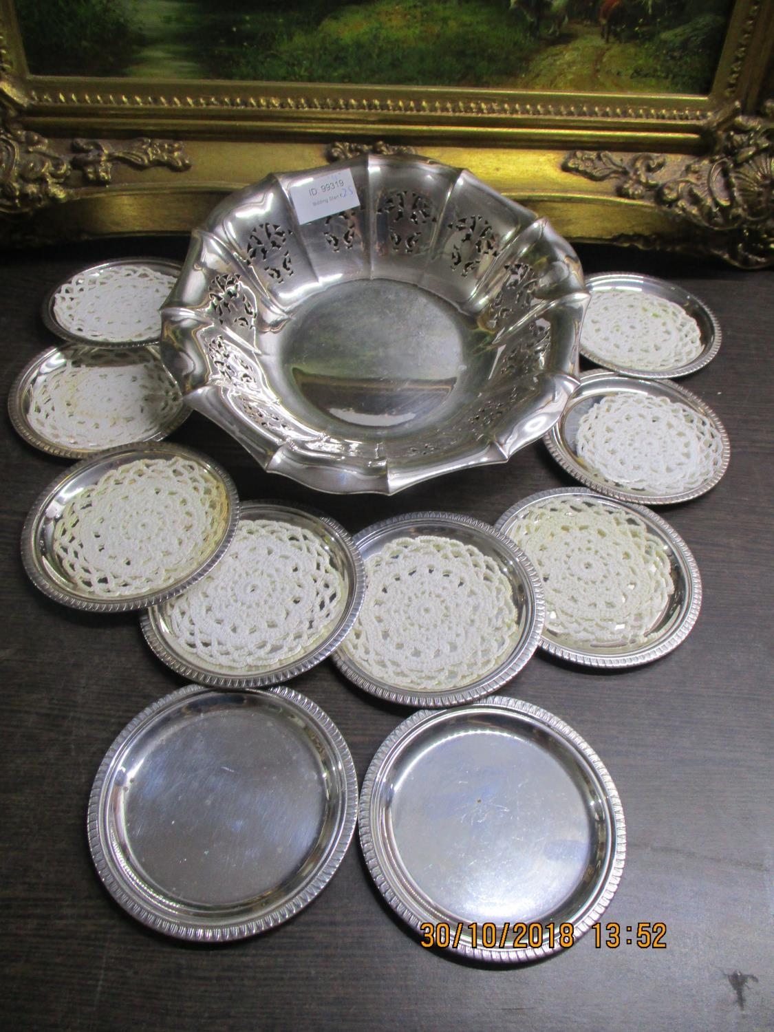 10 x Silver Plated Coaster Plus Silver Plated Bowl