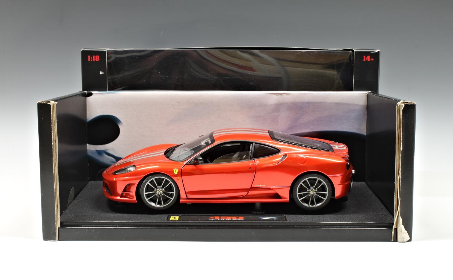 A boxed Ferrari 430 Scuderia 1-18 scale Hotwheels Elite model.
