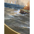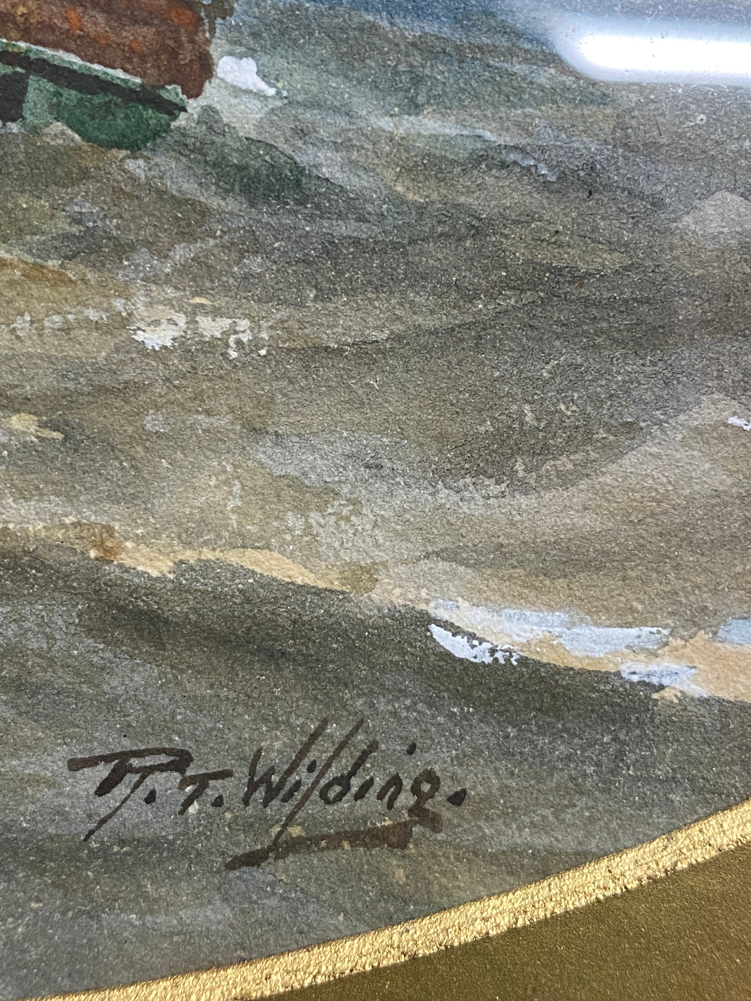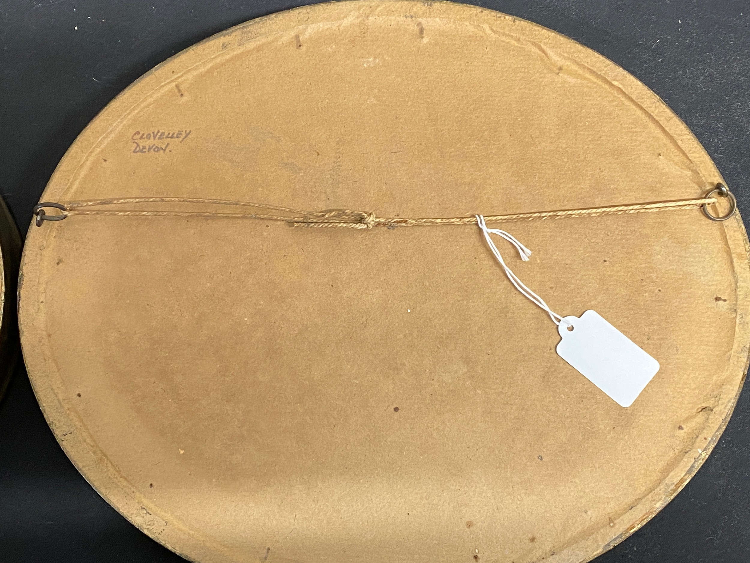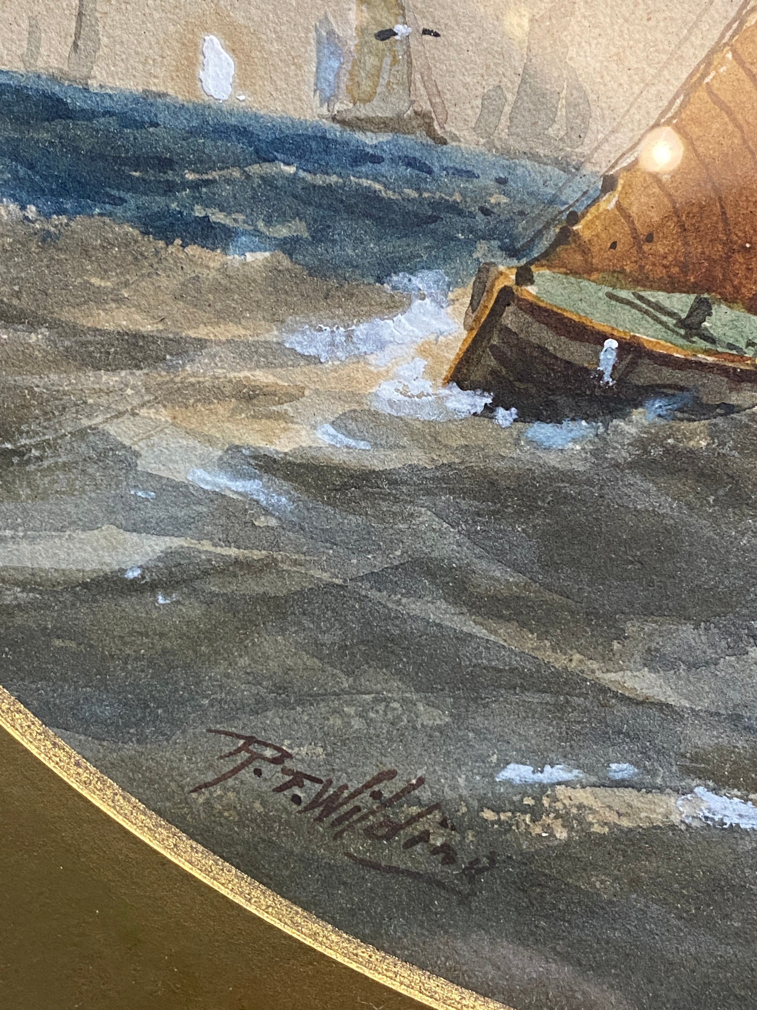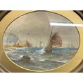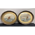 R T Wilding a pair of oval framed watercolours of coastal scenes Clovelly, Devon and Gorleston Harbour. Painting size 23cms w x 17.5cms h.