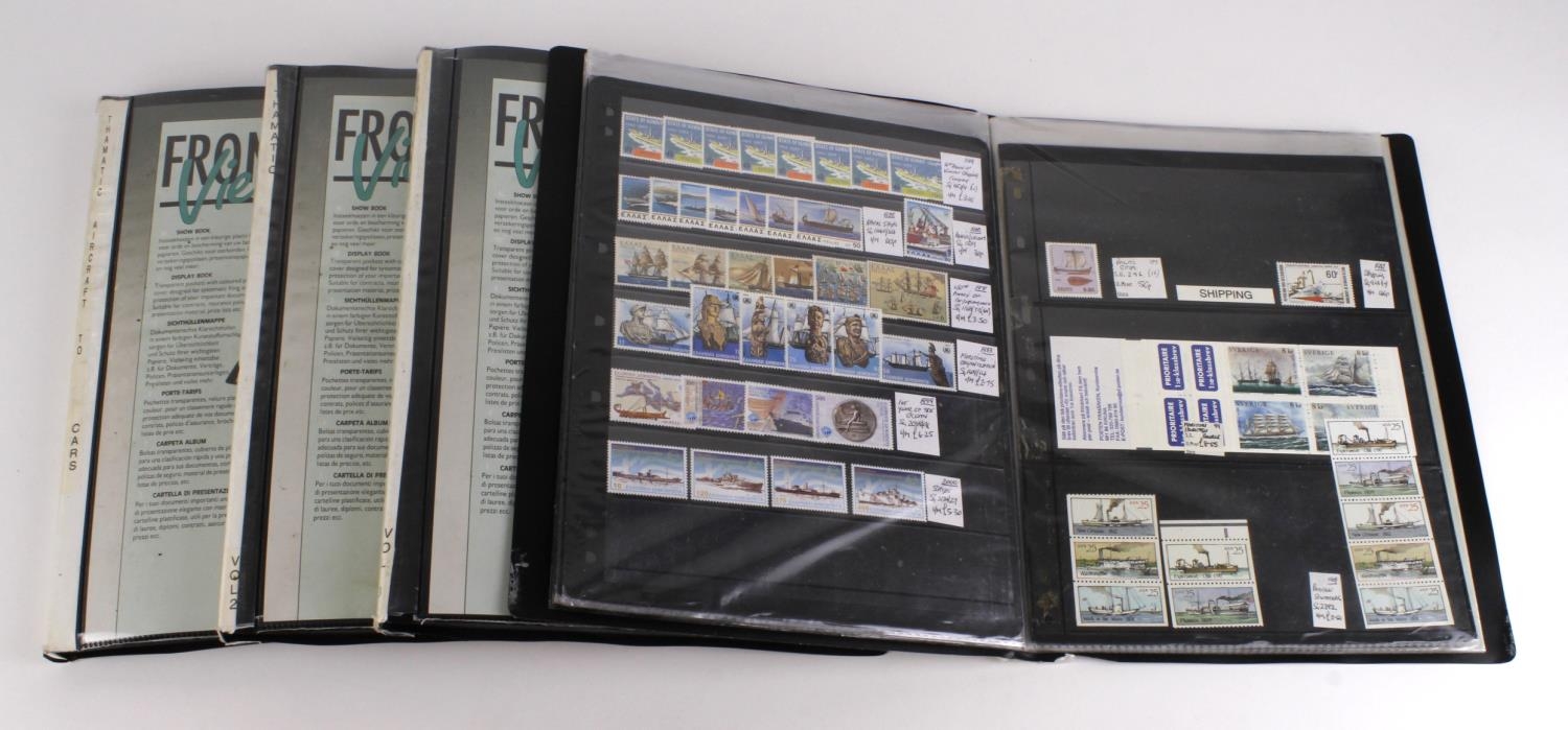 Dealers stock of world stamps priced for sale on Hagner sheets contained in 4 albums, inc aircraft, animals, football, Marilyn Monroe, trains, etc. (approx 1000+)
