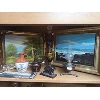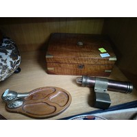 Mixed lot to include embroidered footstool, treenware and hand carved carving set