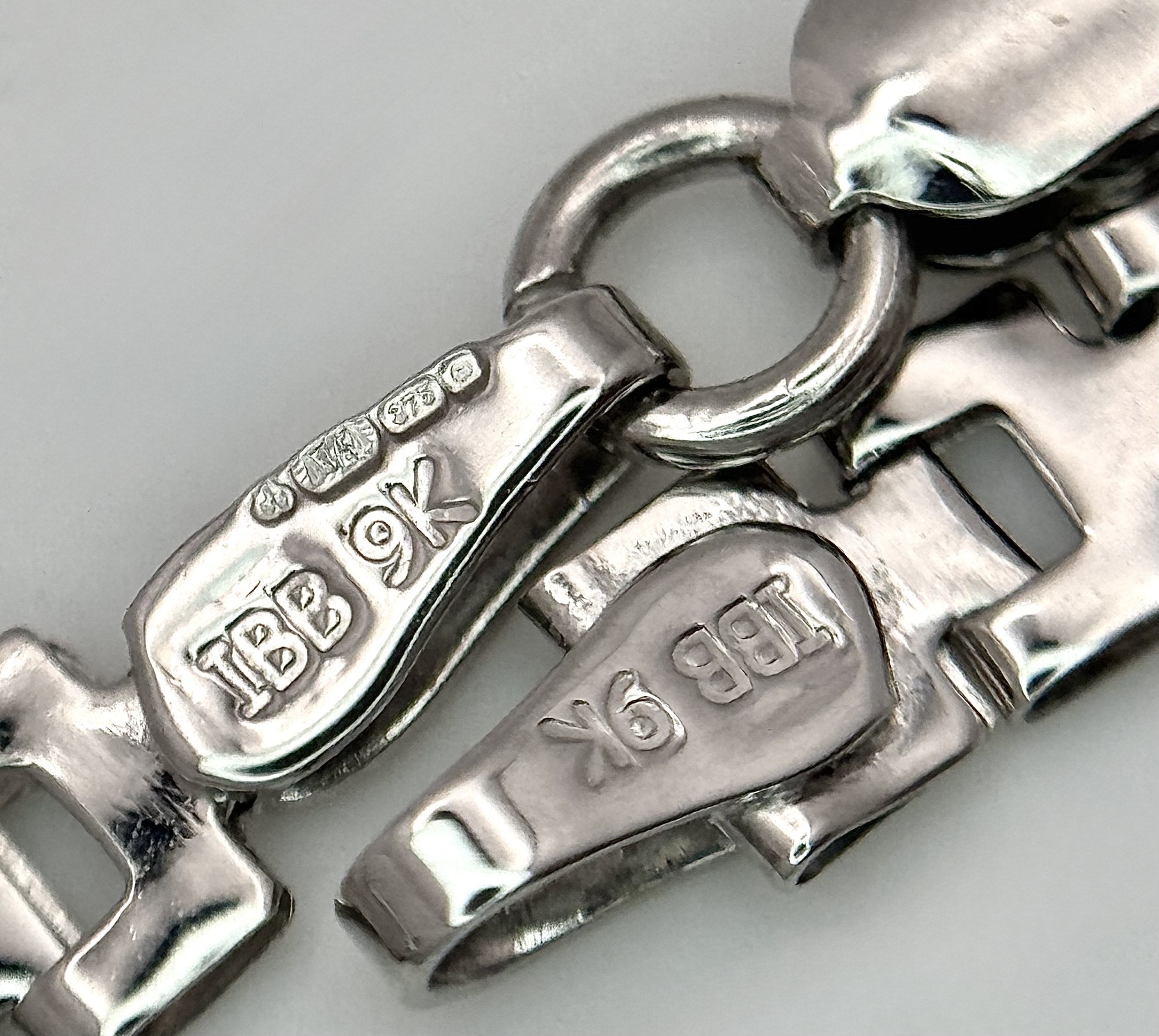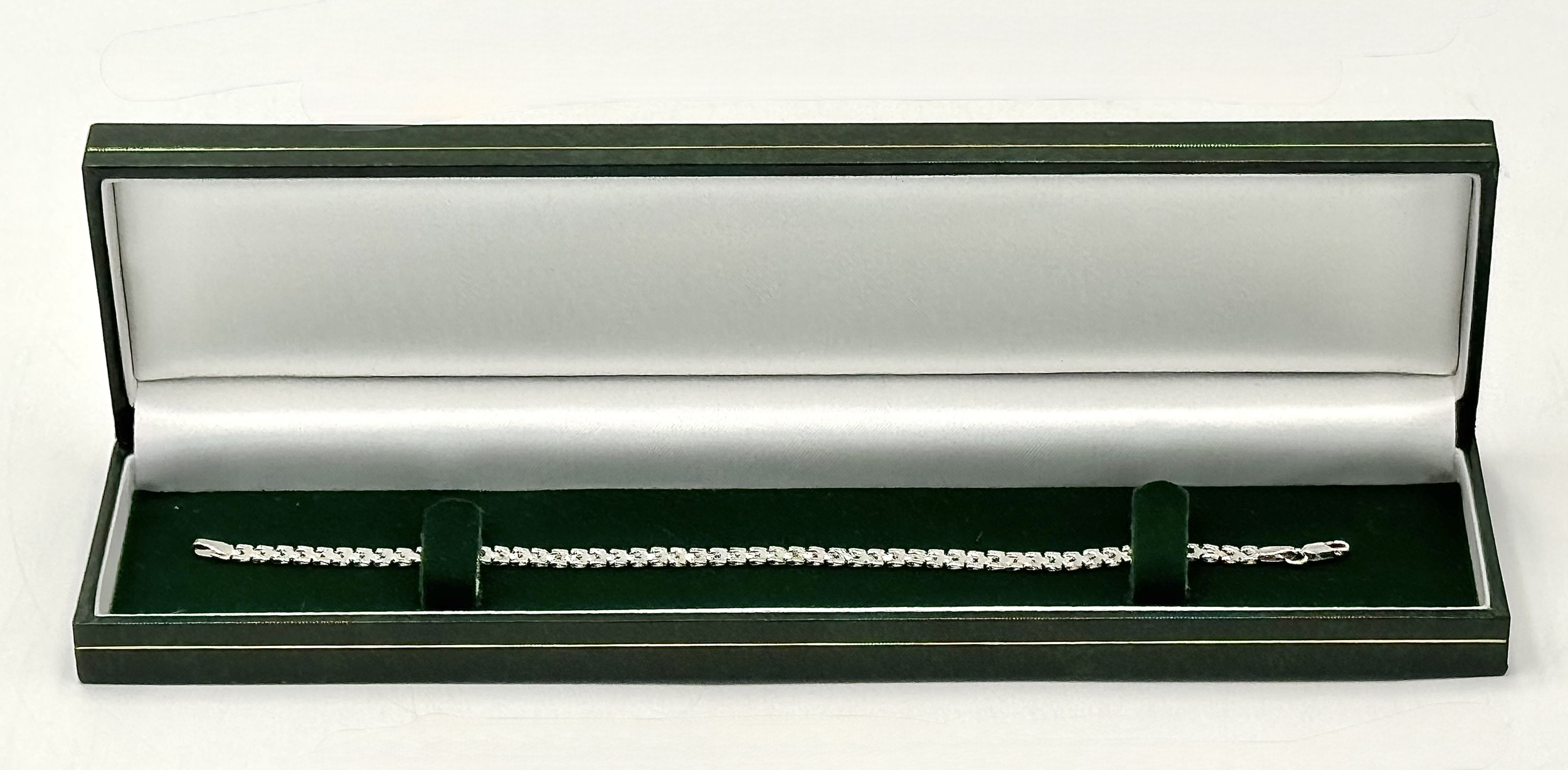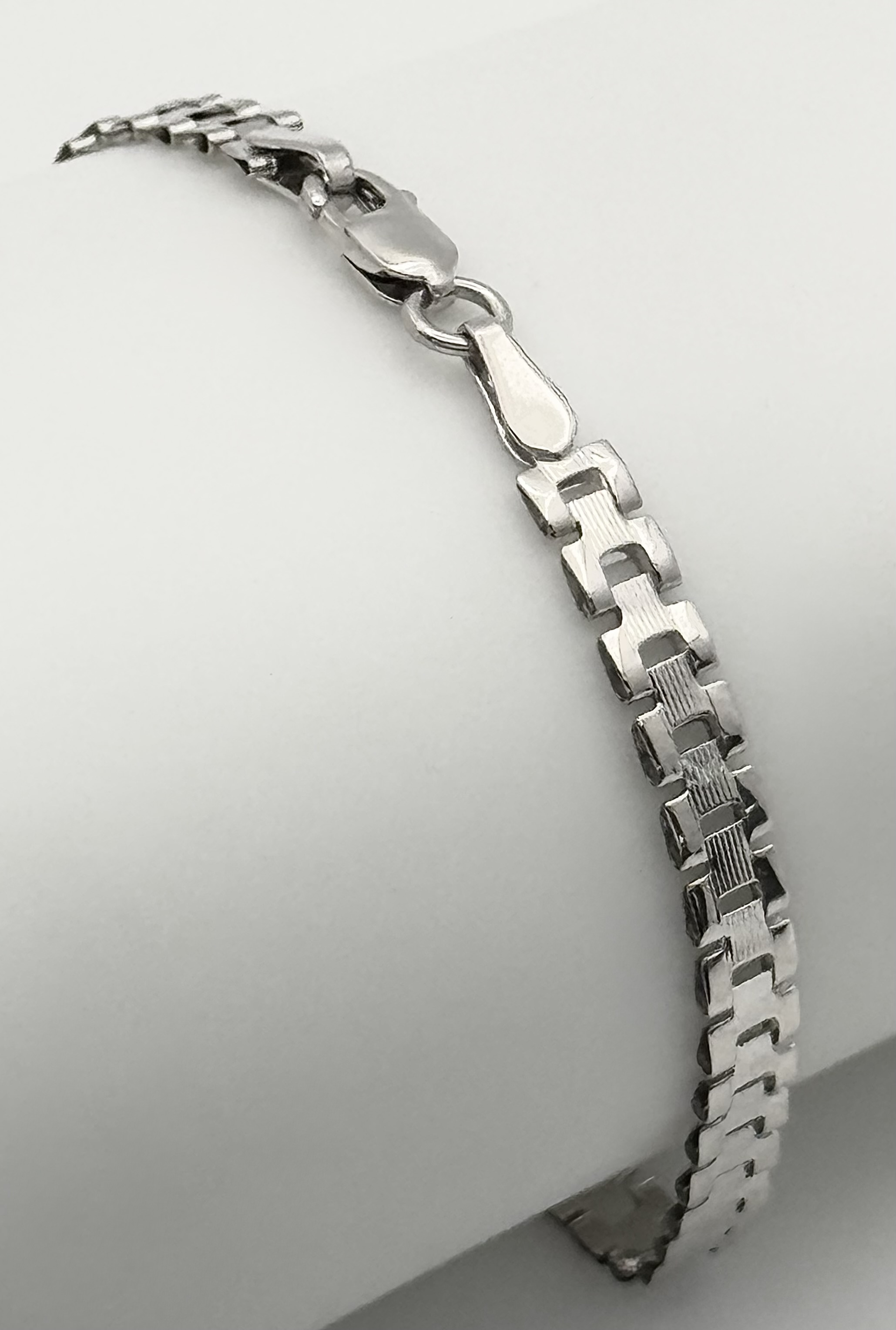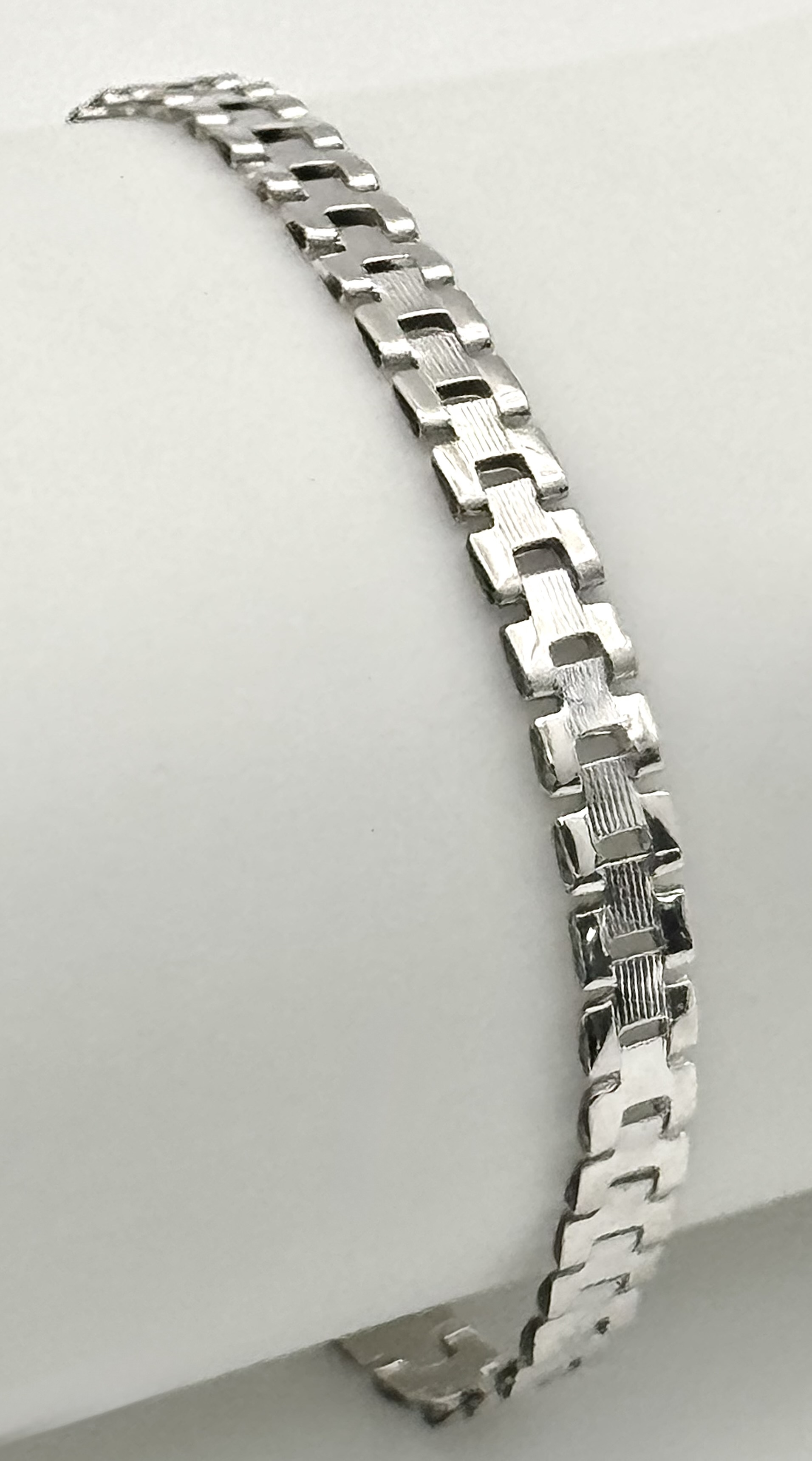 A 9K White Gold Y Link Bracelet. 19cm length. 2.11g weight. Comes with presentation box.