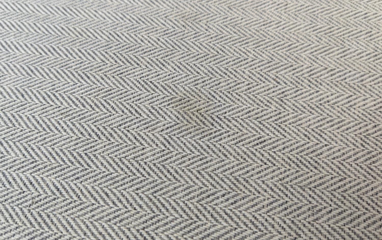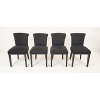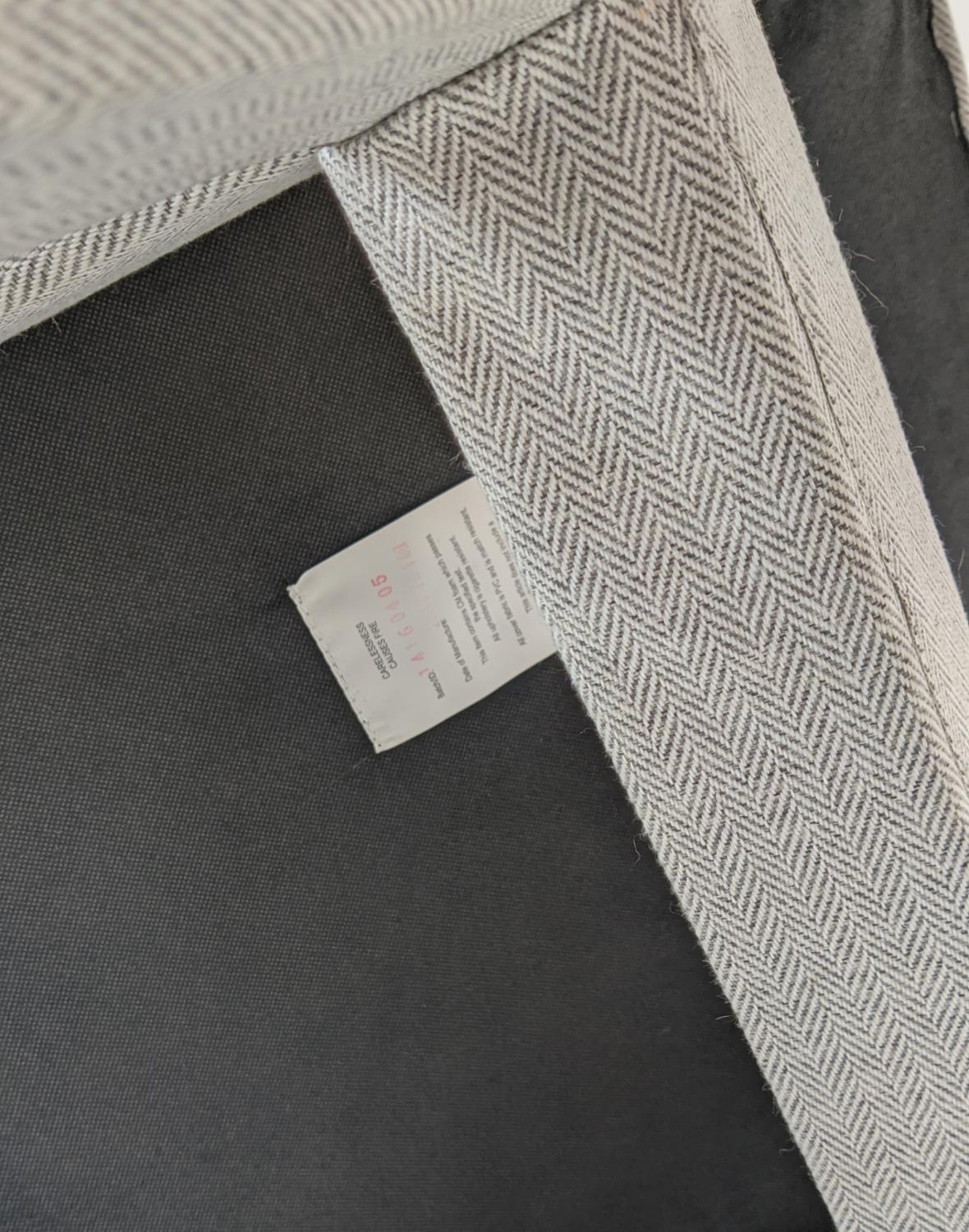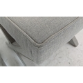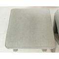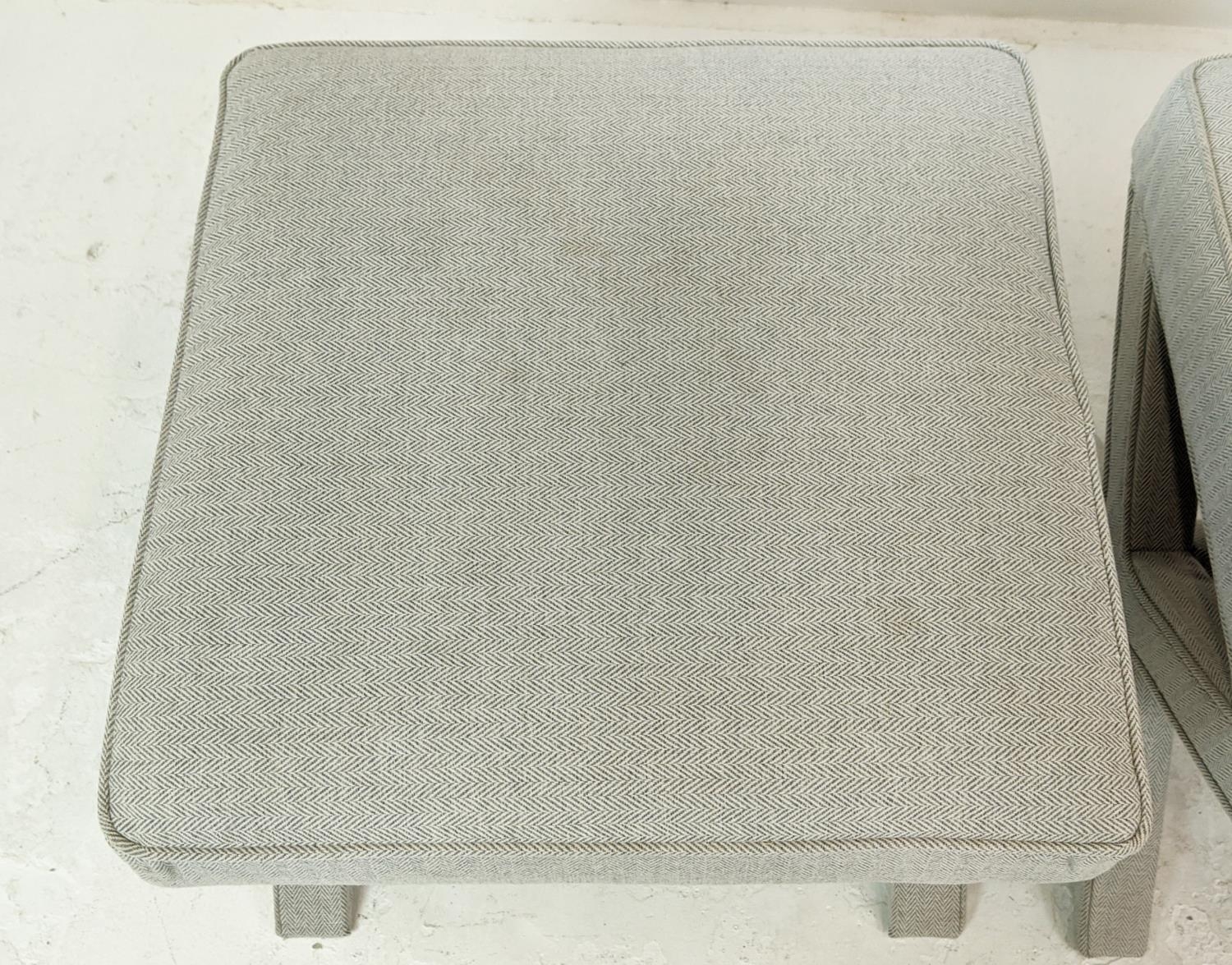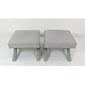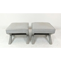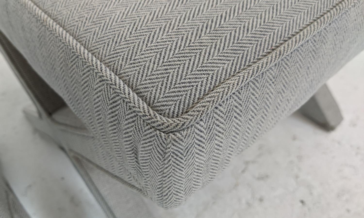 EICHHOLTZ FOOTSTOOLS, a pair, light grey upholstery on x-frame supports, 56cm W x 56cm D x 47cm H. (2)