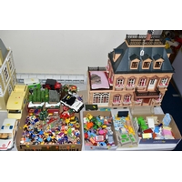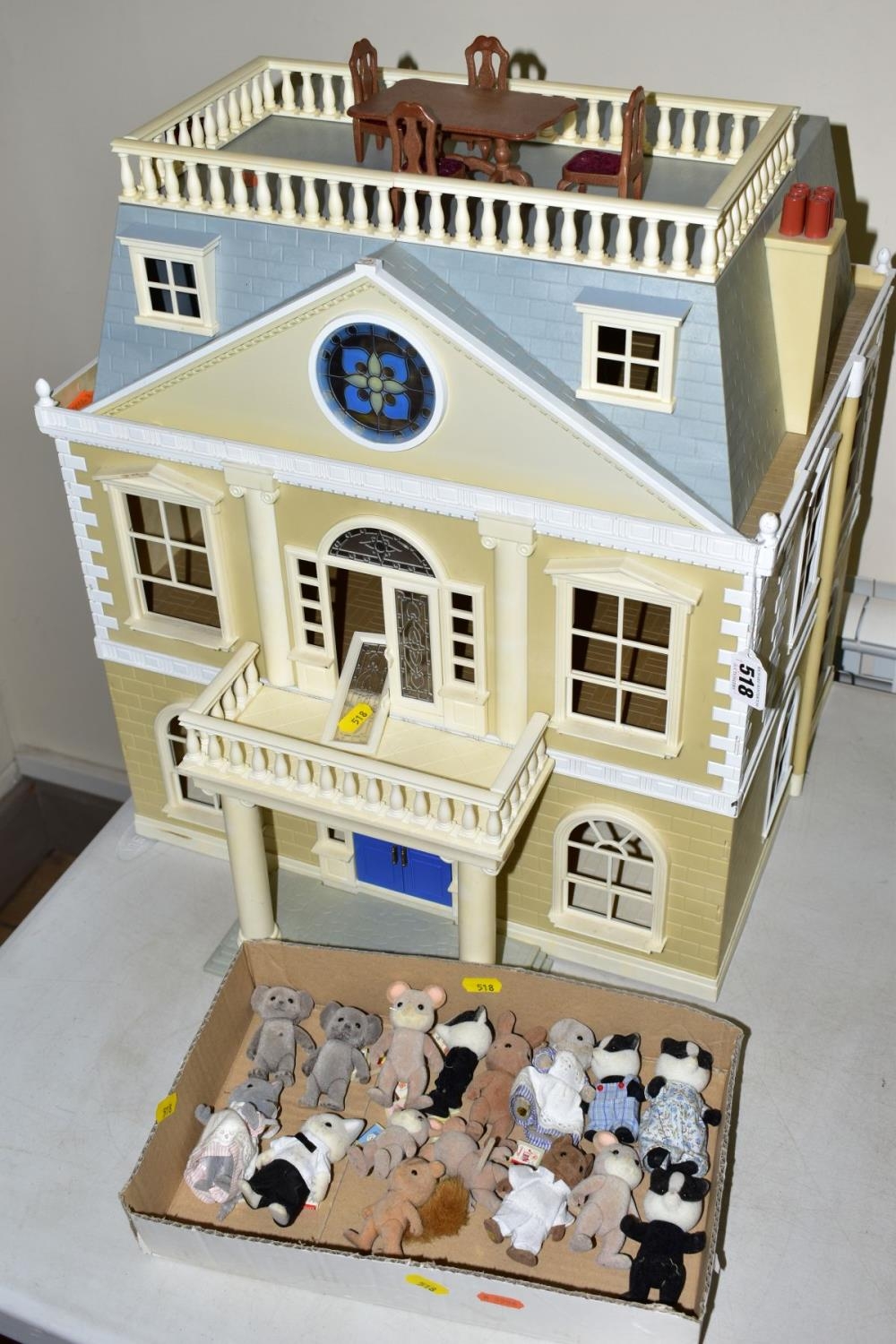 A SYLVANIAN FAMILIES GRAND HOTEL, missing plant pots and most furniture, has slight damage to one window but otherwise appears complete, with a quantity of assorted figures