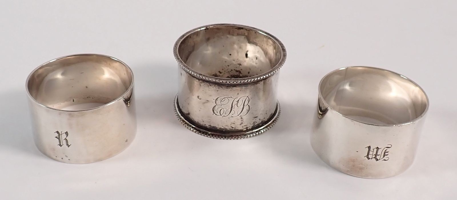 Three various silver napkin rings, 91g