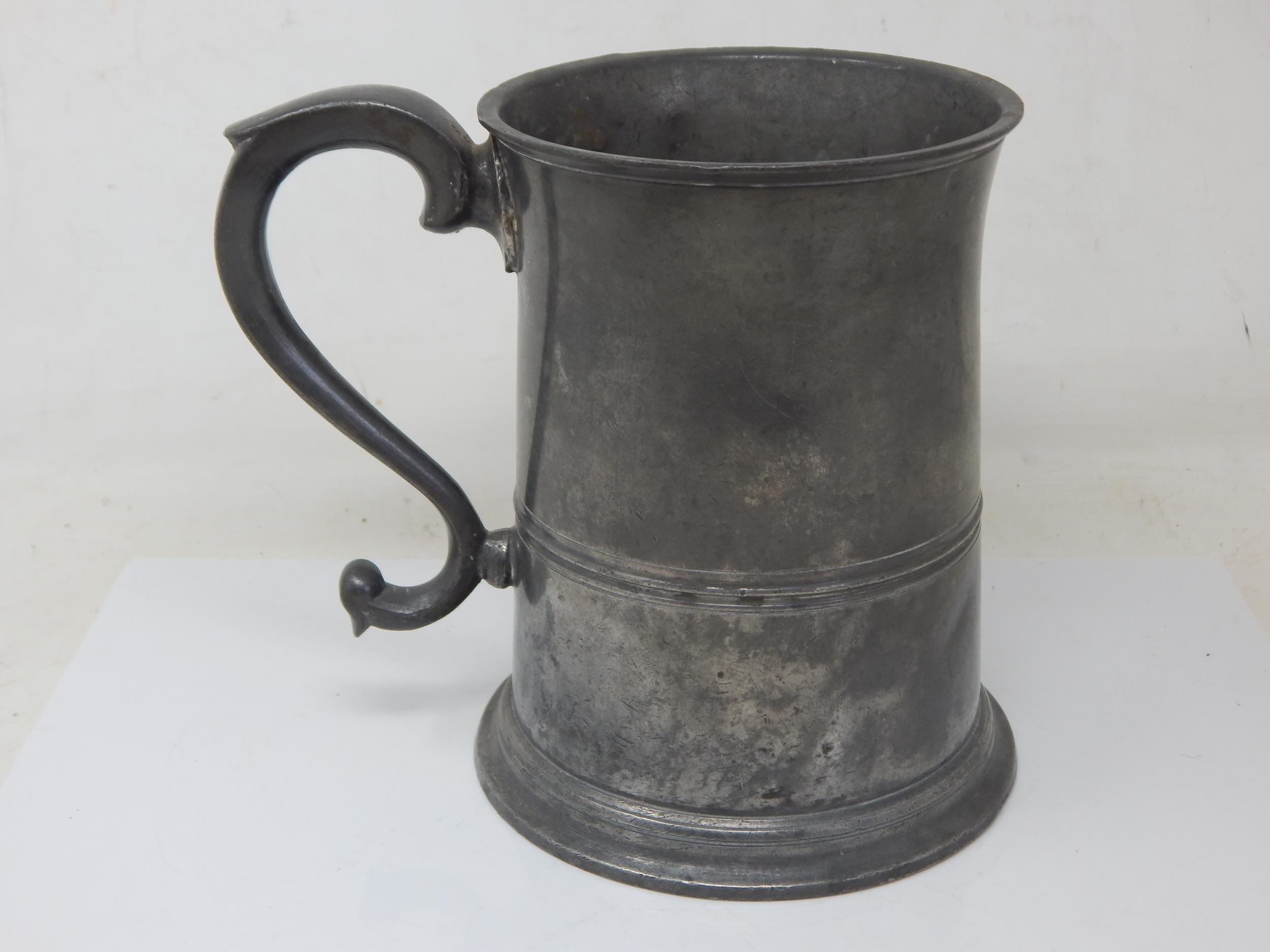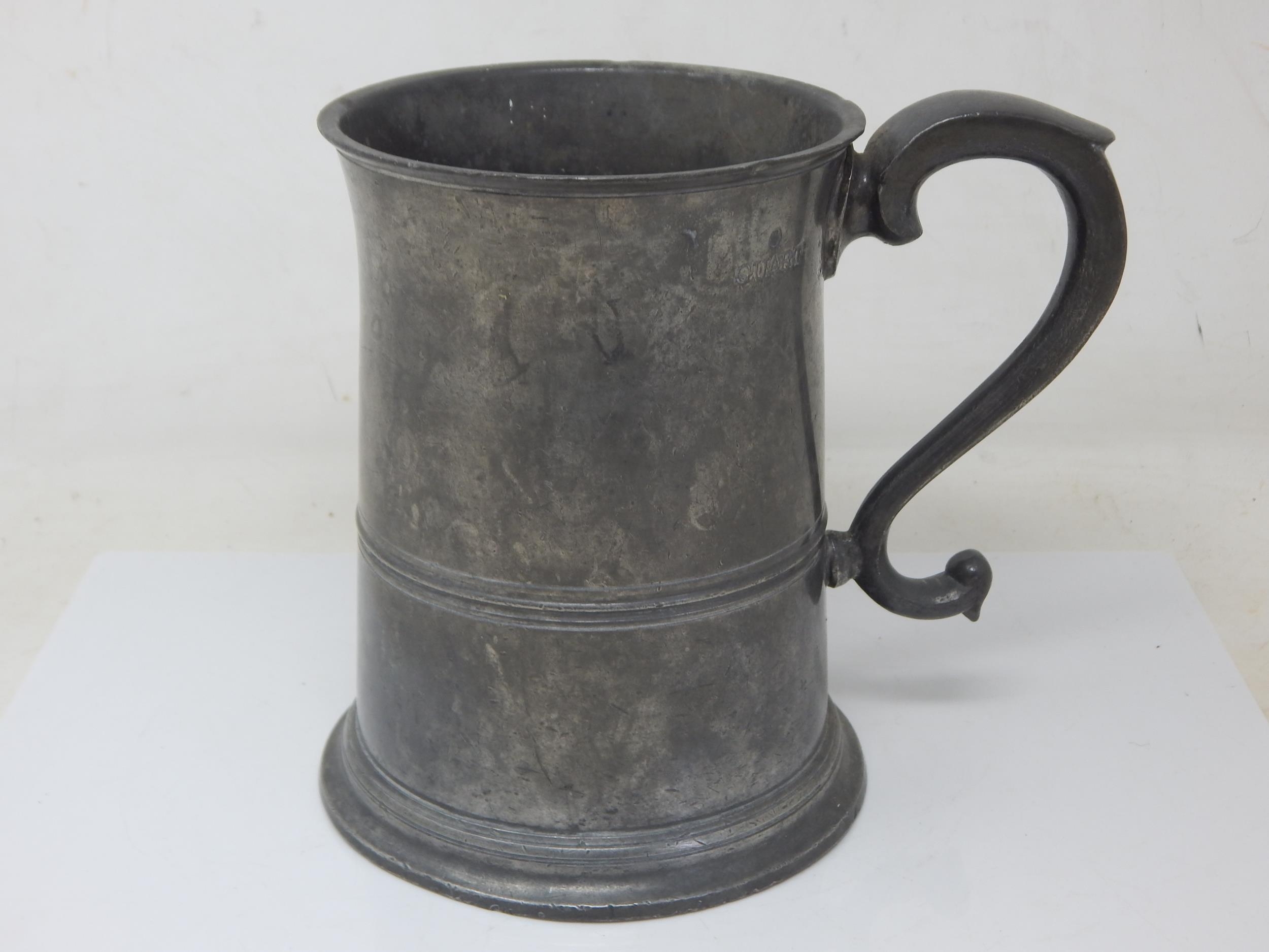 19th Century 1 Quart Pewter Tankard by J. Moyes, Edinburgh: Height 16cm