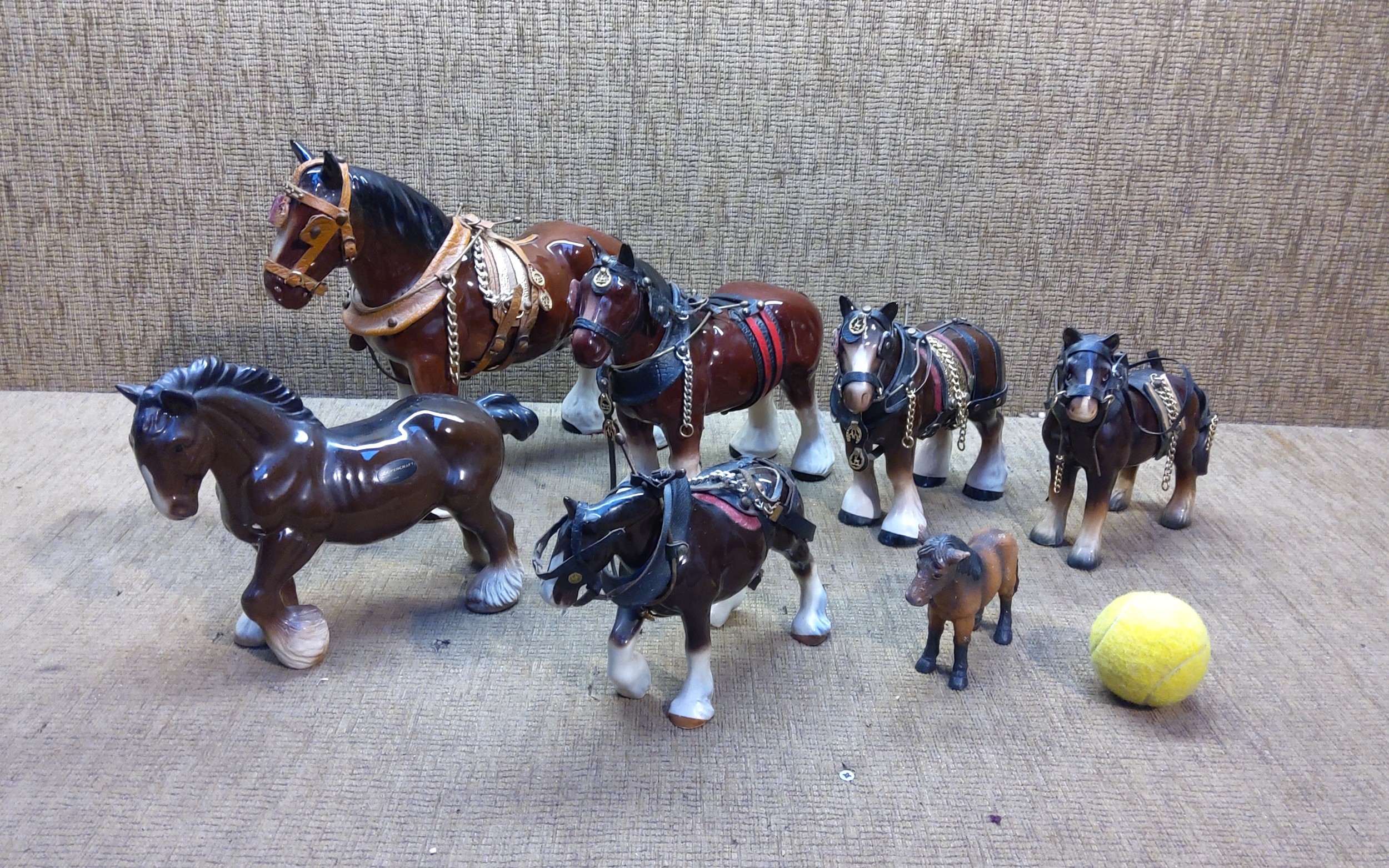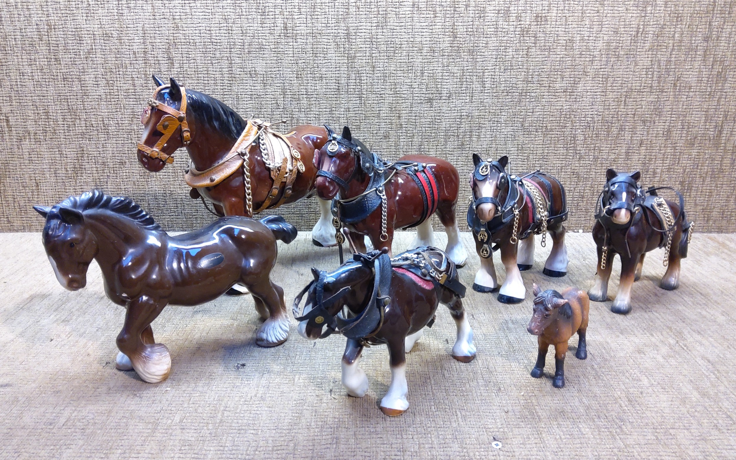 Collection of ceramic Staffordshire Shire horses.