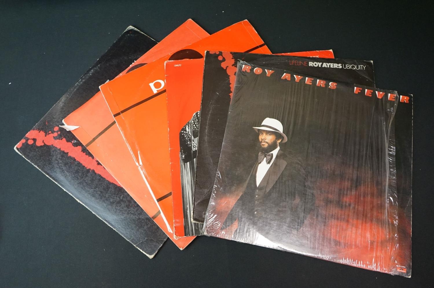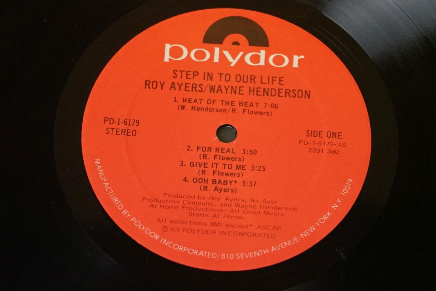Vinyl - Roy Ayers - 7 original albums + 3 12”, including: Roy Ayers & Wayne Henderson - Step Into Our Life (1978 USA, Polydor PD-1-6179) VG+ (still in shrink) / EX (Appears Unplayed) + Printed Inner. Roy Ayers & Wayne Henderson - Prime Time (1980, USA, Polydor PD-1-6276) VG+ (Still in shrink) / EX (Appears Unplayed). No Stranger To Love (1979 USA, Polydor PD-1-6246) VG+ / EX + Printed Inner. Let’s Do It (1978 USA, Polydor PD-1-6126) VG / VG+ /EX- + Printed Inner. Roy Ayers Ubiquity - Lifeline (1977 UK, Polydor, 2391292) VG / VG+ / EX-. Drivin’ On Up (1983, UK, Melodic Uno records, UM LP2) VG+ / EX (Appears Unplayed). Fever (1979 USA, Polydor PD-1-6204) also Get Up Get On Down (UK 12”), (Sometimes)n Believe In Yourself (UK 12”), Running Away (US 12”)