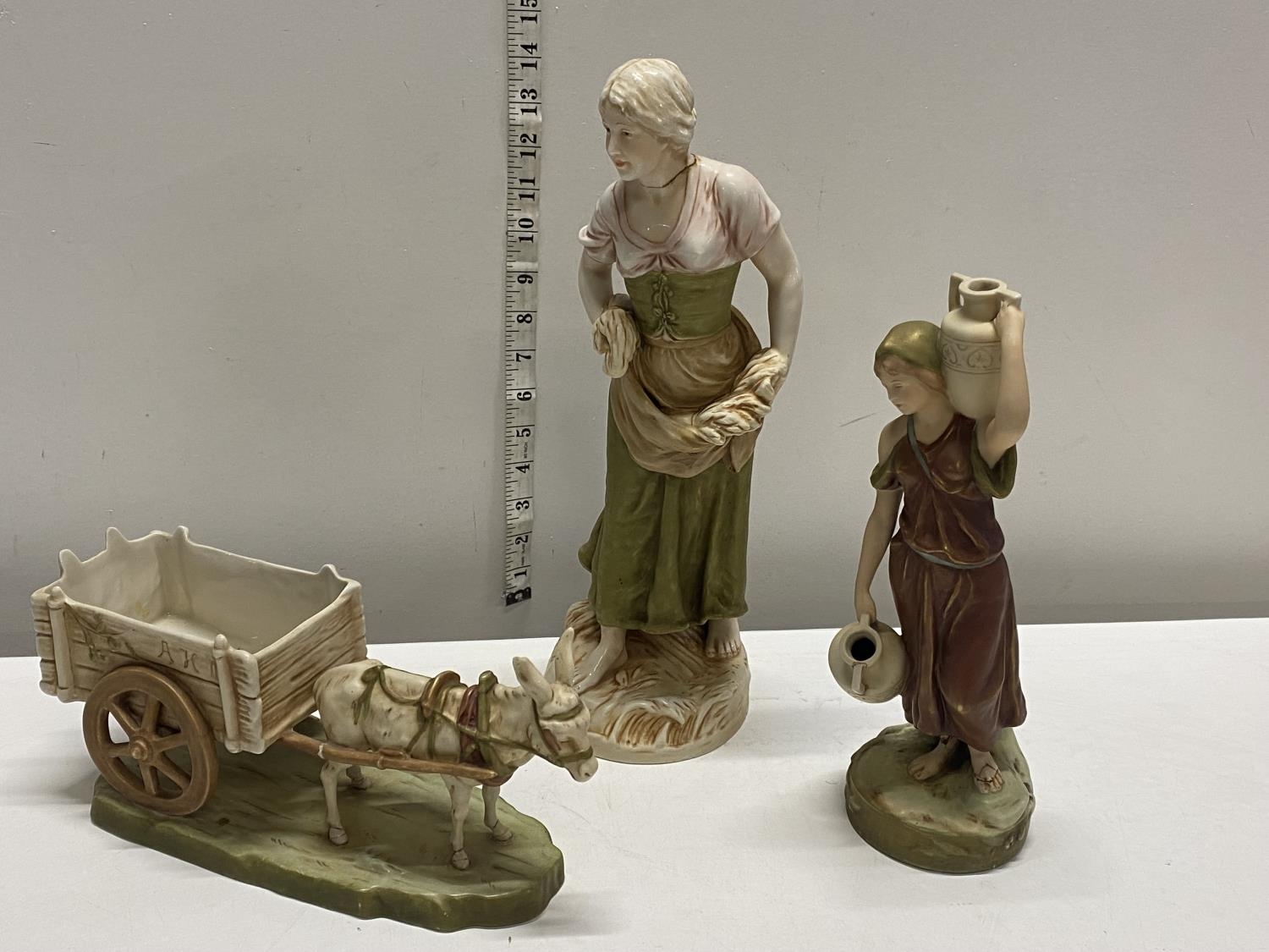 Three assorted Royal Dux figurines (all with damage/repairs), shipping unavailable