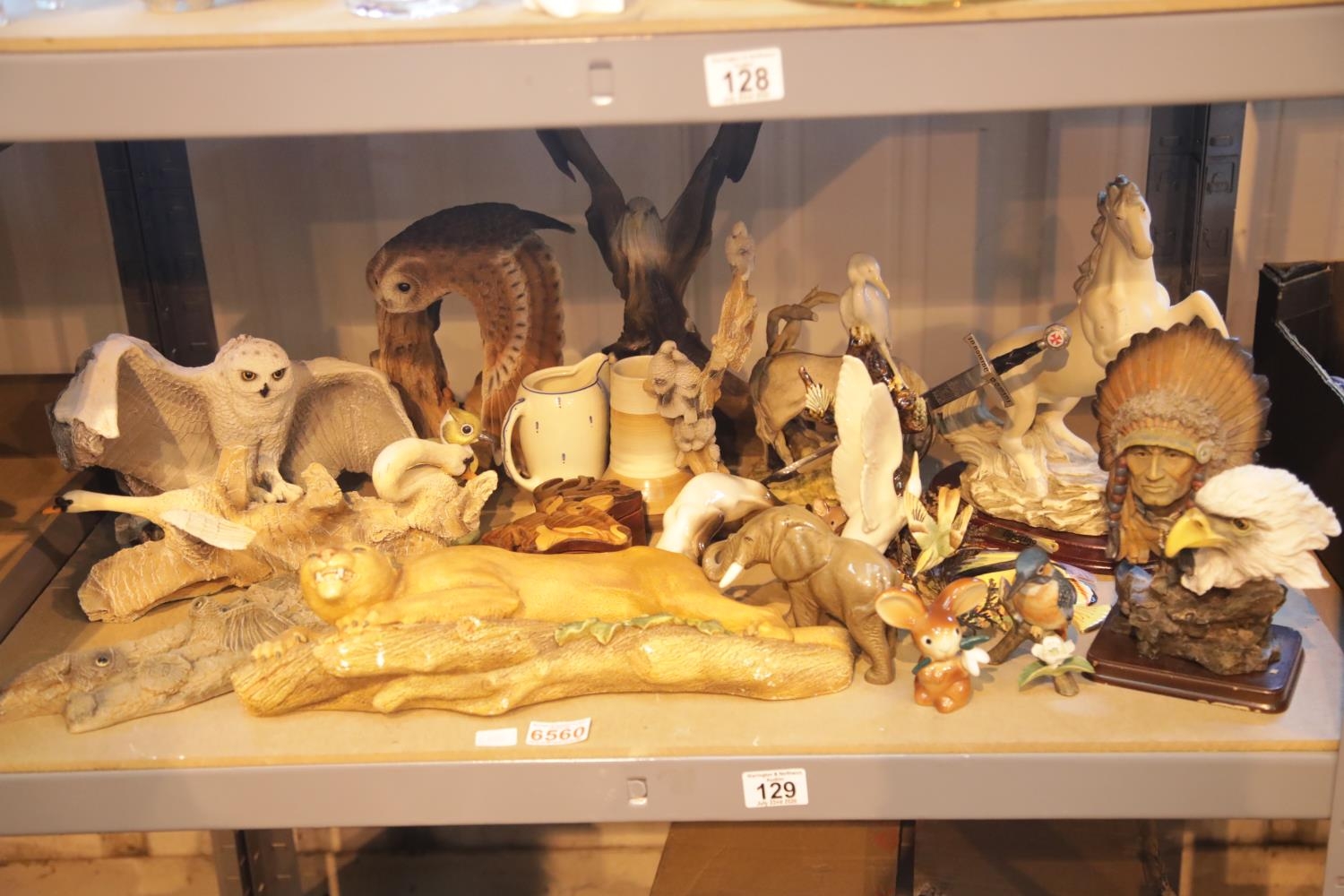 Shelf of assorted ornaments. This lot is not available for in-house P&P.