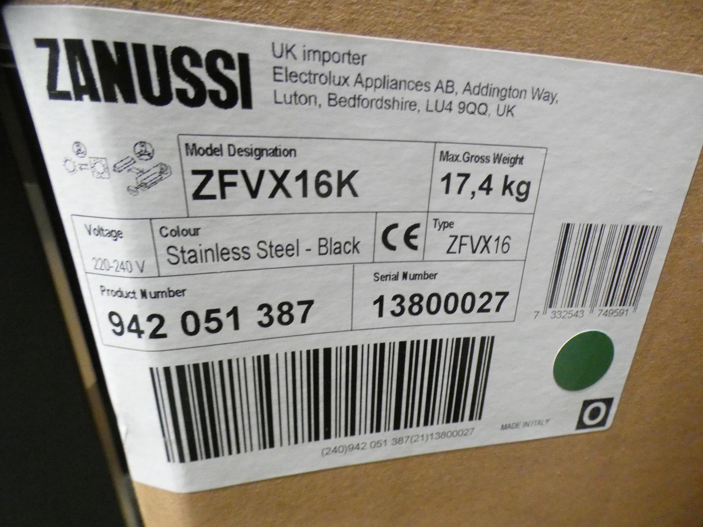 Zanussi Black Screen Hood (H915xW598xD176) - model:- ZFVX16K, RRP £232.50 inc. VAT * This lot is subject to VAT