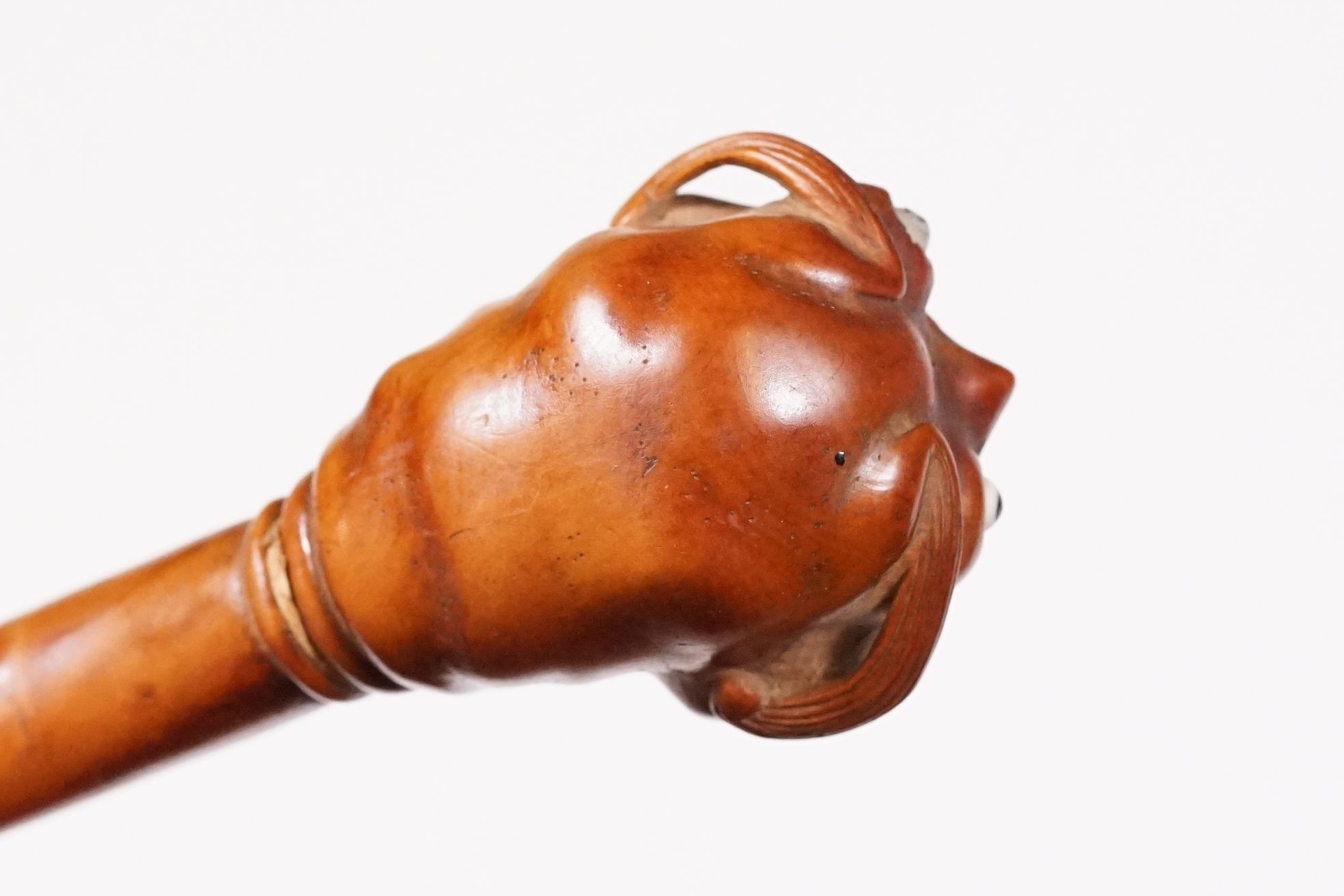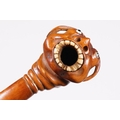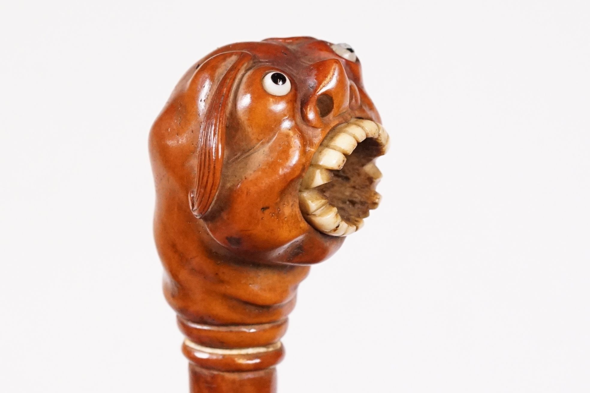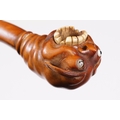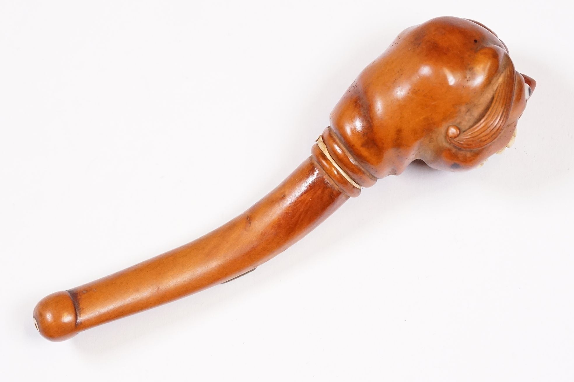Japanese smoking pipe in the form of a demon, possibly Meiji period with bone inlay, L 11cm