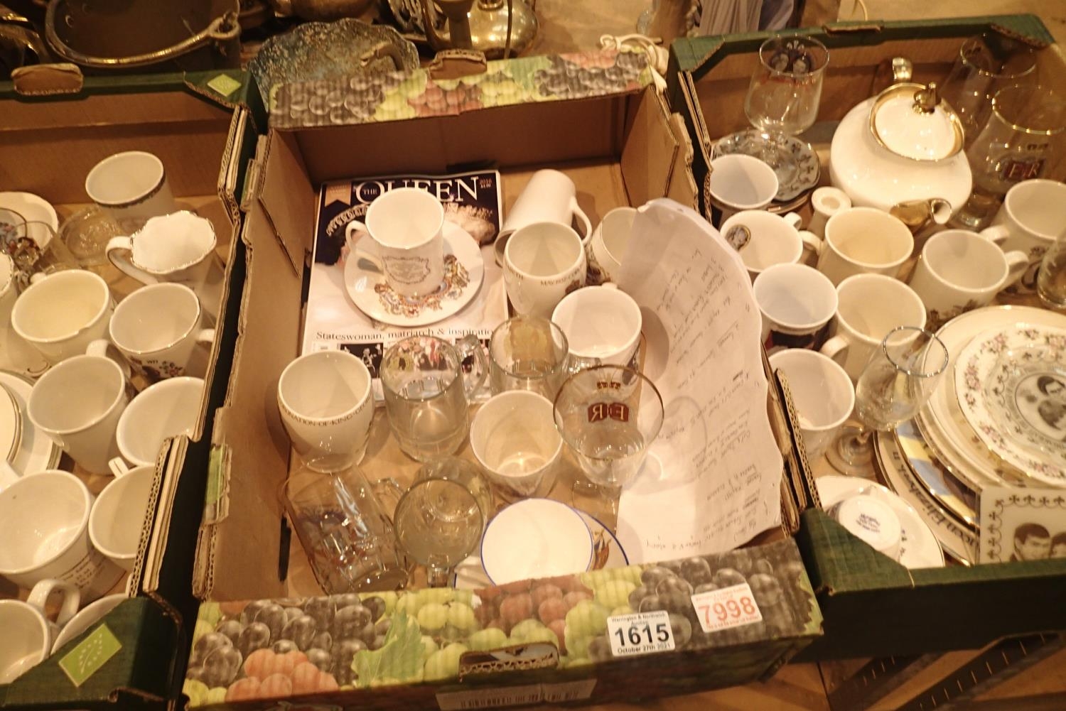 Three boxes of Royal memorabilia, ceramics and glassware. Not available for in-house P&P, contact Paul O'Hea at Mailboxes on 01925 659133
