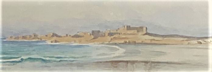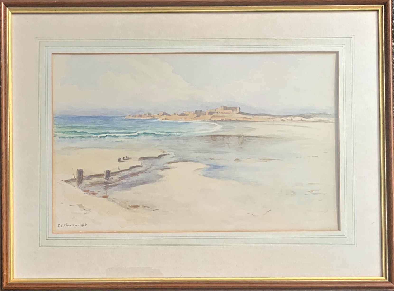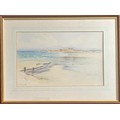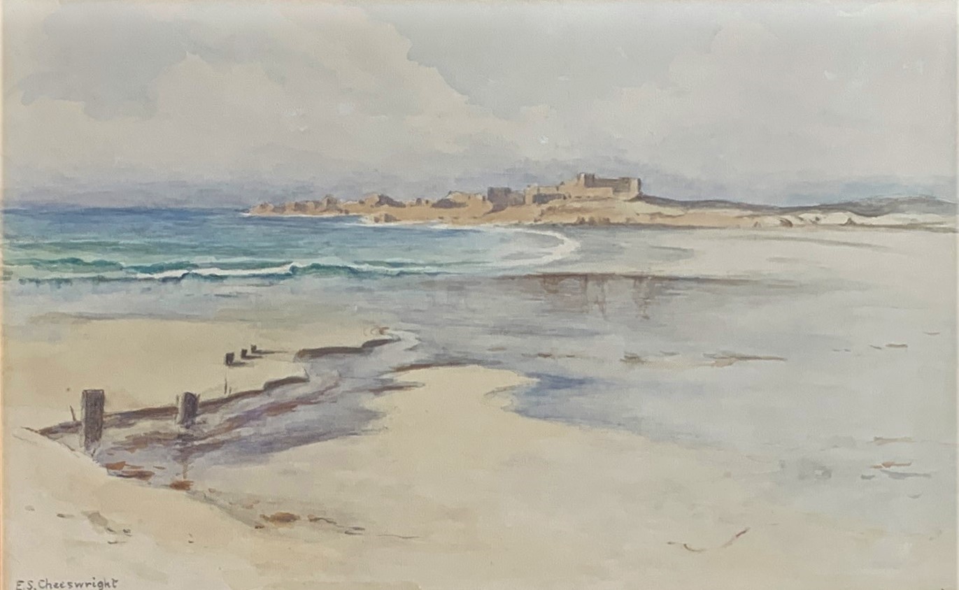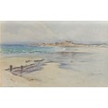 Ethel Sophia Cheeswright (1874-1977) Vazon Bay Guernsey with Fort Hommet in the distance, watercolour, signed, 28 x 45 cm.