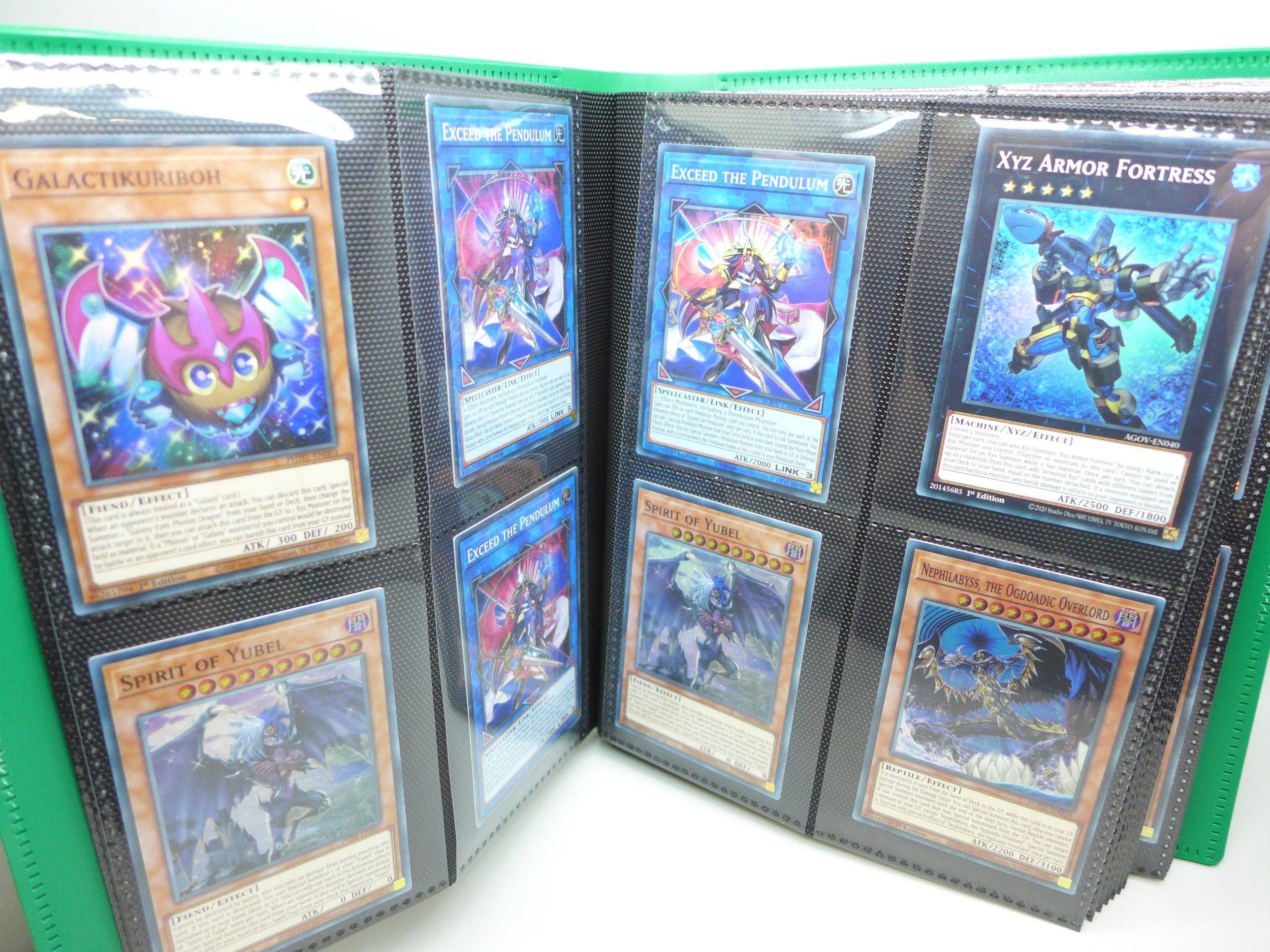 A folder of Yu-Gi-Oh cards including over 80 Holographic and 1st editions, 160 cards in total
