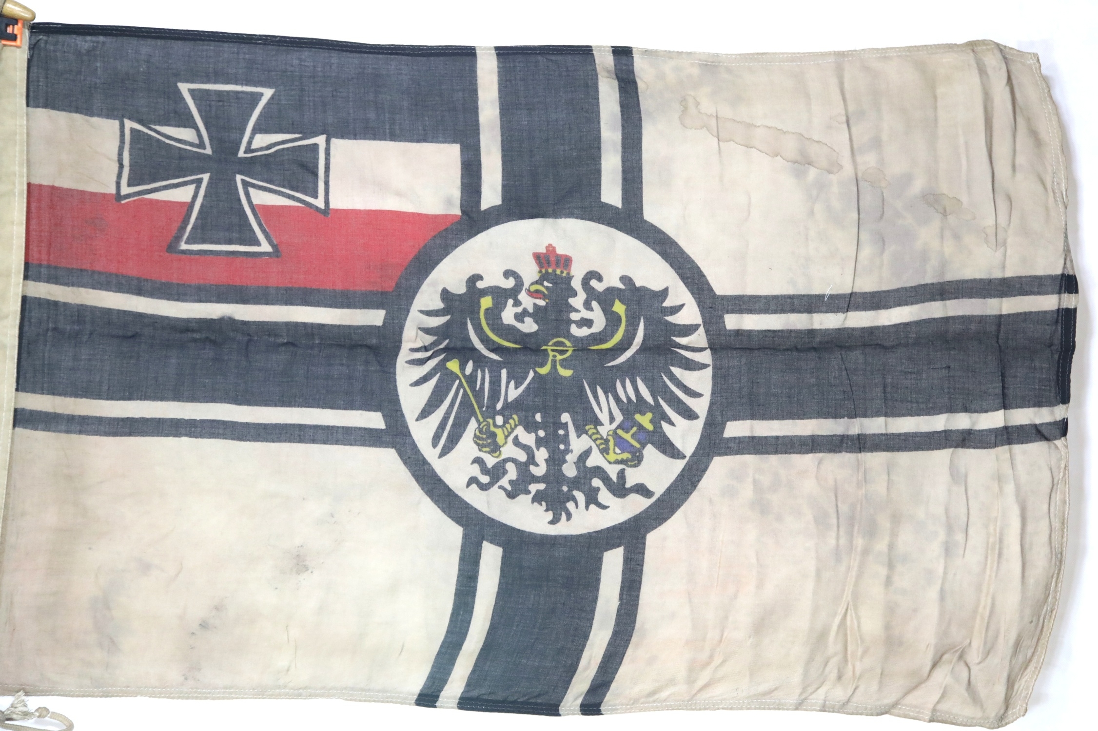 German WWI style Imperial war flag bearing stamps, 90 x 58 cm. P&P Group 1 (£14+VAT for the first lot and £1+VAT for subsequent lots)