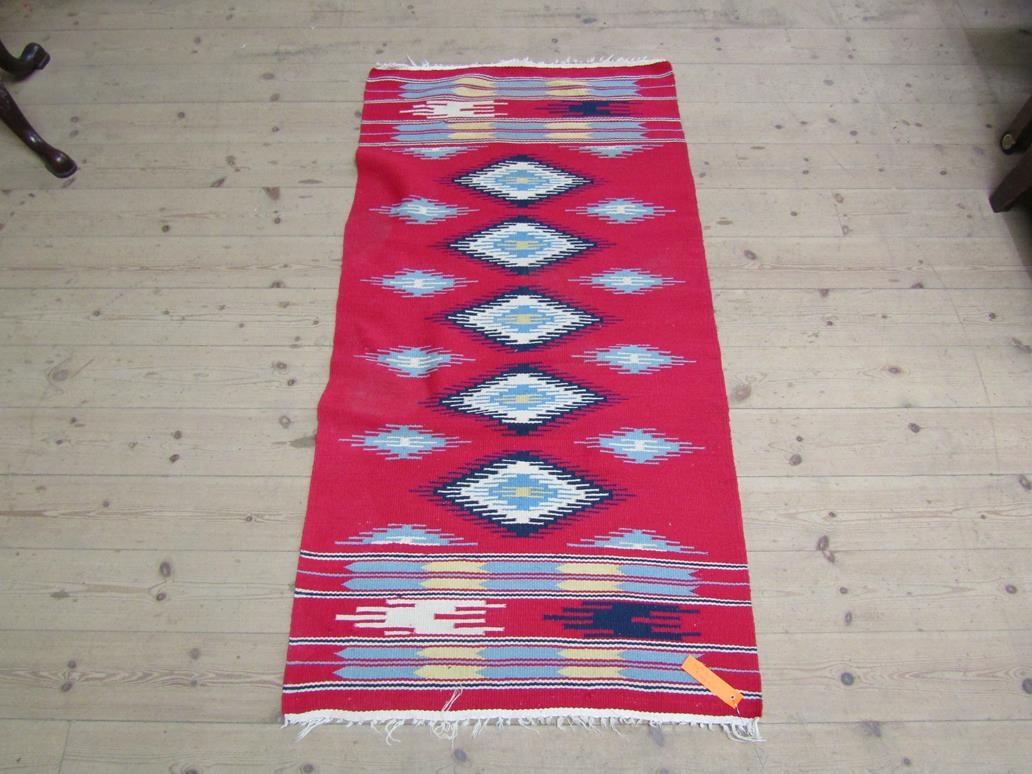 RED AND BLUE ORIENTAL RUG - 149CM X 76CM