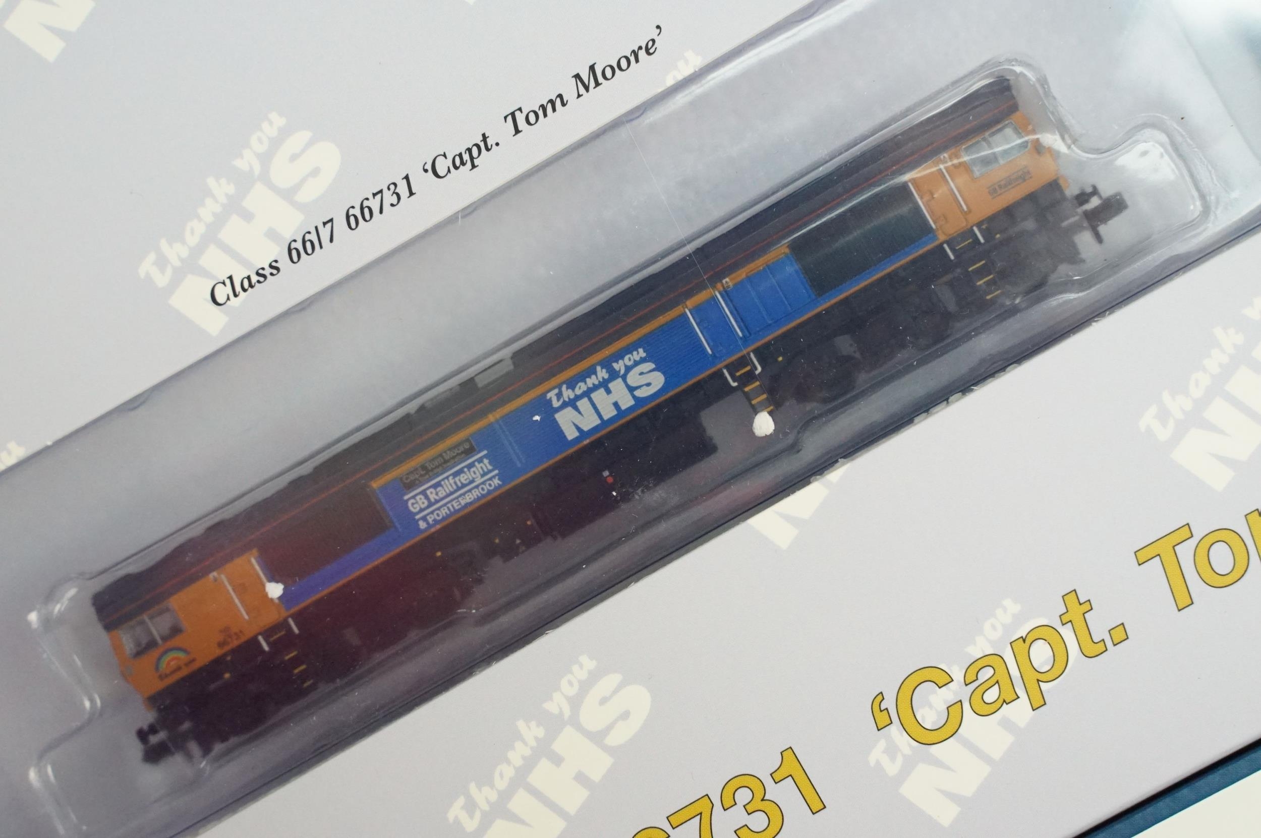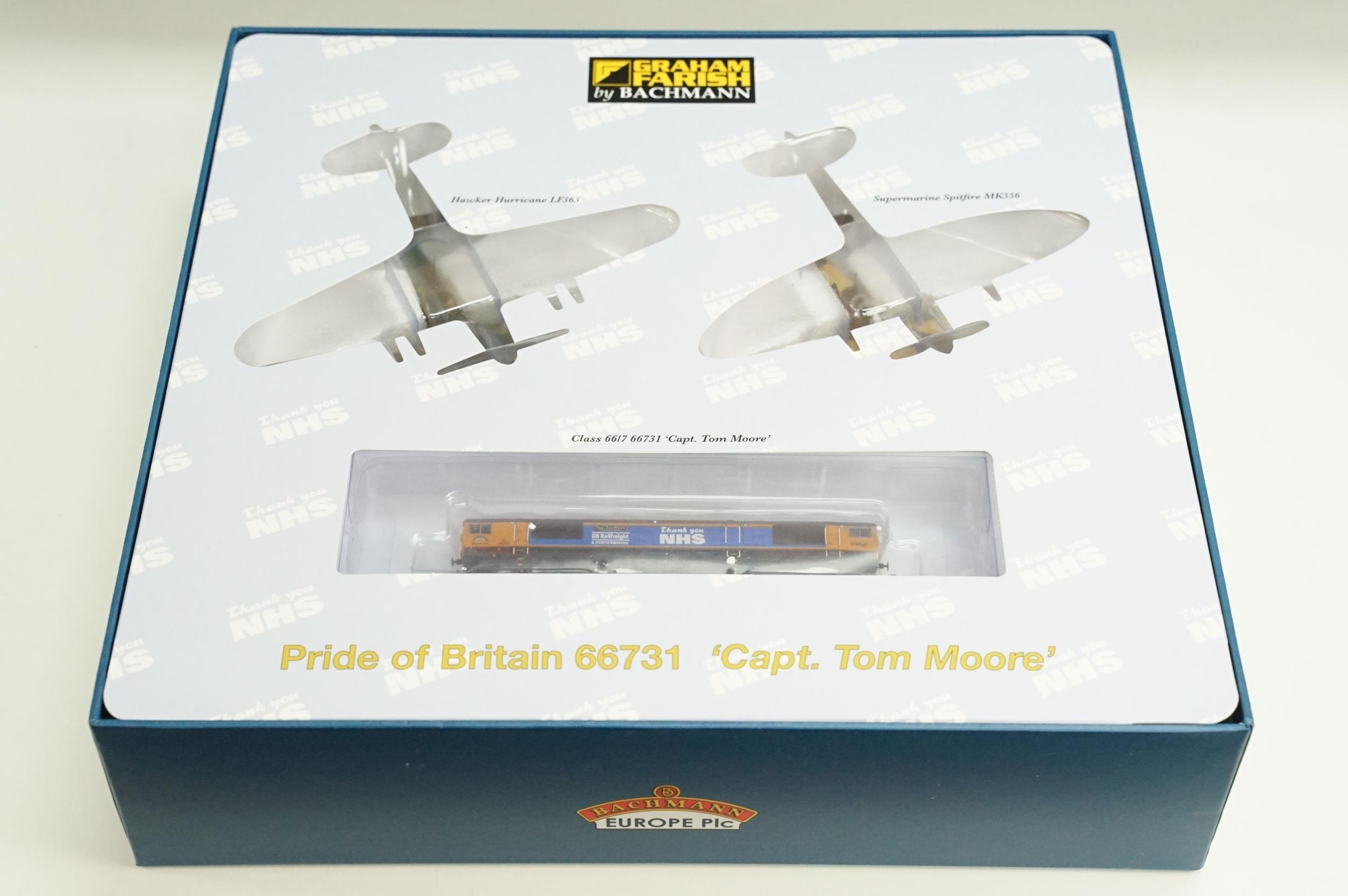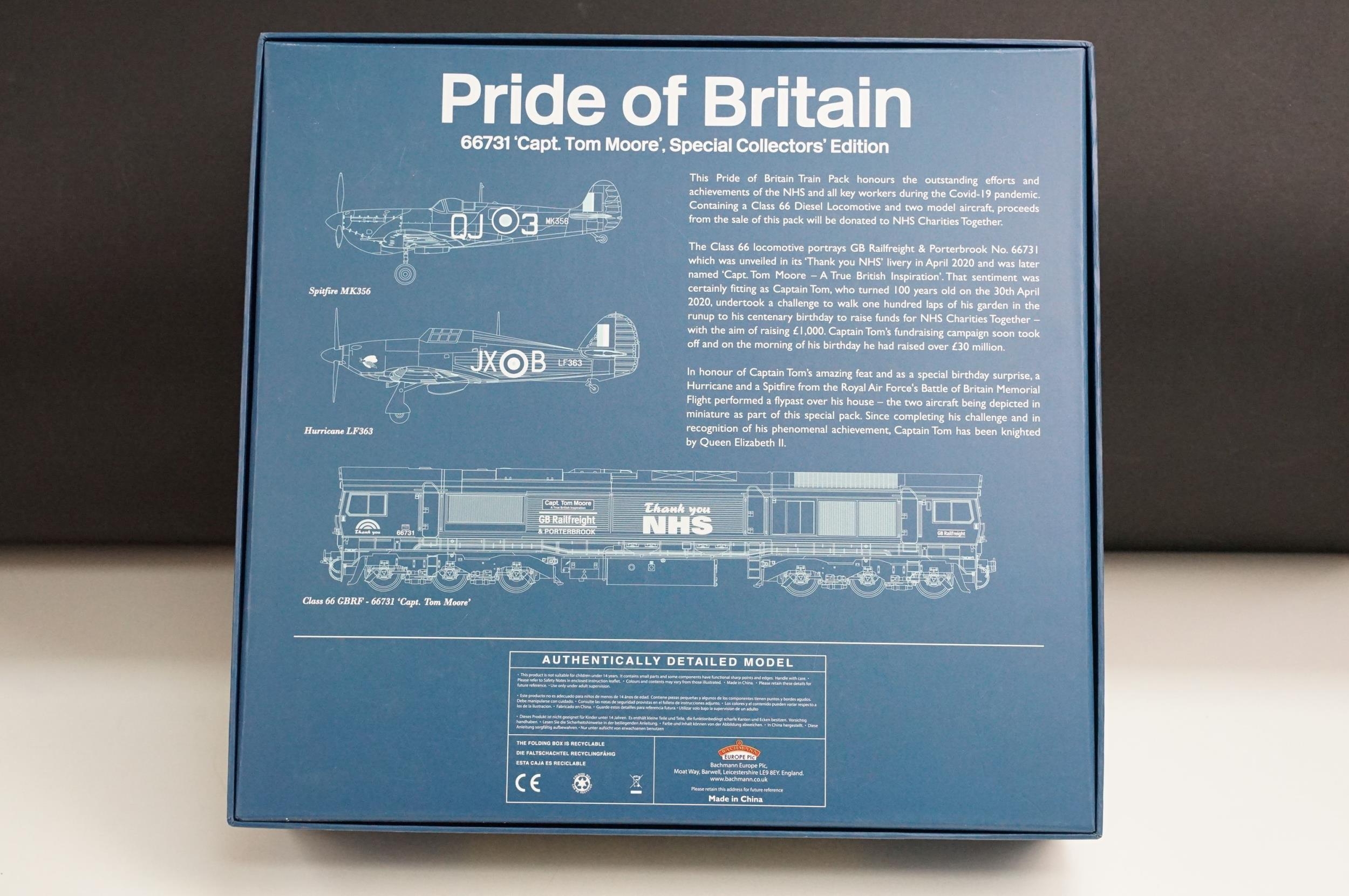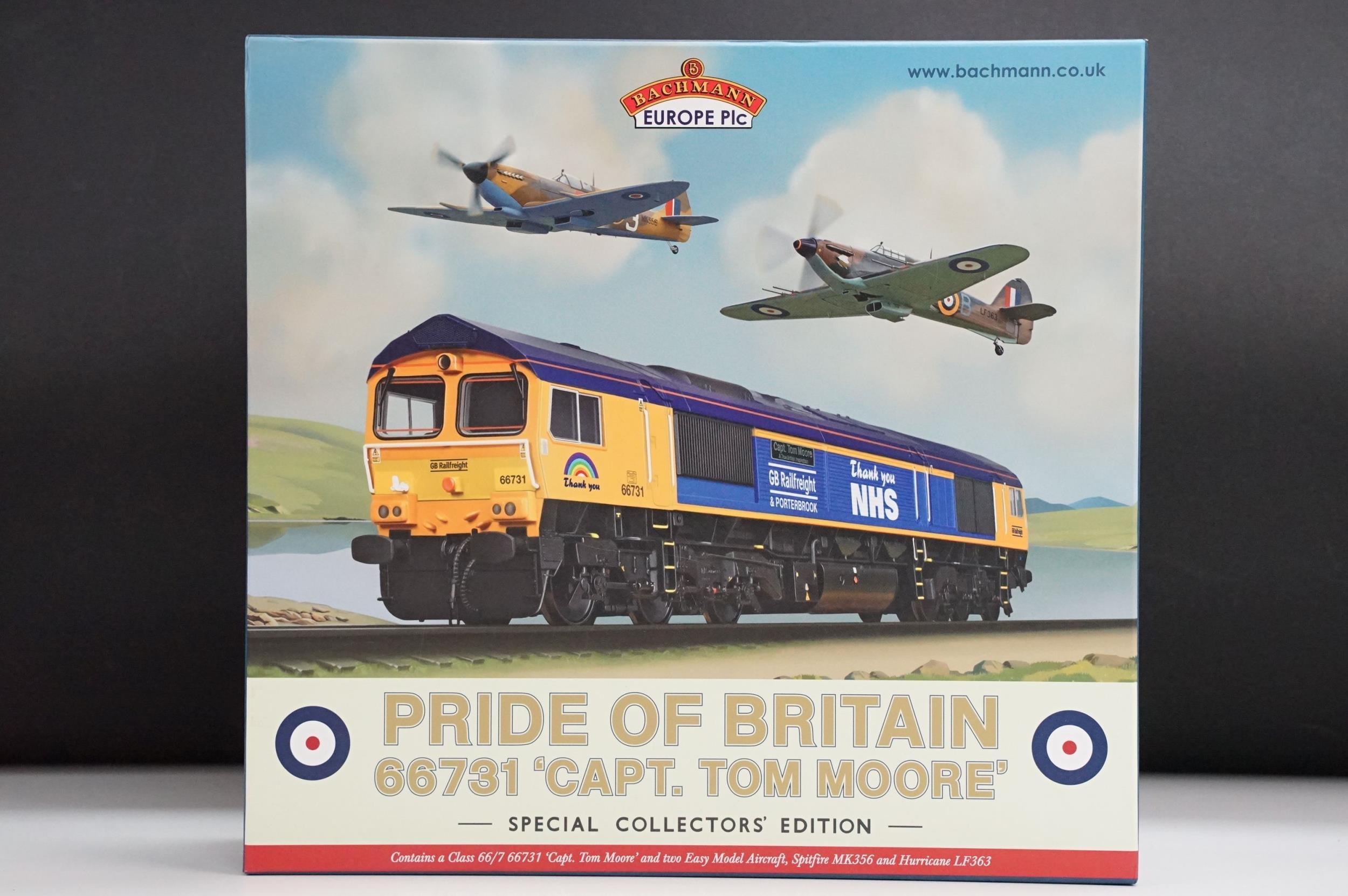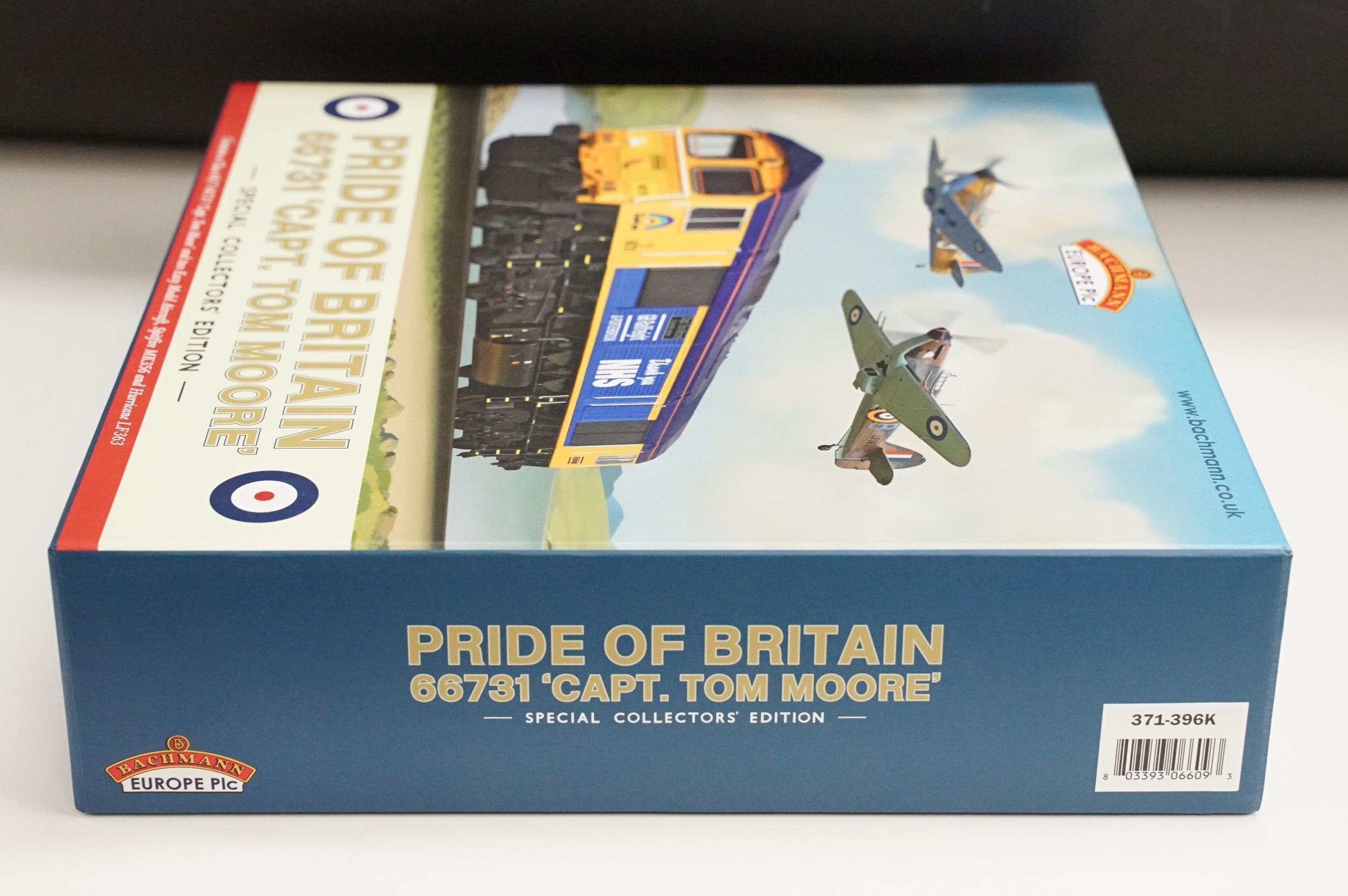 Boxed Bachmann OO gauge 371-396K Pride of Britain 66731 Capt Tom Moore Special Collectors Edition train set, complete