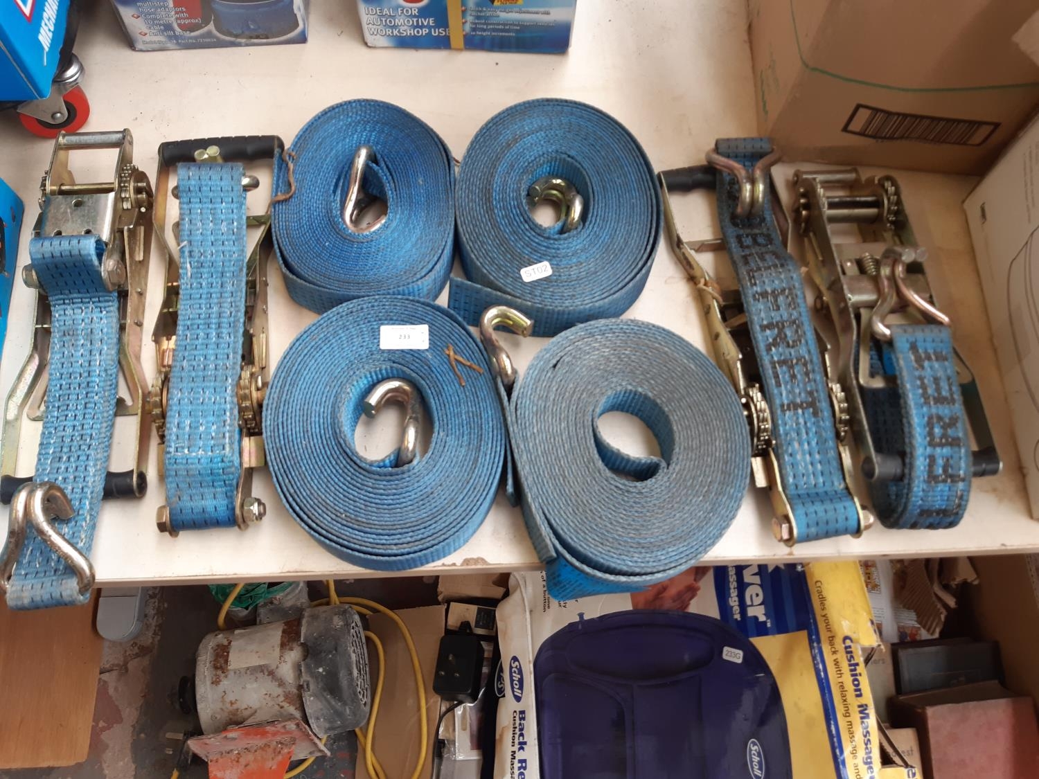 FOUR HEAVY DUTY BLUE RATCHET STRAPS