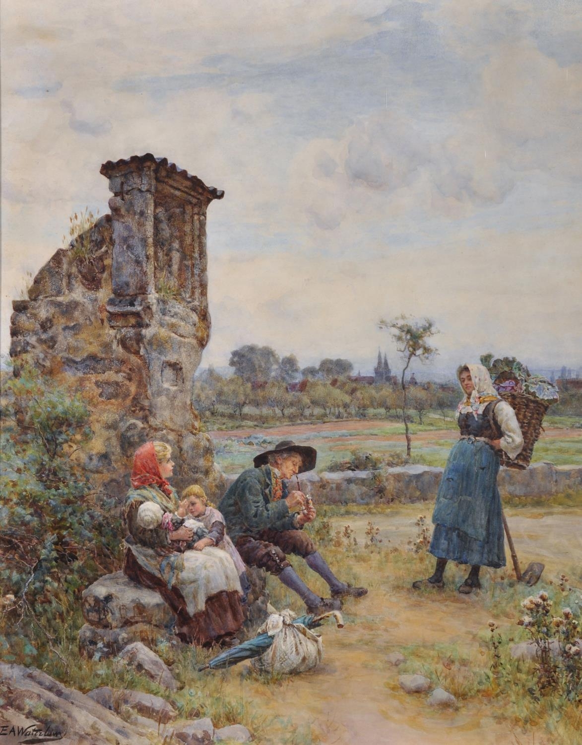 Ernest Albert Waterlow (1850-1919) British. “Wayside Shrine, Bavaria” Watercolour, Signed, 27.5” x 21.75” (70 x 55cm)