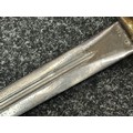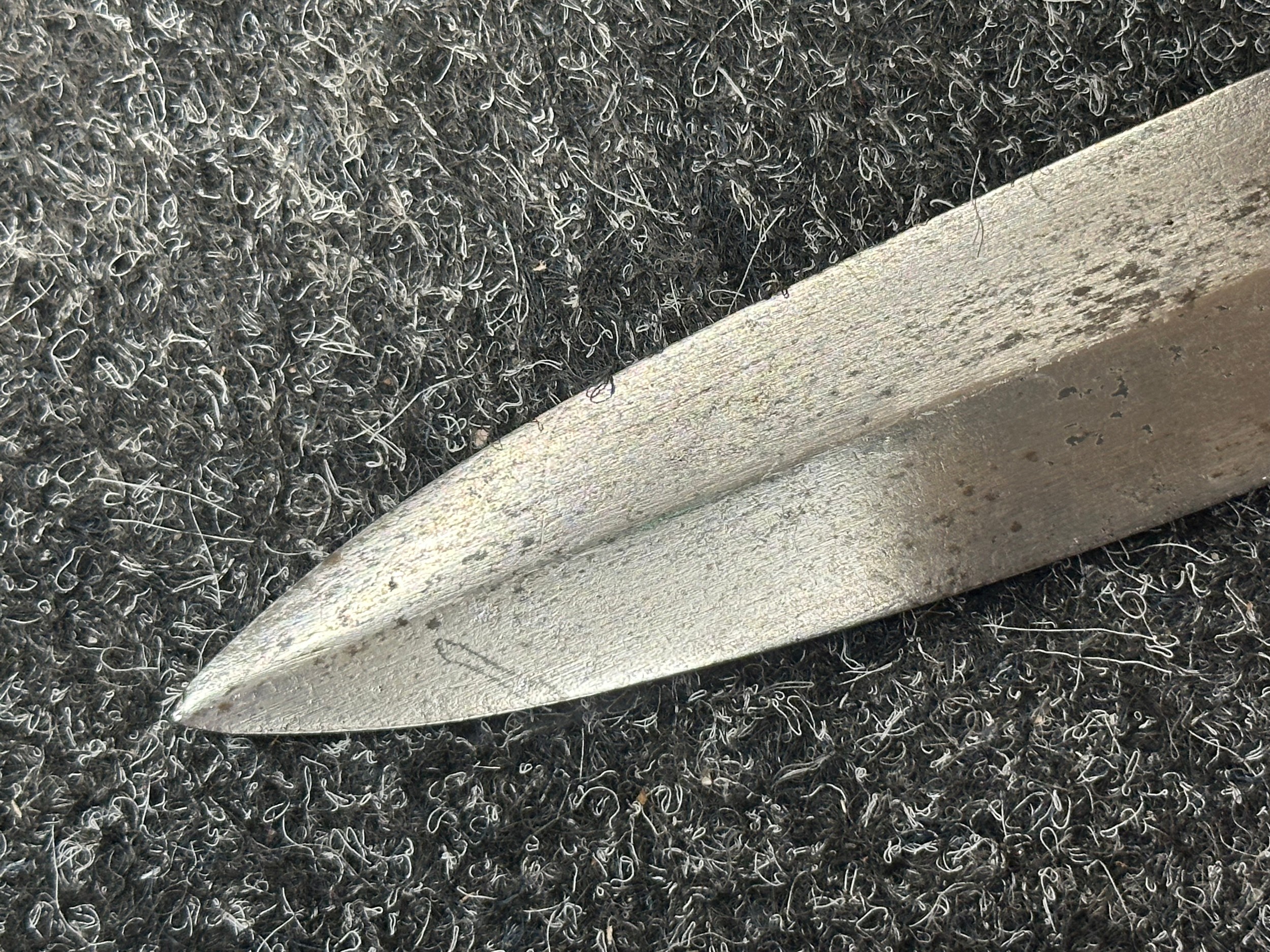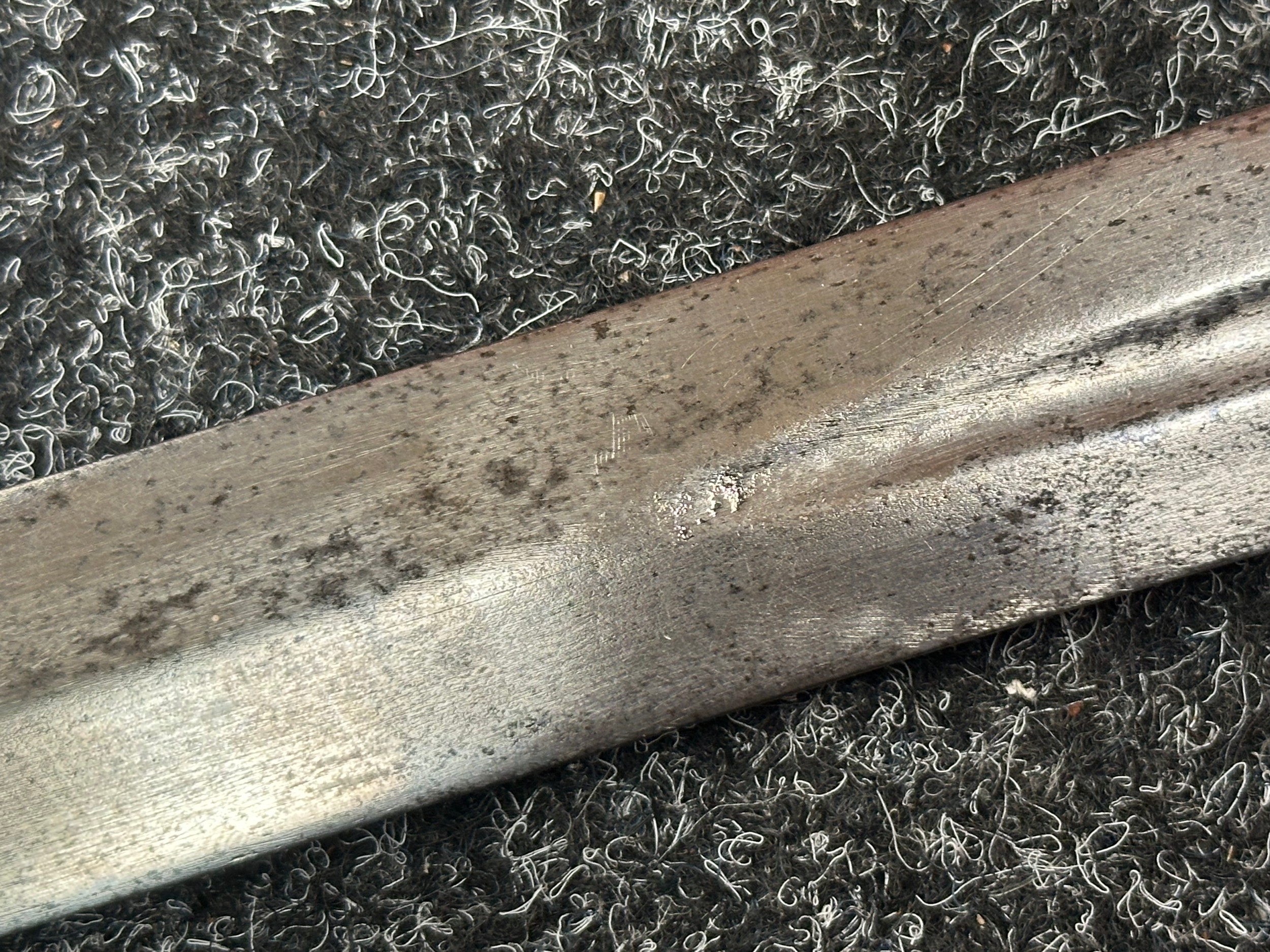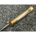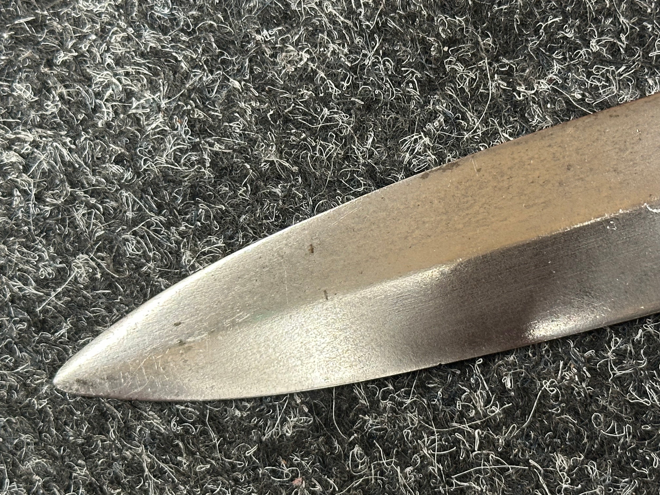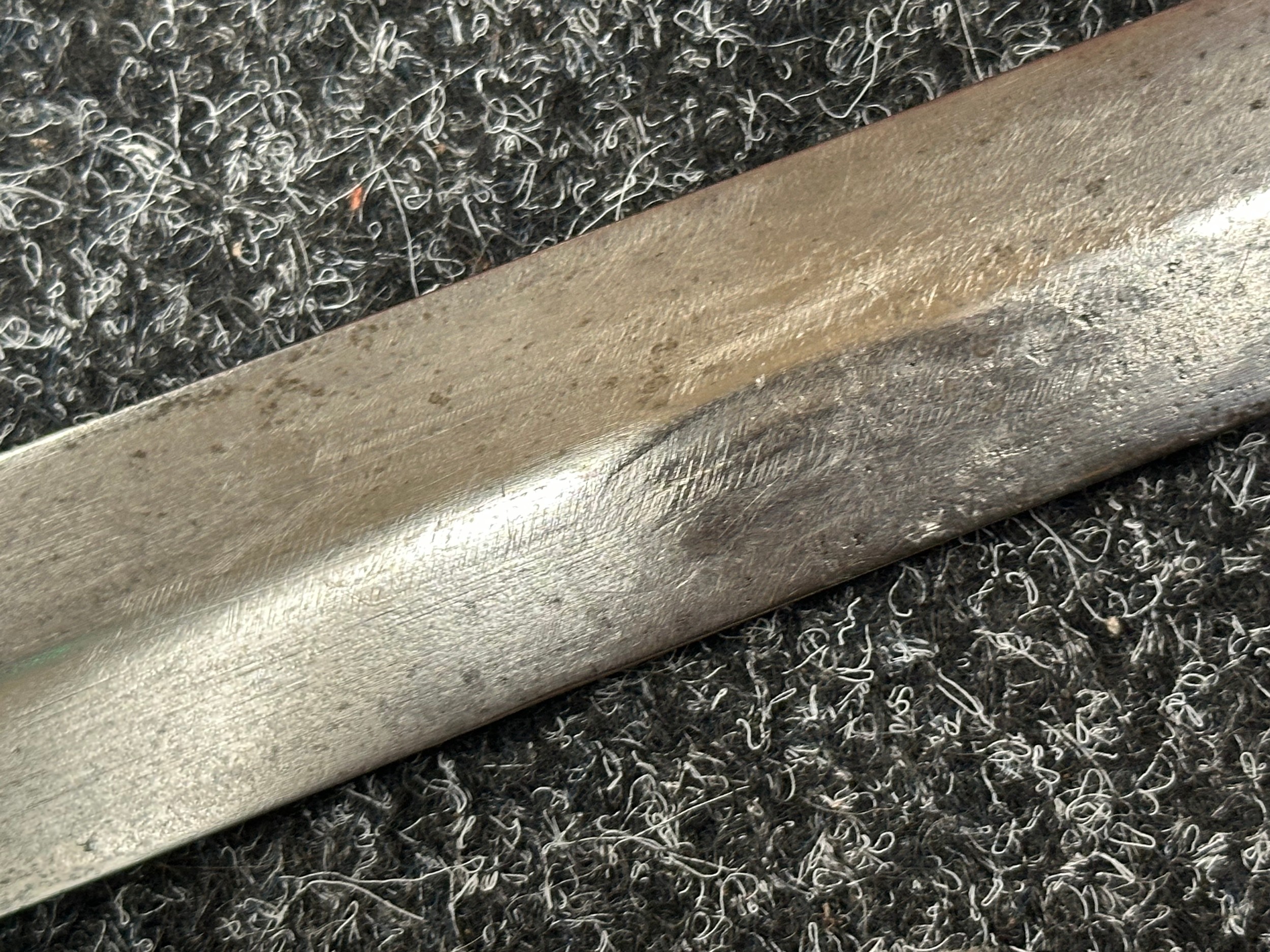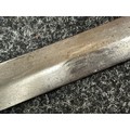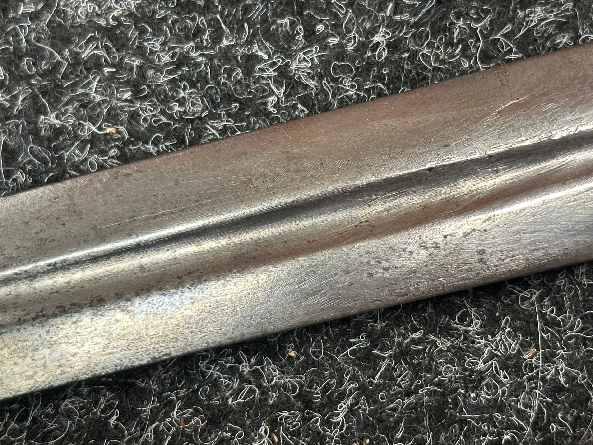 Brunswick Rifle Bayonet, 1st Pattern, with double edged fullered blade 550mm in length, maker marked and dated "VR Crown Enfield 1858". Also marked "2" to blade. Leather washer to blade. Cast brass fluted grip. Crossguard numbered "773". Both crossguard, grip and pommel marked "2". Pommel has double Broad Arrow sold out of service mark. Working release catch. Overall length 670mm. No scabbard.