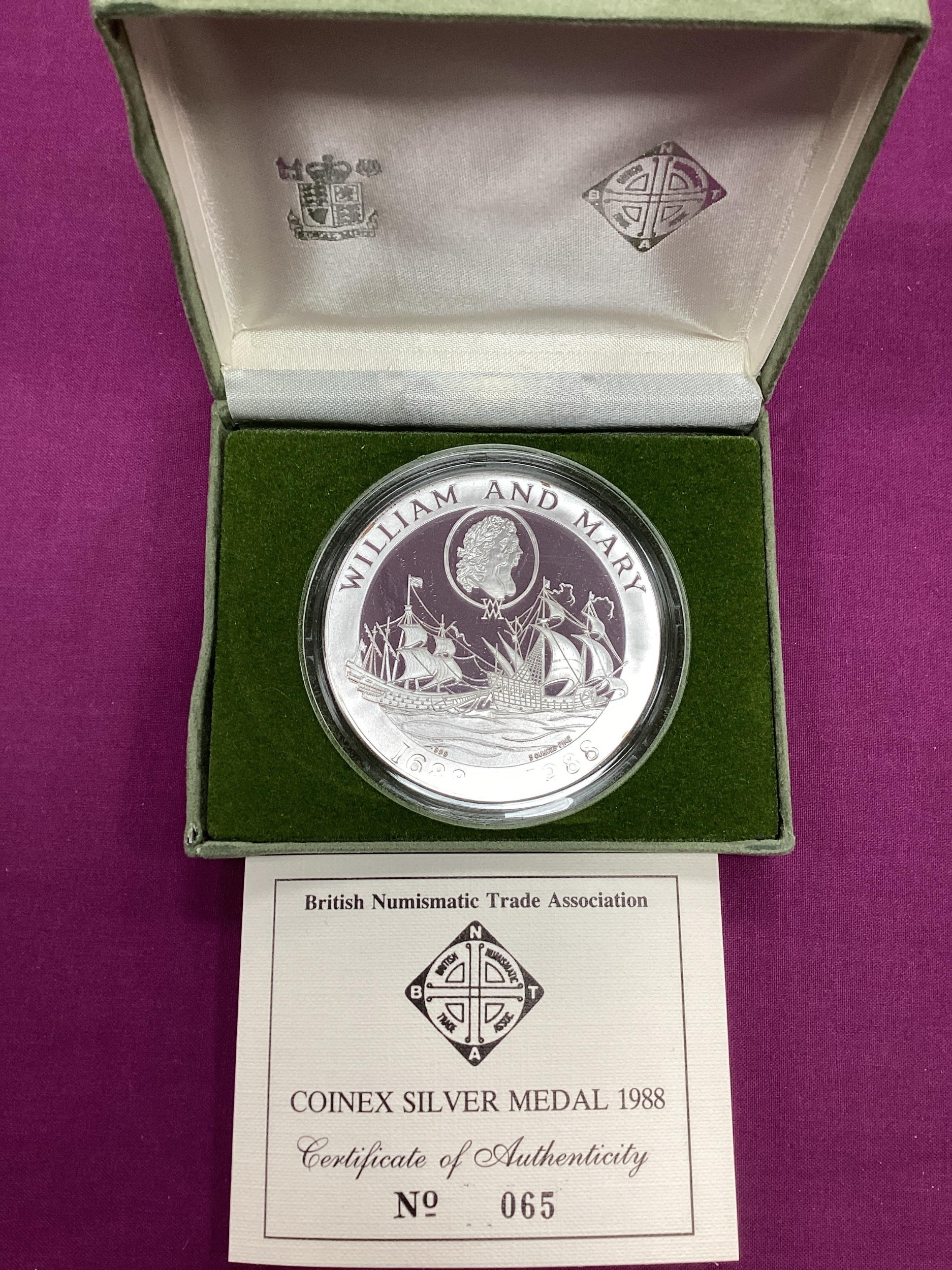 1988 Royal Mint Five Ounce Fine Silver Proof Medal, to commemorate The Tenth International Coinex in London, cased with a certificate of authenticity.
