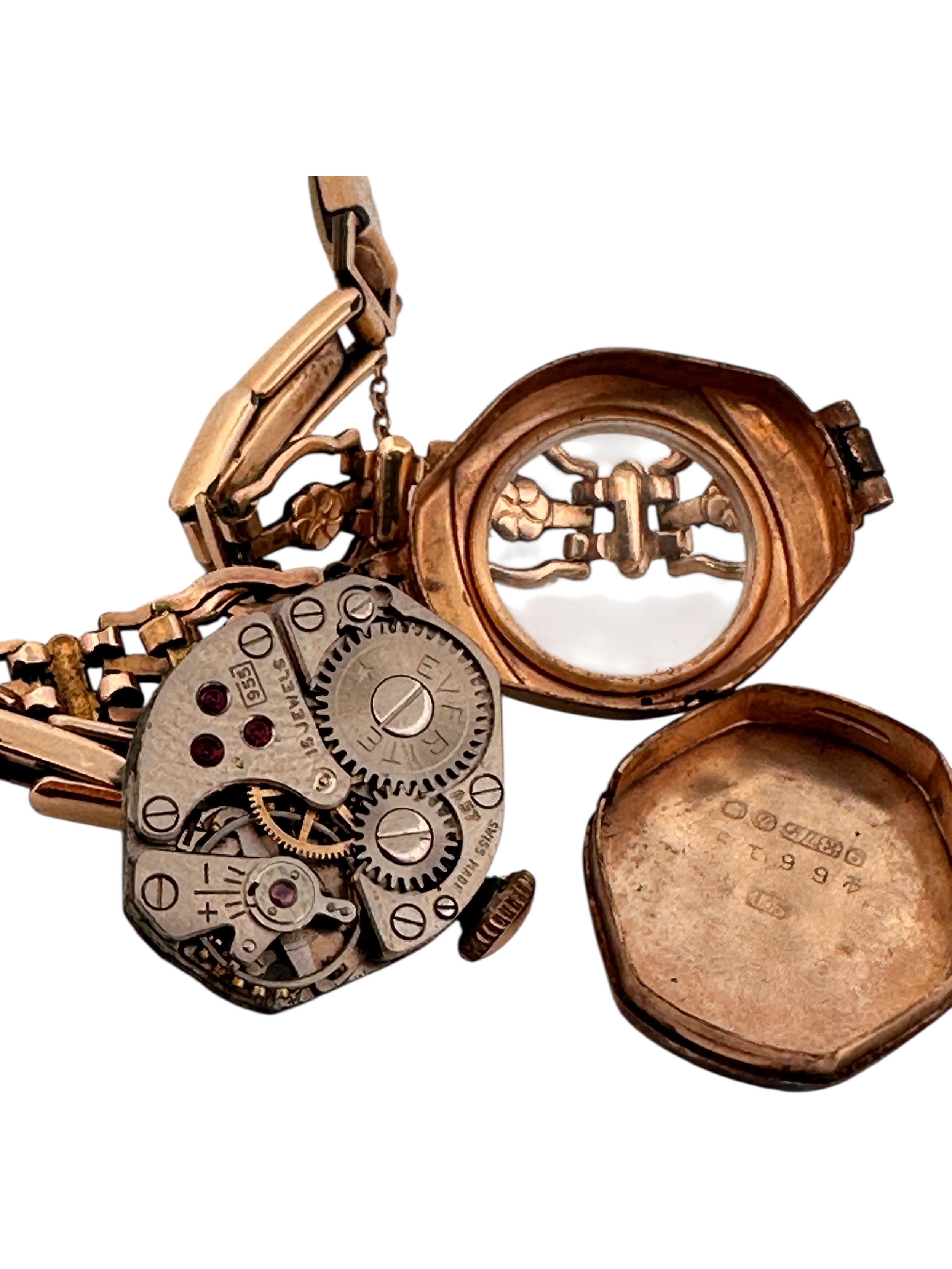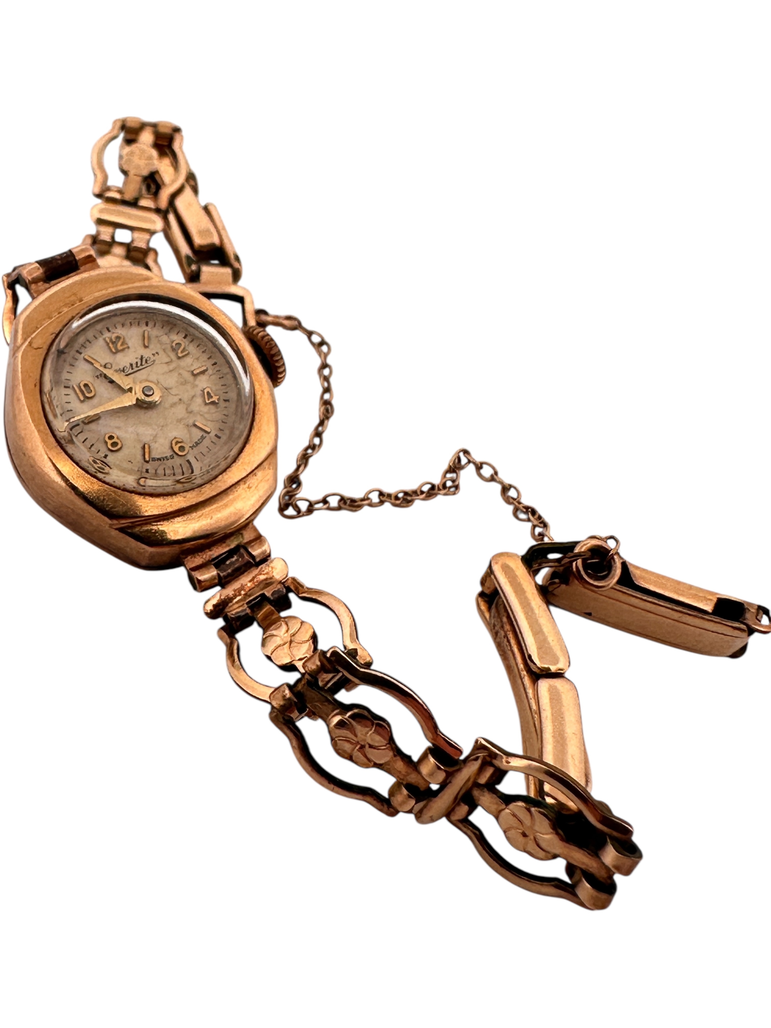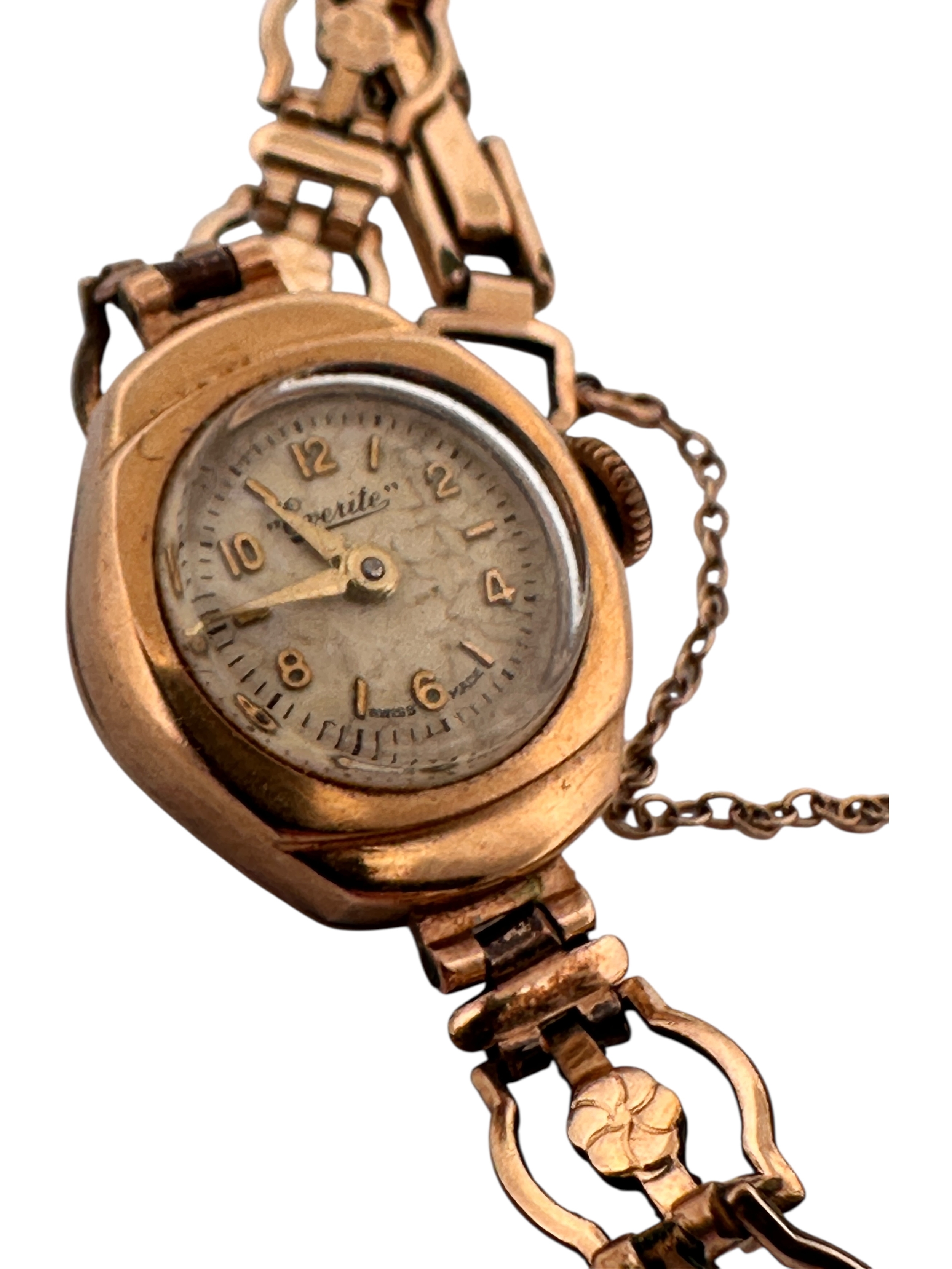 Ladies Nine Carat Cold Cased Everite Cocktail Watch with Rolled Gold Strap. Working Order