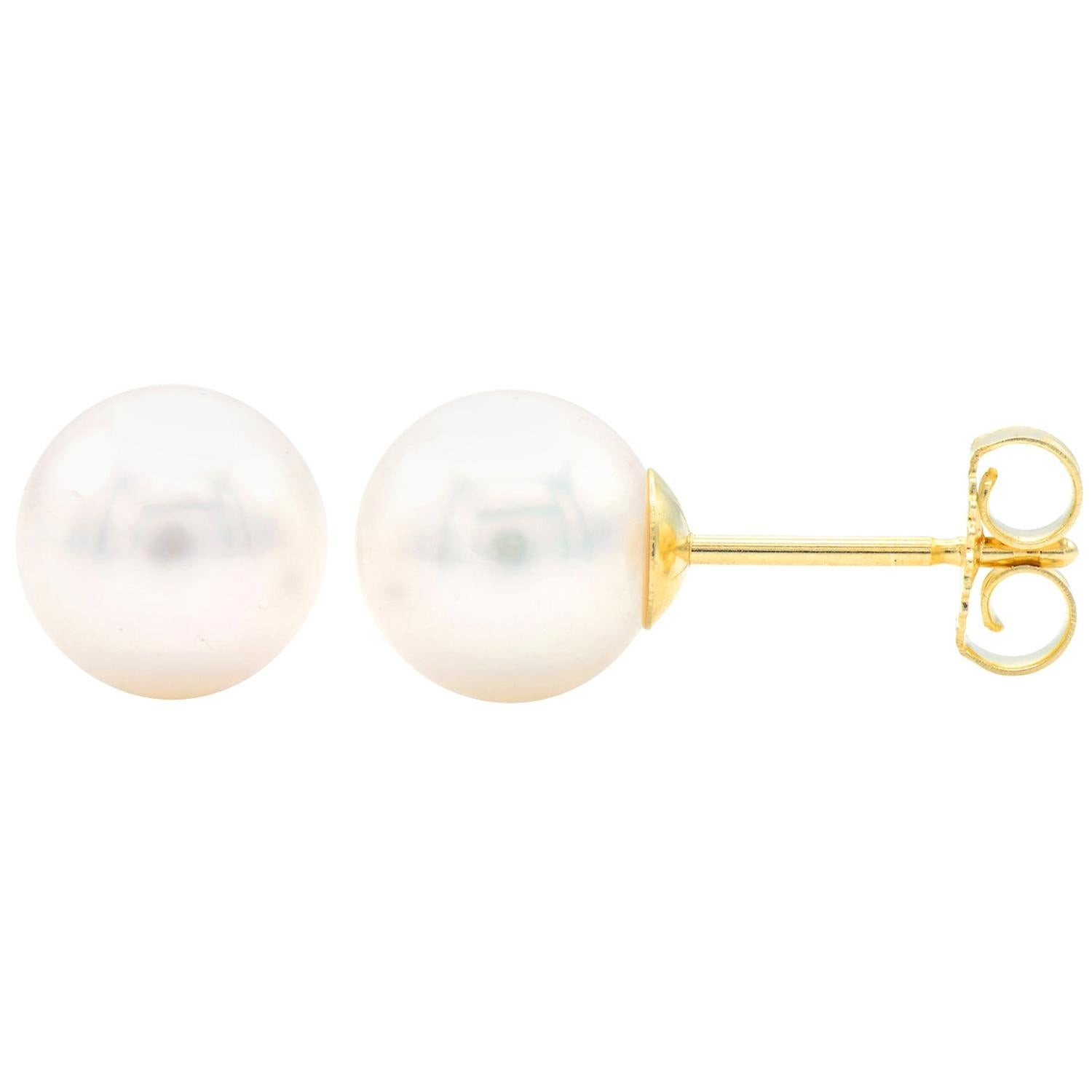 A PAIR OF JAPANESE AKOYA CULTURED PEARL STUD EARRINGS