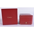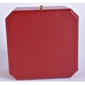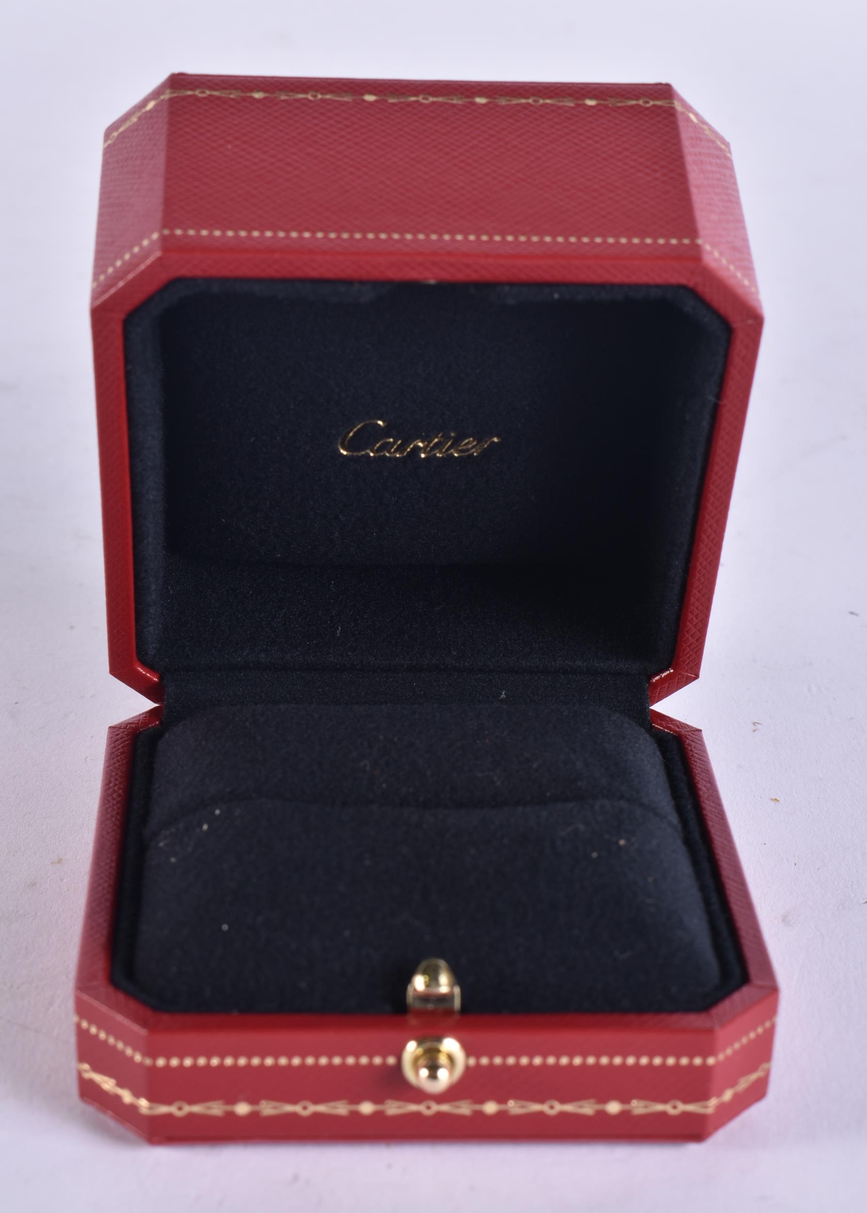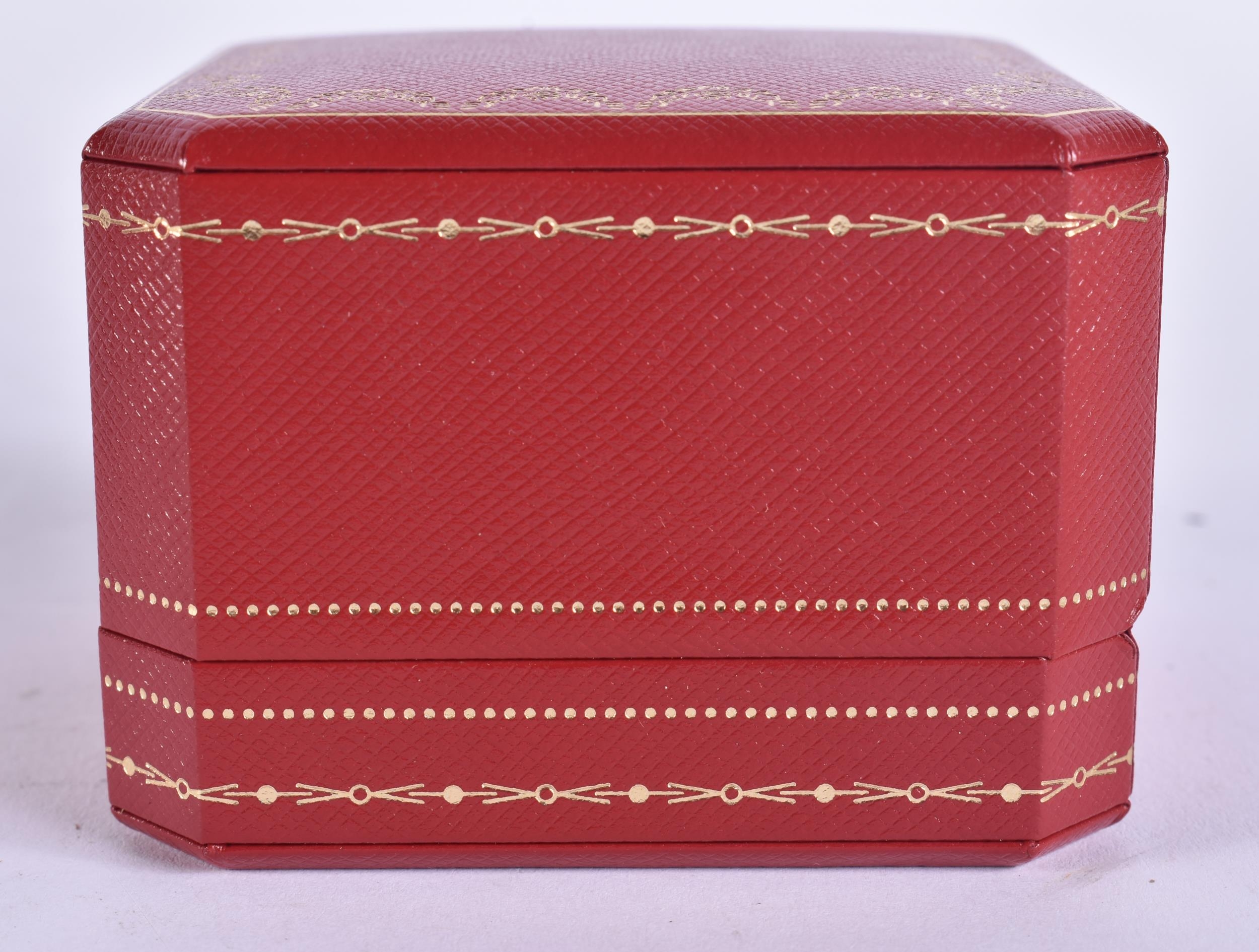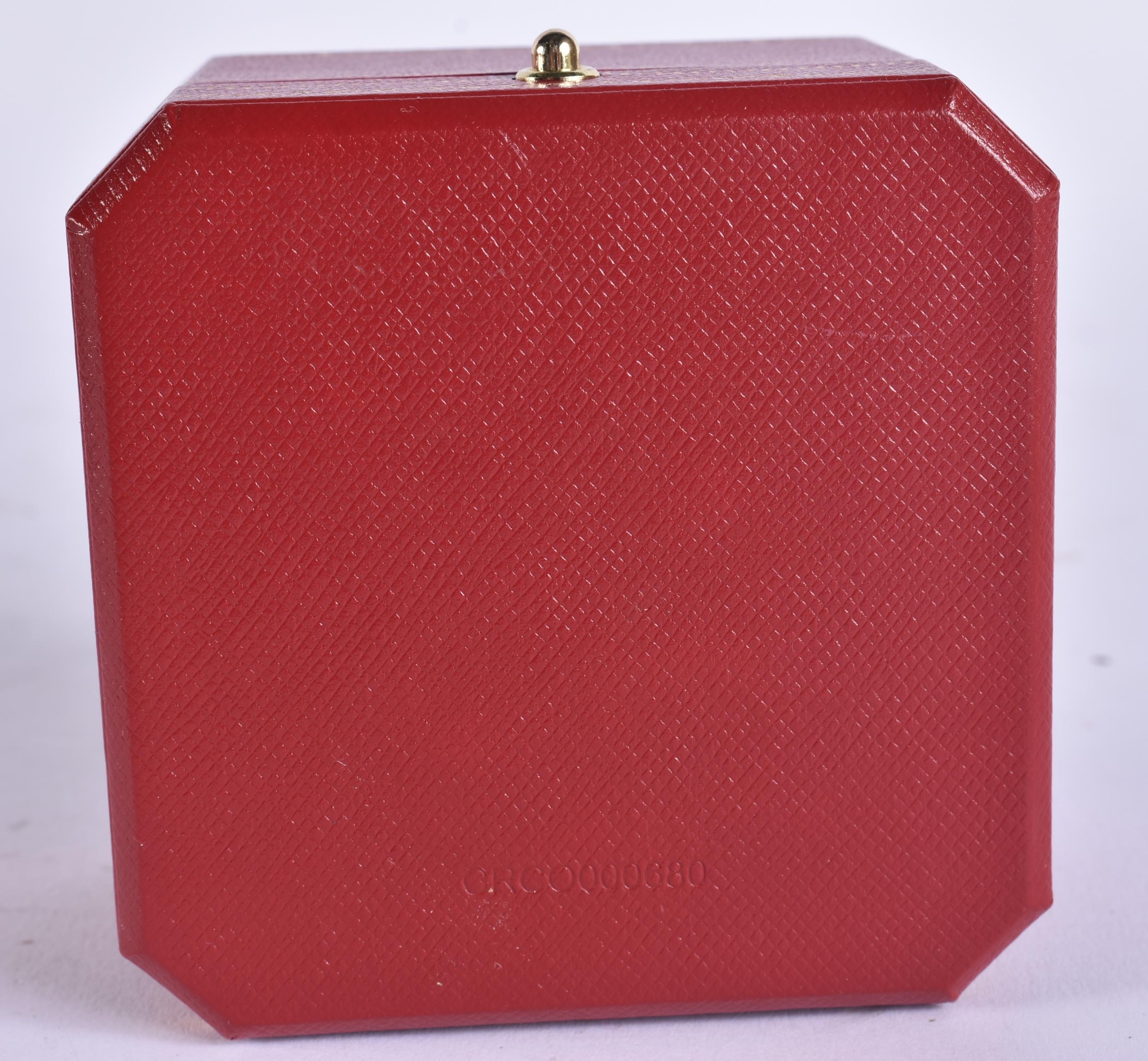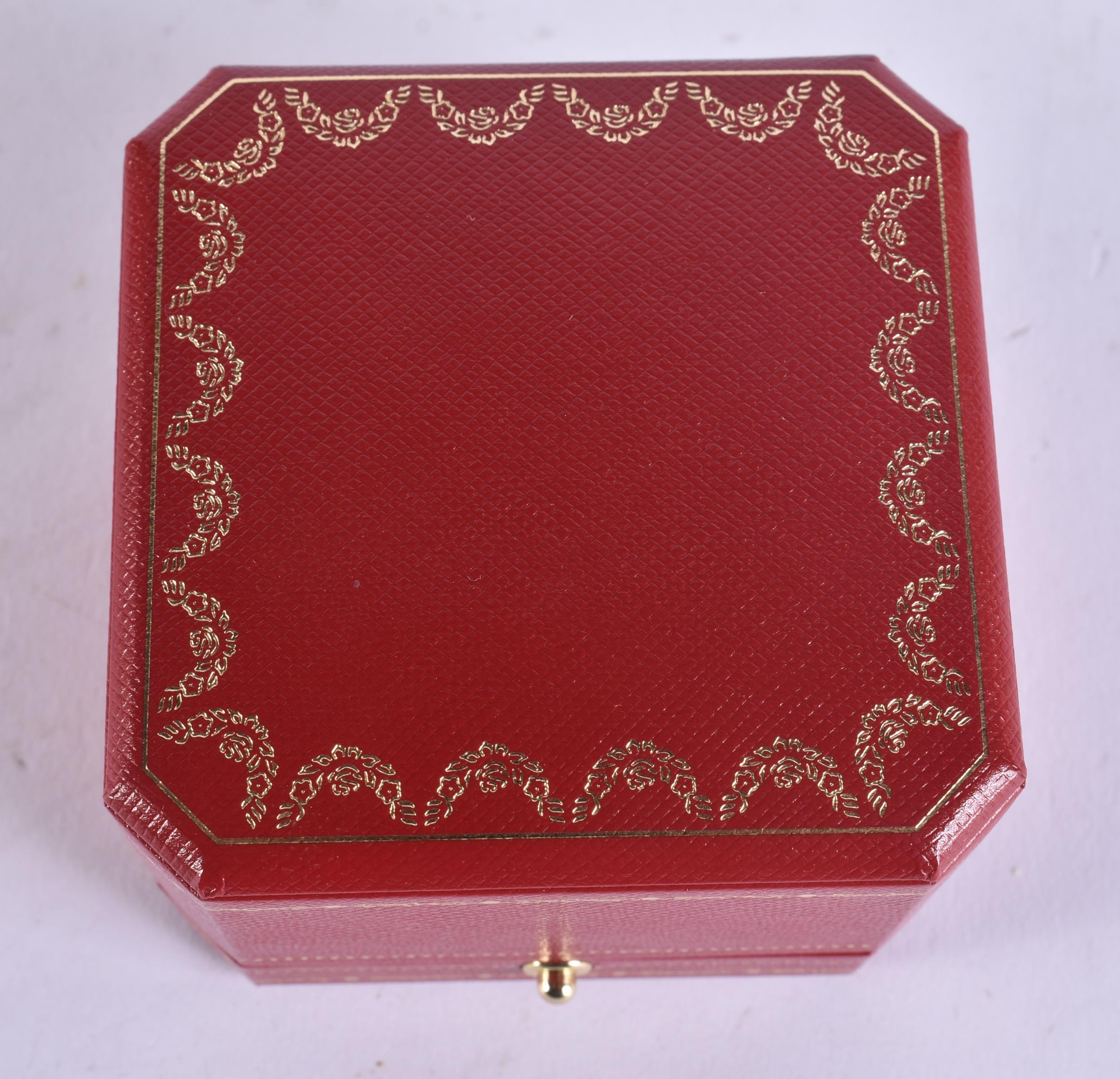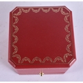 A VACANT CARTIER LEATHER JEWELLERY BOX. 9 cm x 9.5 cm.