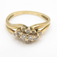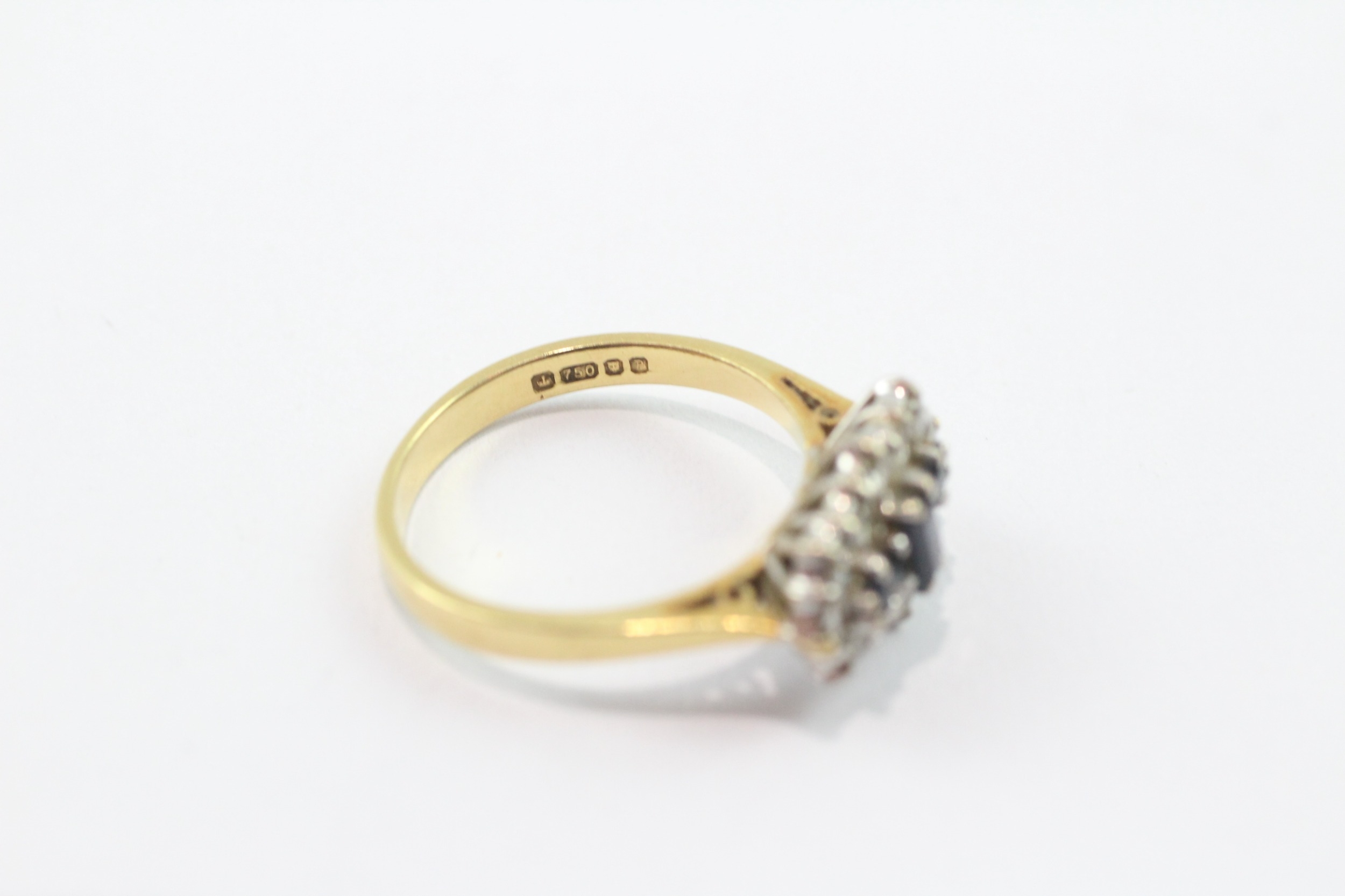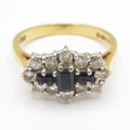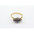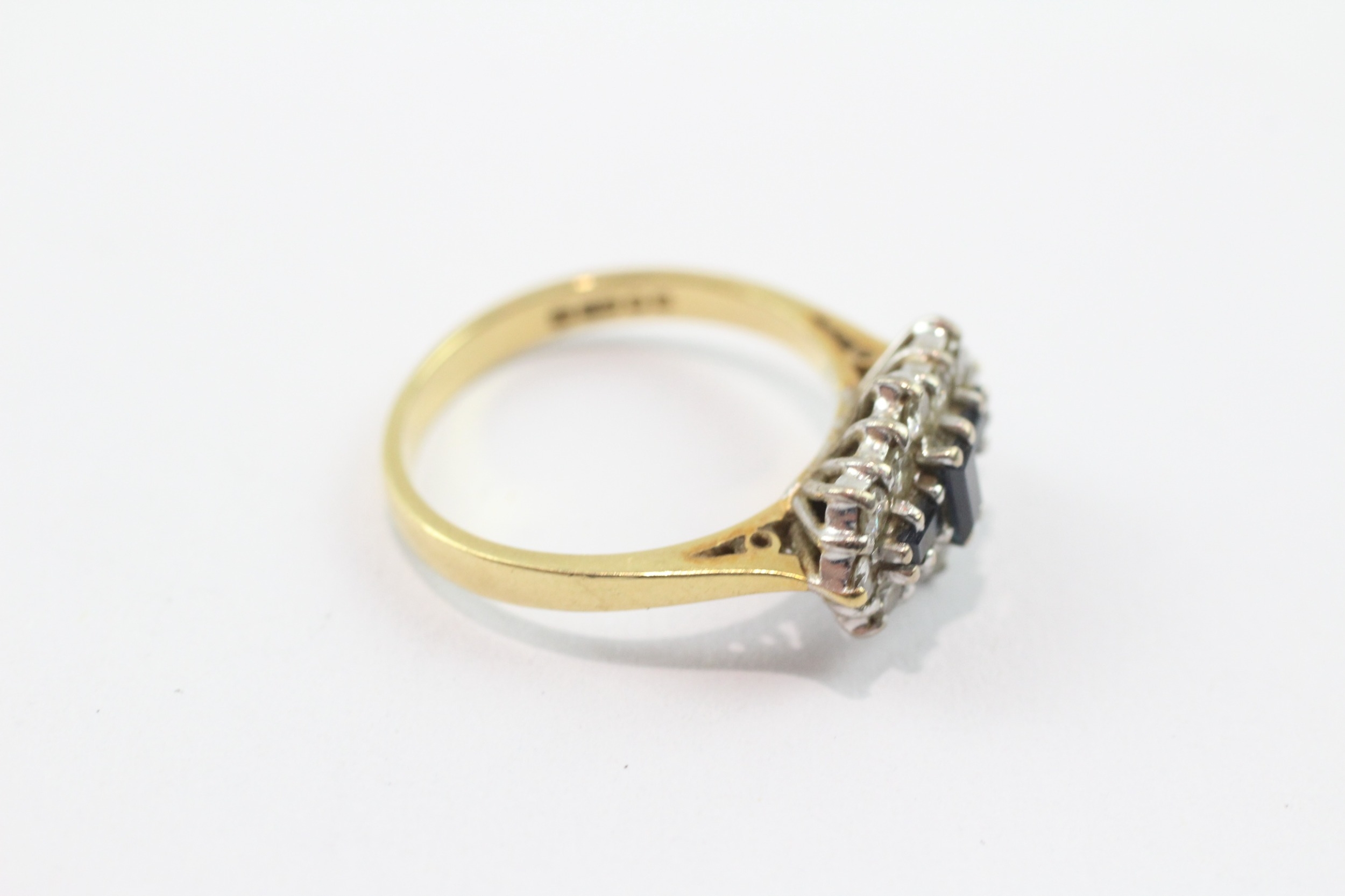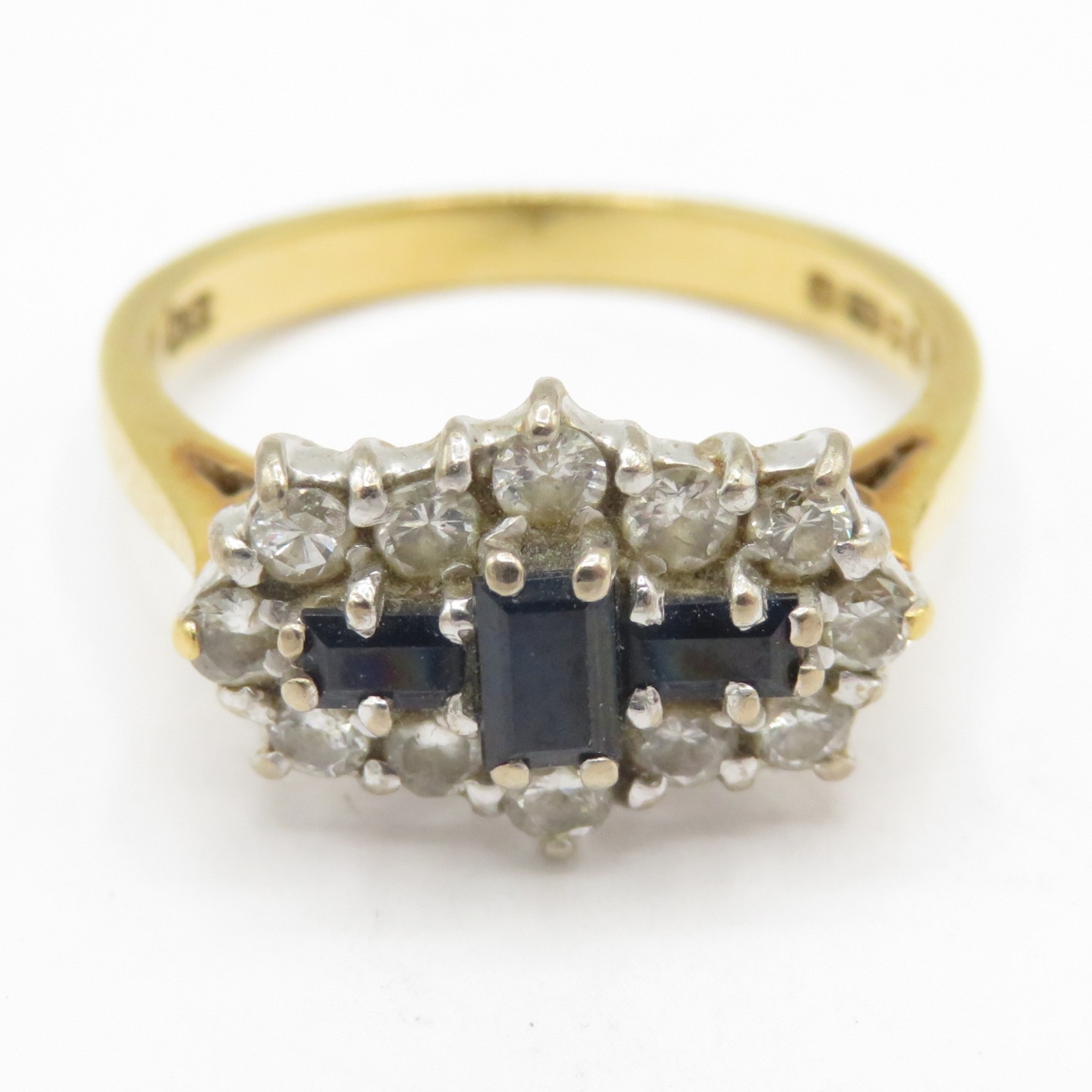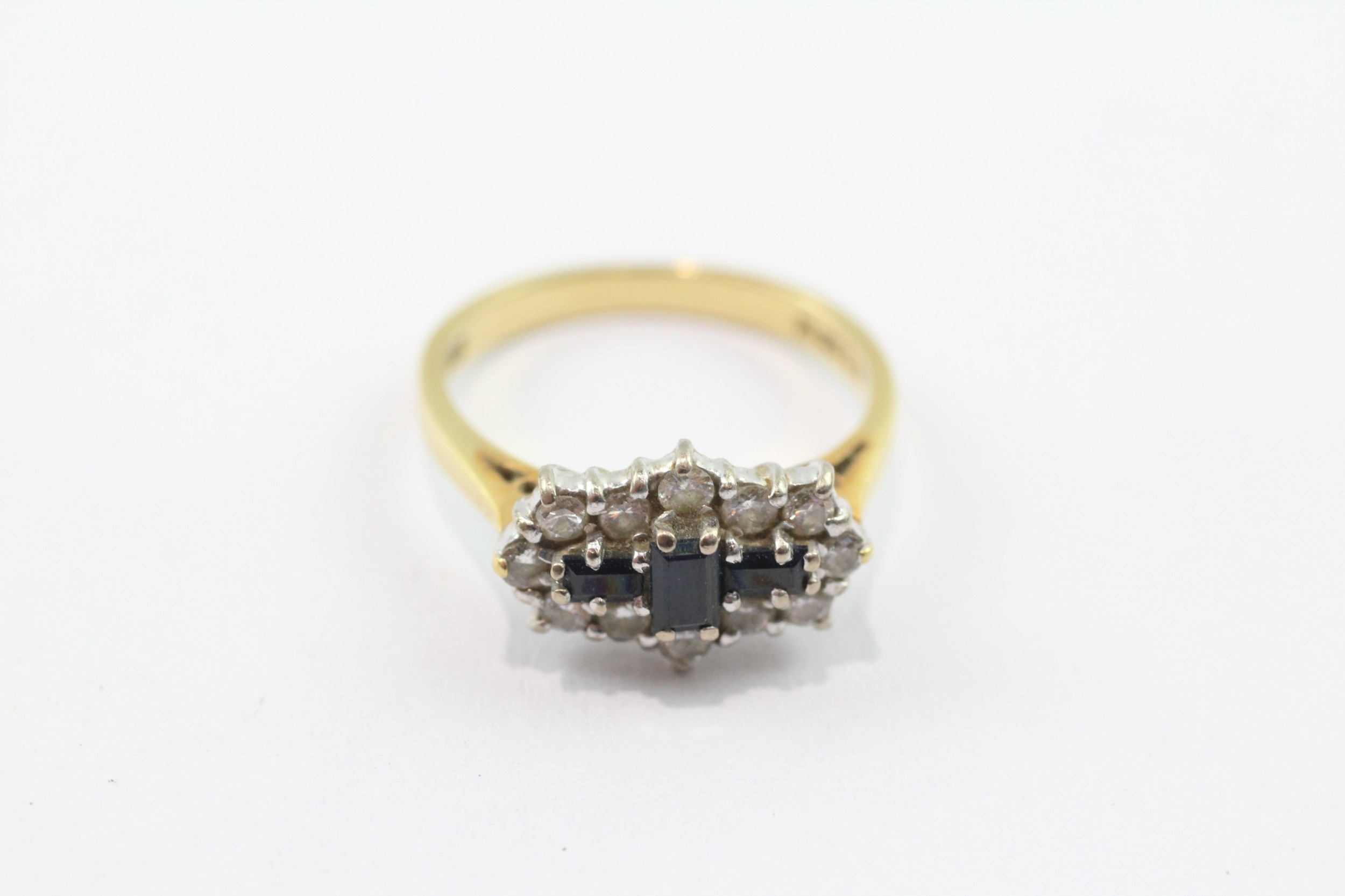 18ct gold three stone sapphire ring with diamonds (3.8g) Size M
