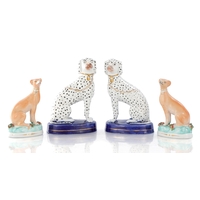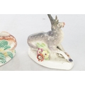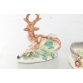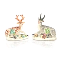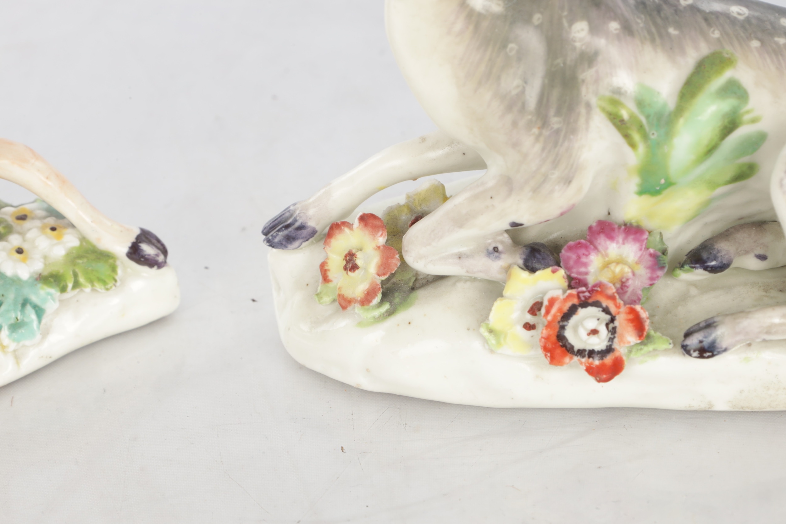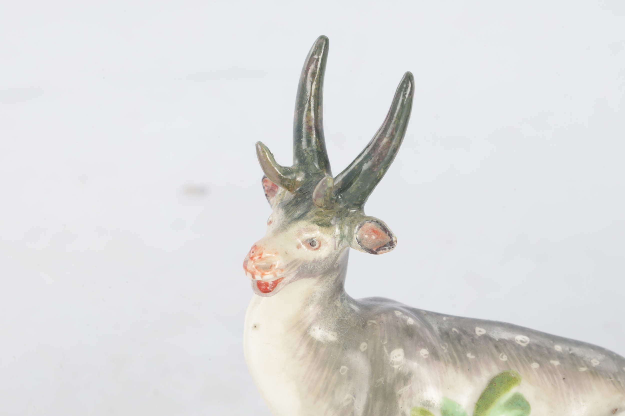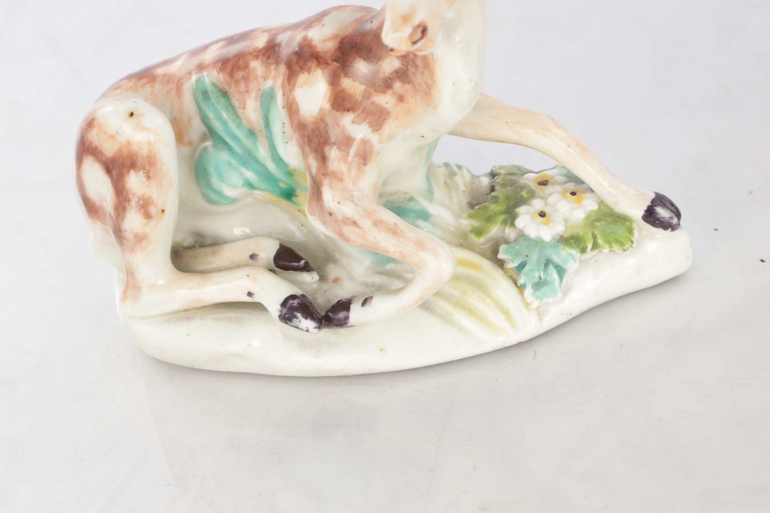 TWO 18TH CENTURY DERBY STAG FIGURES decorated in polychrome colours (10cm high )