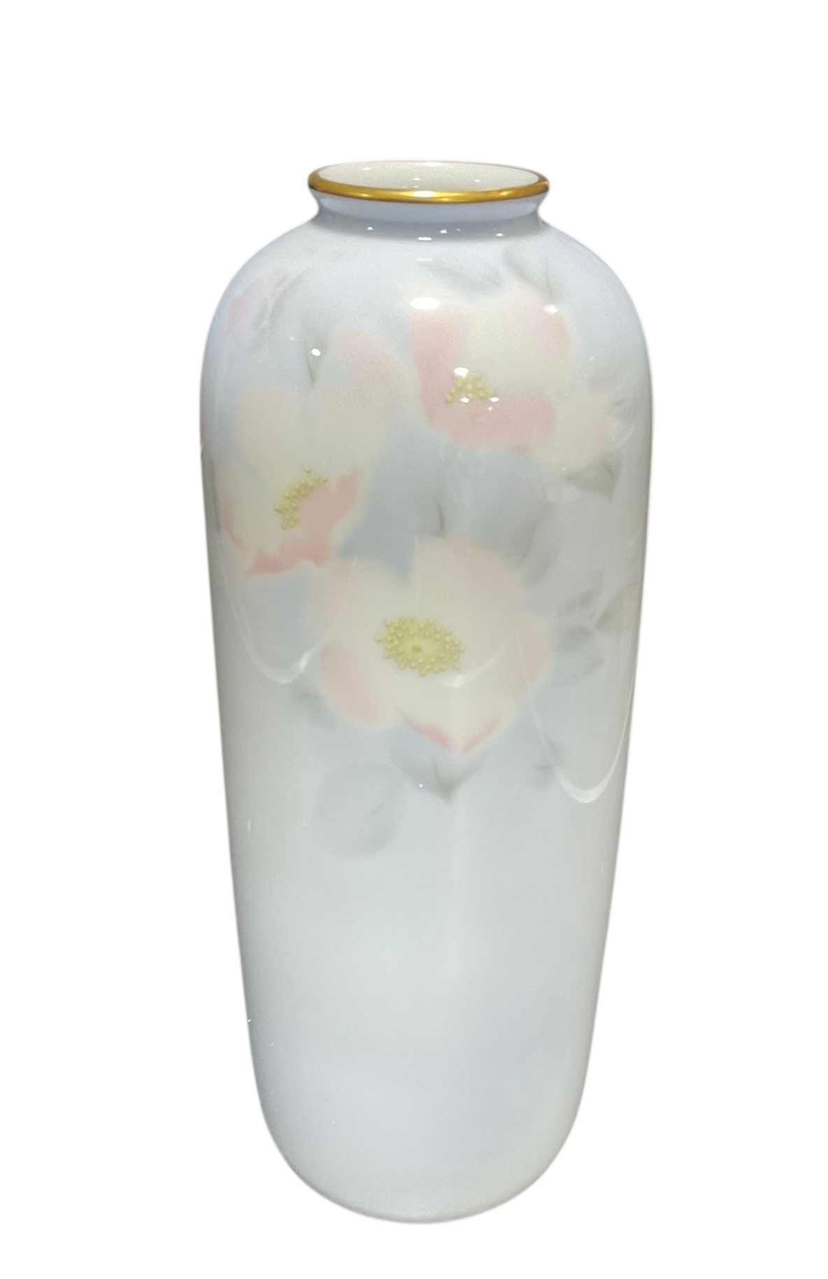 Japanese Fukagawa porcelain vase featuring a hand-painted floral design with a Gilt Rim. 28cm