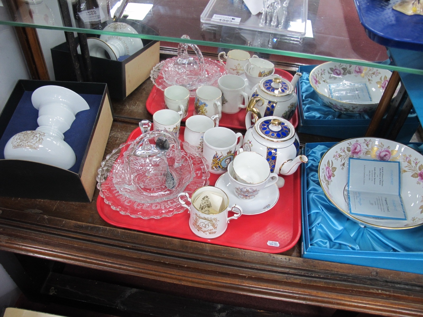 Coalport Regency Bowl Limited Edtion 168/500 Boxed, H.R.H Prince Charles and Lady Diana Spencer 29th July 1981, together wtih Kaiser - The Royal Sillouette vase limited edition 428/509 Queens Silver Jubilee, togehter with a tray of Royalty cup-saucers, Ringtons tea pot etc (3).